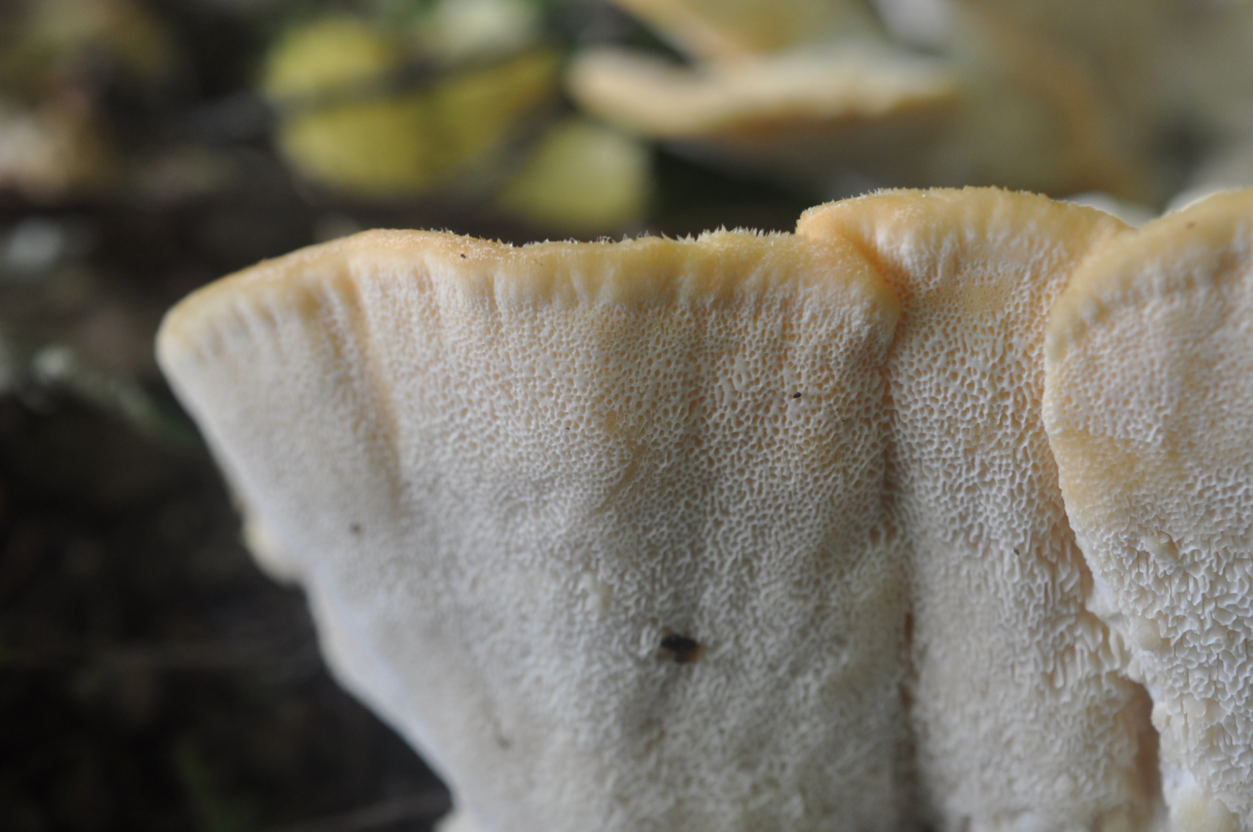 Ich hab mal selbst versucht ihn zu bestimmen und lande beim milchweißen Saftporling. Der Pilz ansich war auch sehr feucht, fast nass..