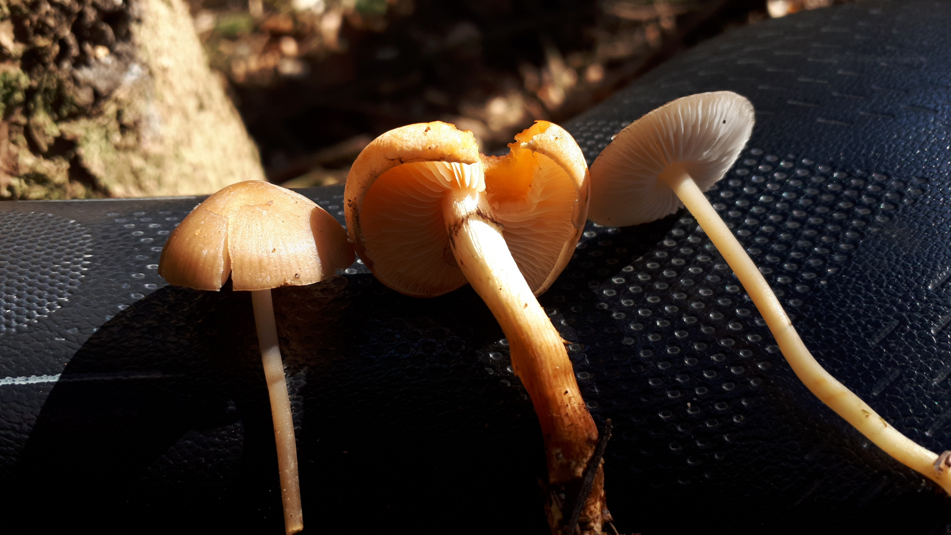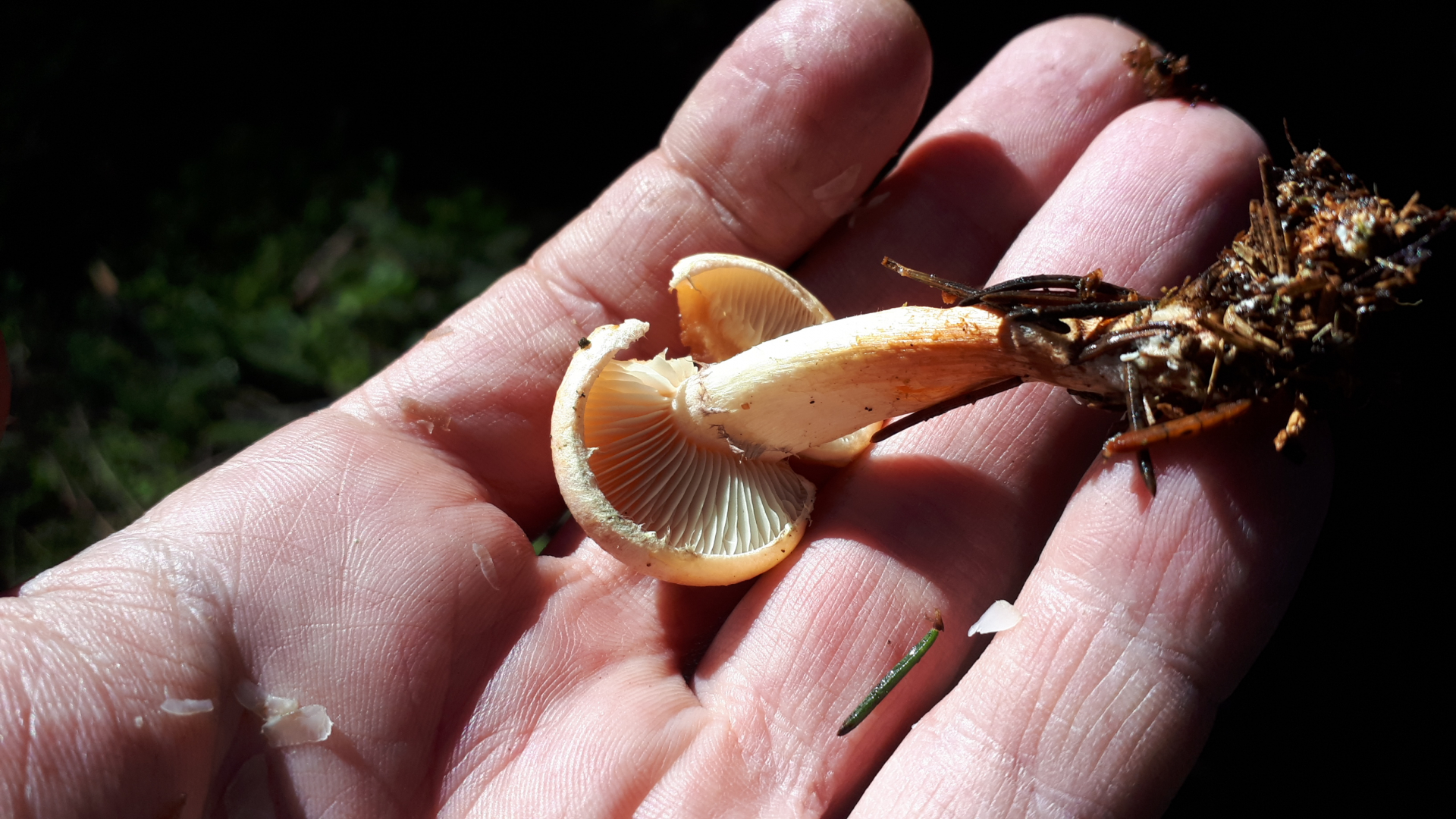 Wie gesagt, Nadelwald, Basis orange Spitze fast weiß, Stiel Faserig, Velumreste, Zwischenlamellen, Lamellen angeheftet, hellgelb, Stiel wurzelnd.. flach. Lg