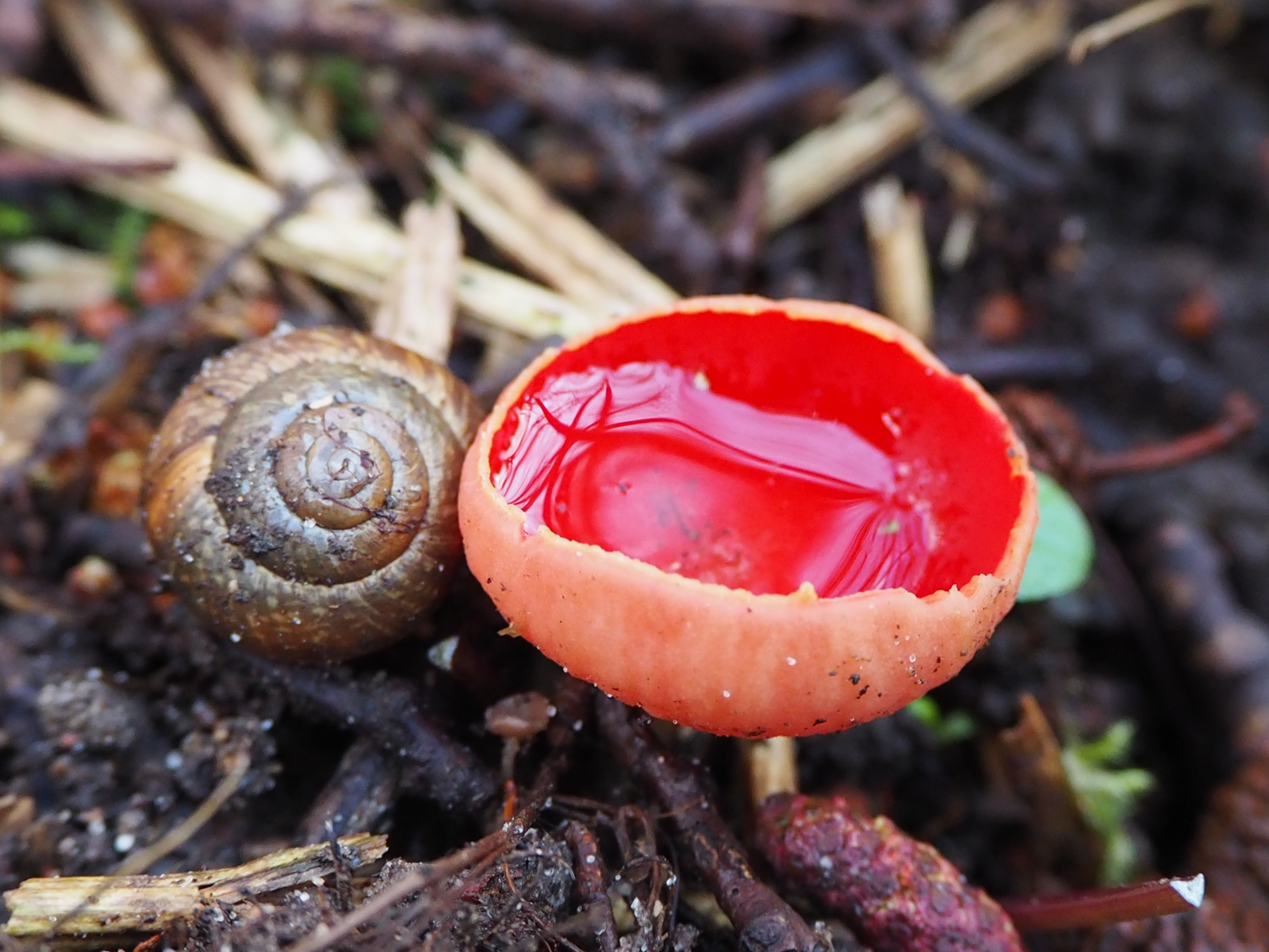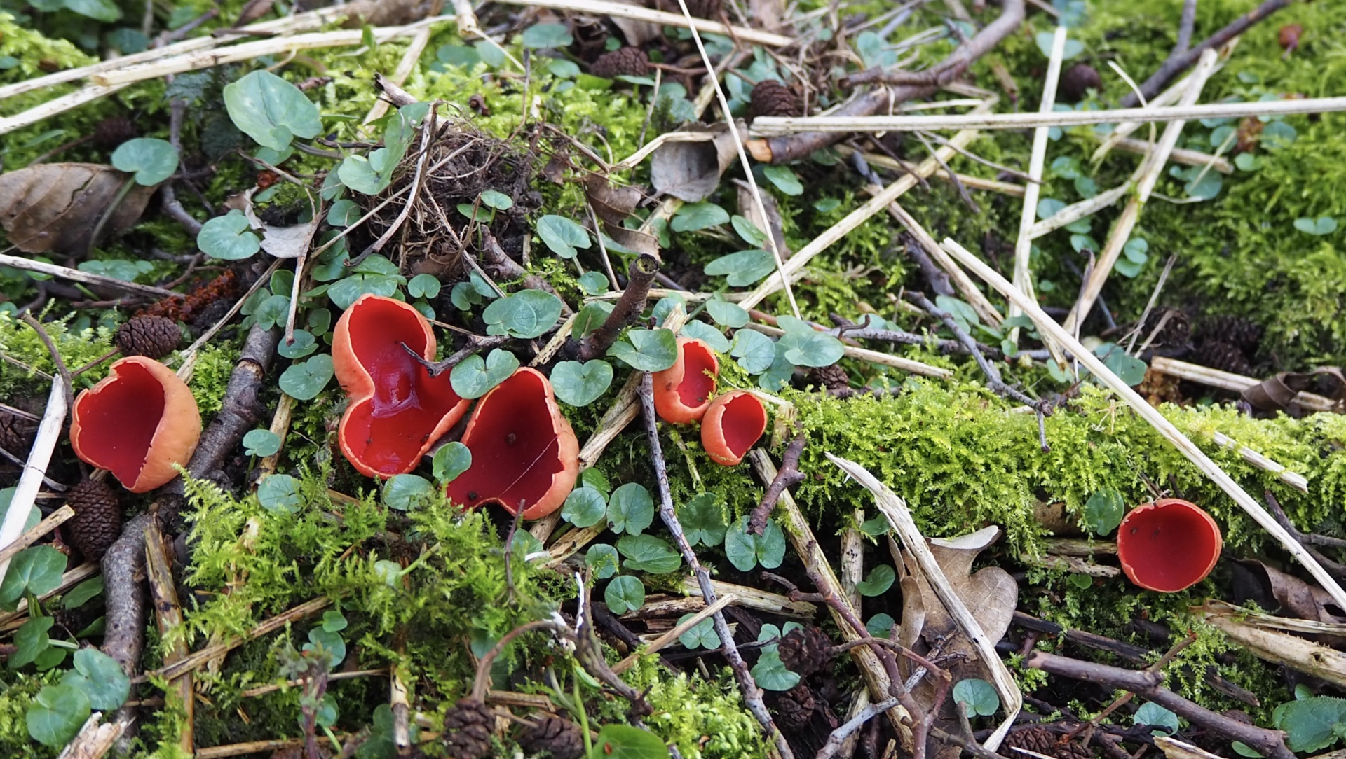 Heute mal ein kleiner Bericht von unserer gestrigen Tour (meine Schwester und ich). Wir stießen auf einer Strecke von circa 800 m auf eine große Gruppe österreichischer Prachtbecherlinge (Sarcoscypha austriaca). Das müssen 100te gewesen sein. Aktuell scheinen sie also wettertechnisch beste Bedingungen zu haben. Hier mal ein paar Nahaufnahmen: