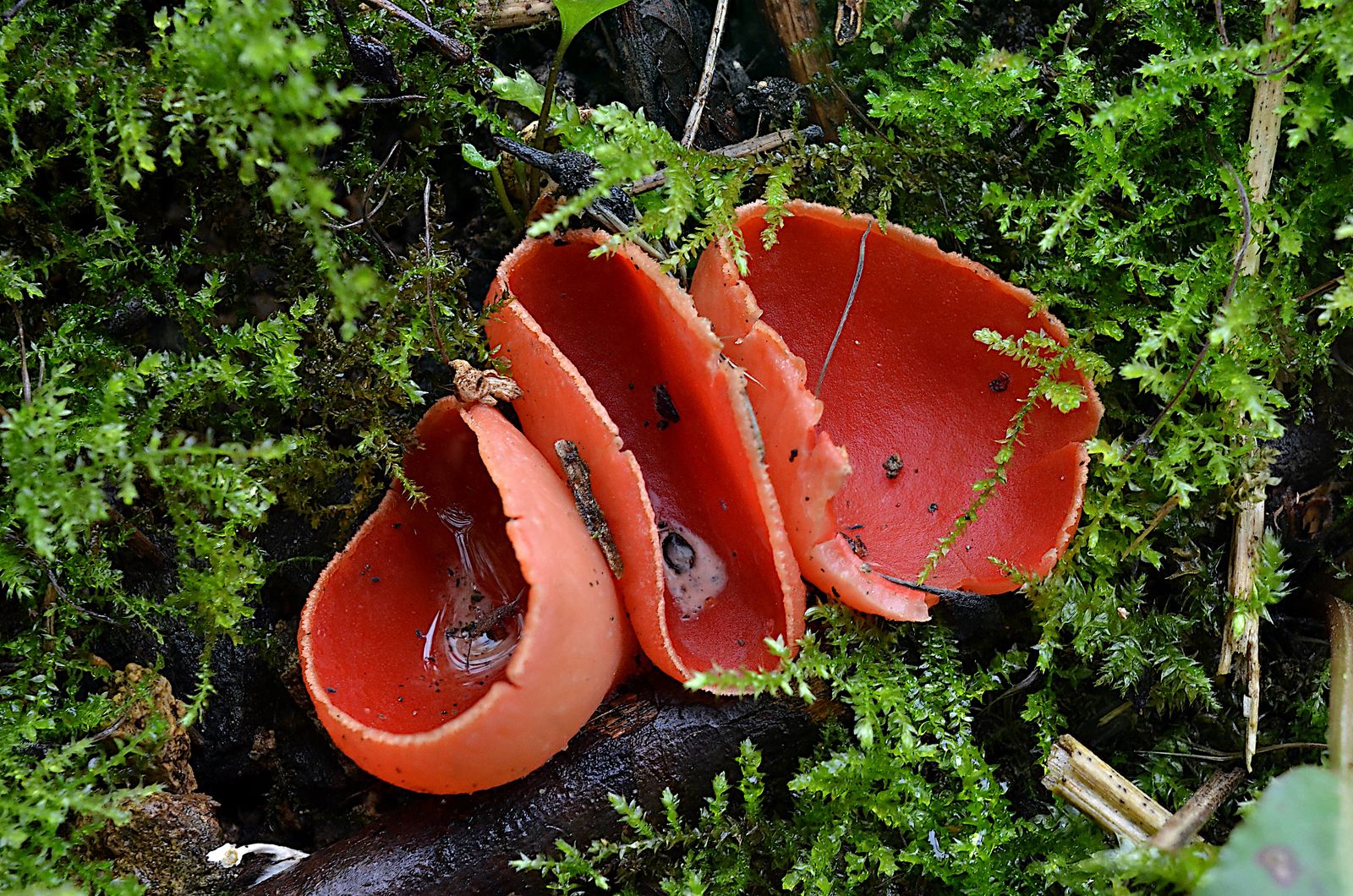 Hast Du Sarcocypha coccinea unterm scharfen Auge untersucht. Ich kann die drei in D. vorkommenden Kelchbecherlinge optisch nicht unterscheiden.