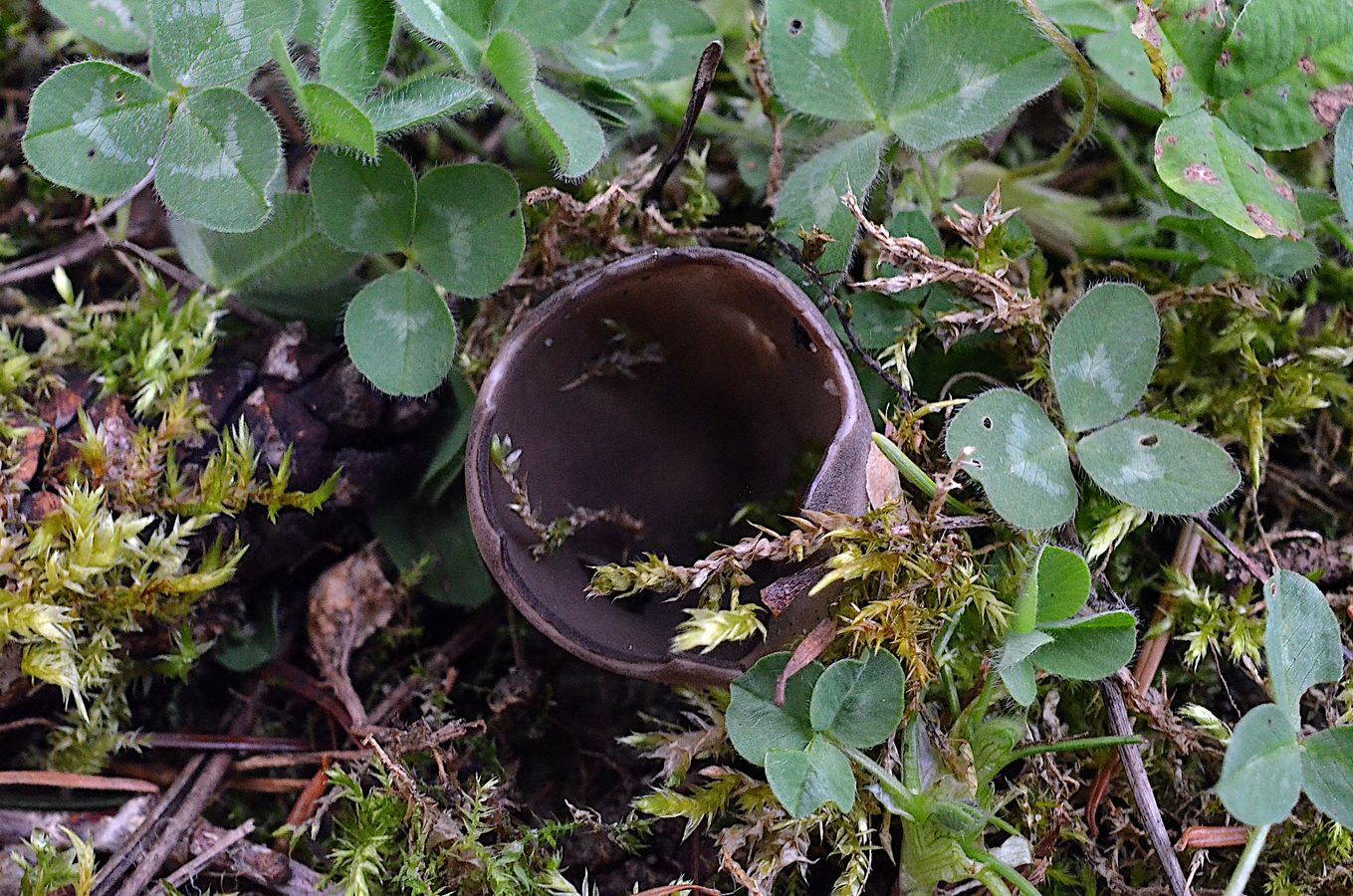 aber inzwischen tendiere ich zur Kleinen Becherlorchel Helvella confusa.