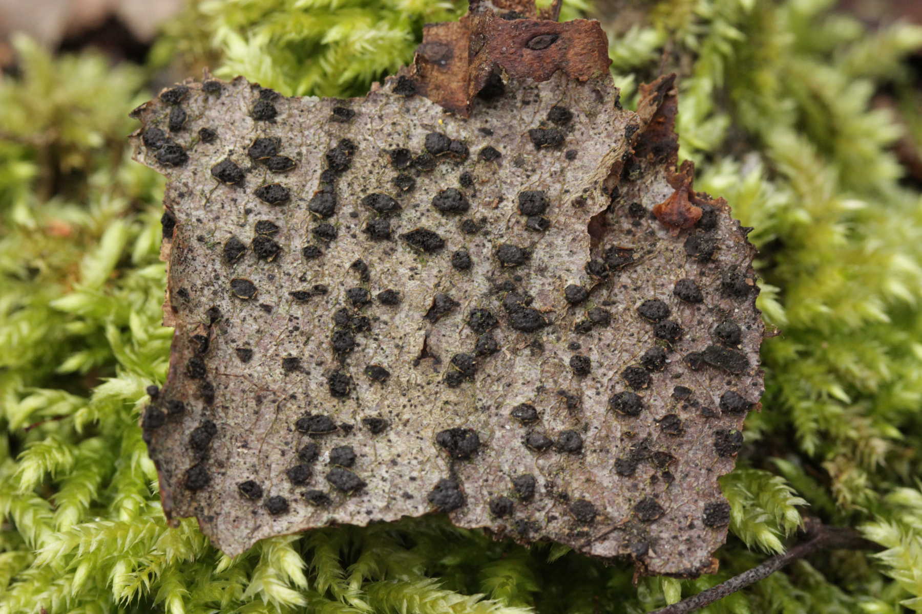 5. Diatrypella verruciformis an Hasel EDIT: Sillia ferruginea, wie der Blick durchs Mikroskop verraten hat, siehe unten.