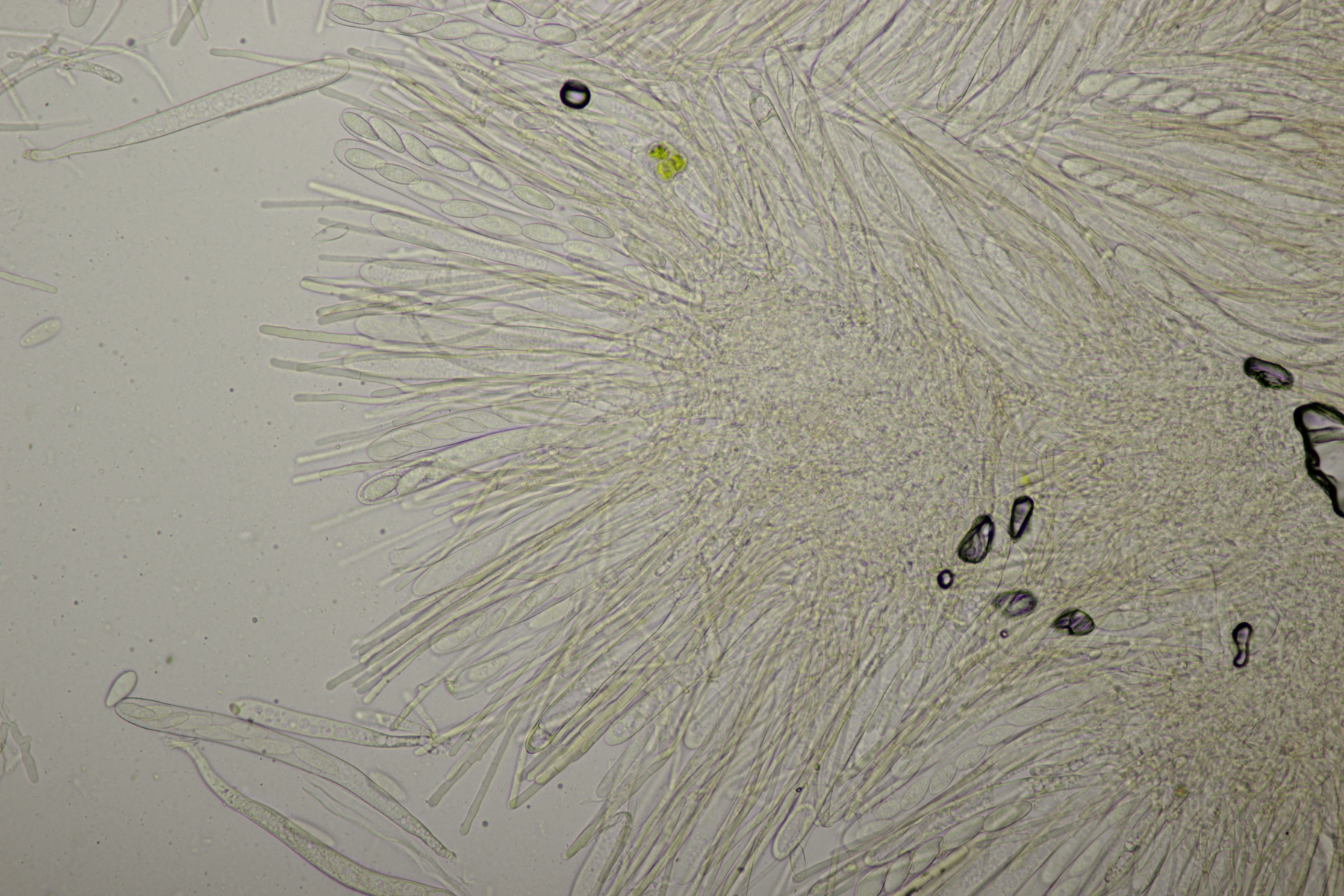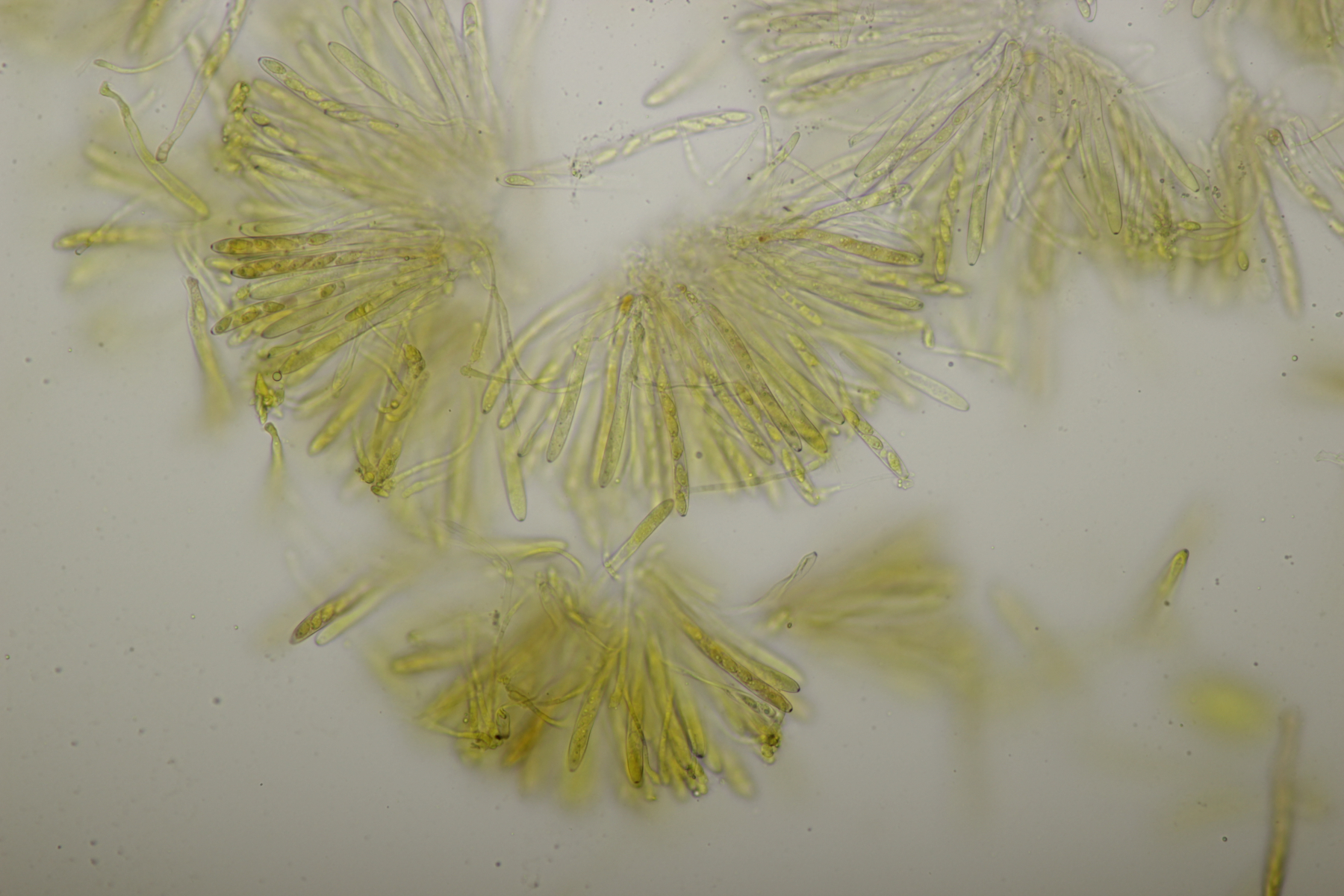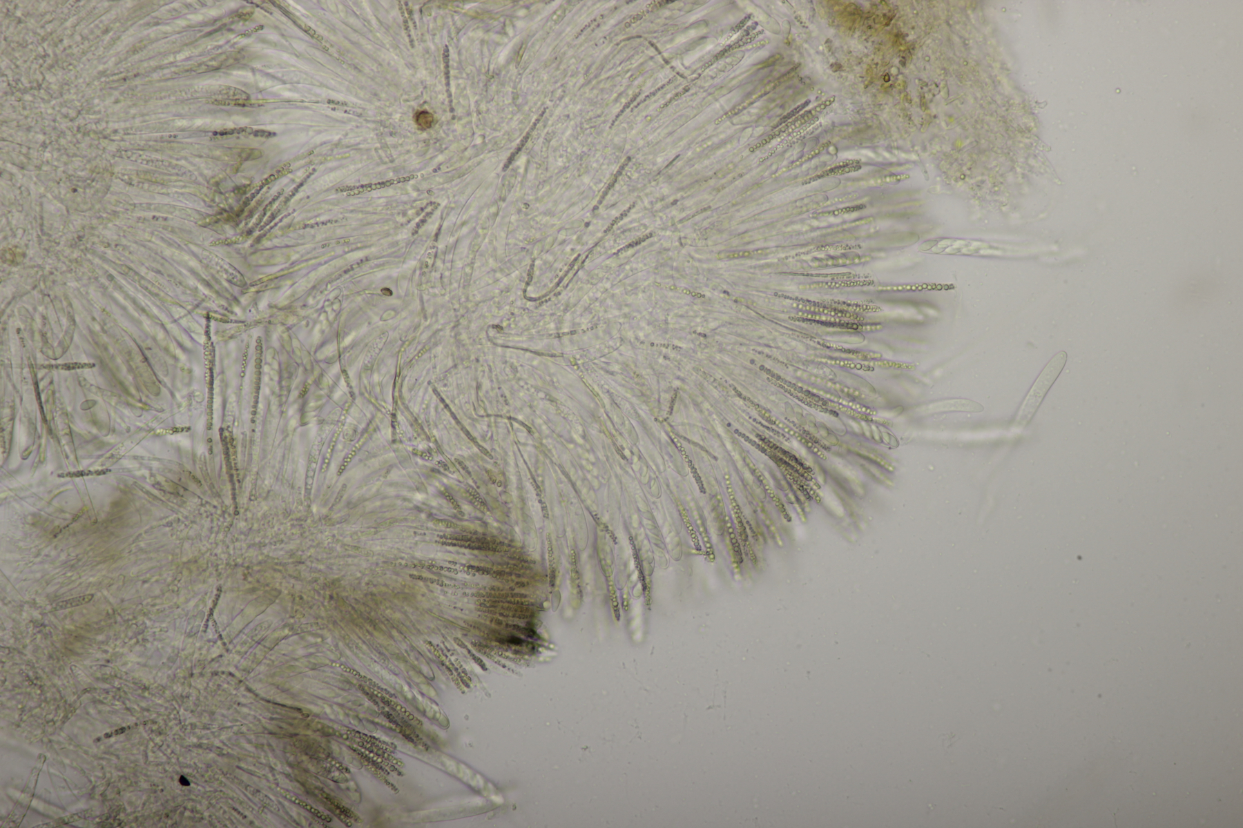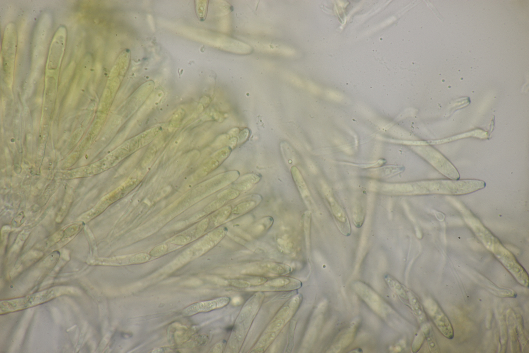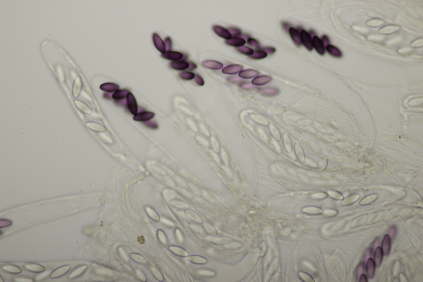 8. Lachnellula sp. an Lärche, Sporen (7.7+-0.5) µm x (2.7+-0.1) µm, Asci 55-65 µm, keine Reaktion mit Lugol. Das paßt irgendwie mikroskopisch gar nicht zu L. occidentalis aber auch nicht zu L. willkommii