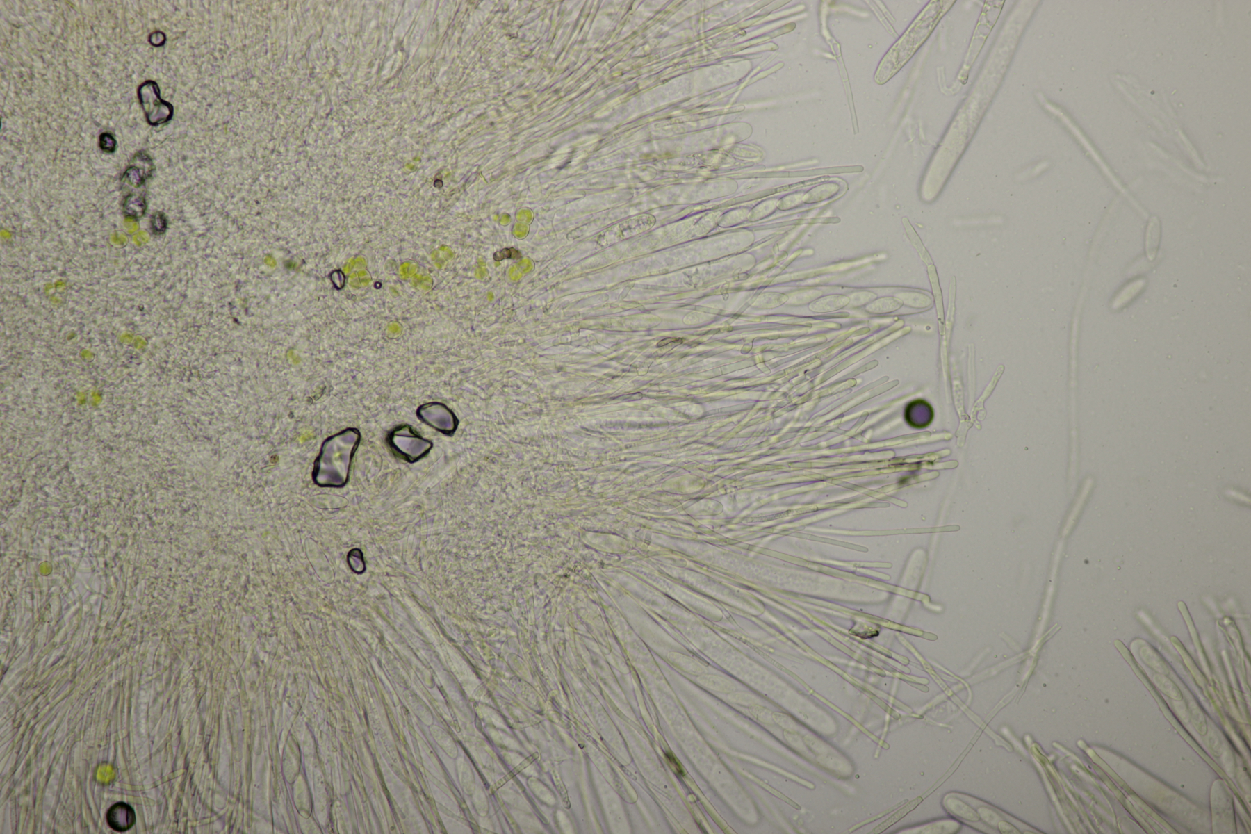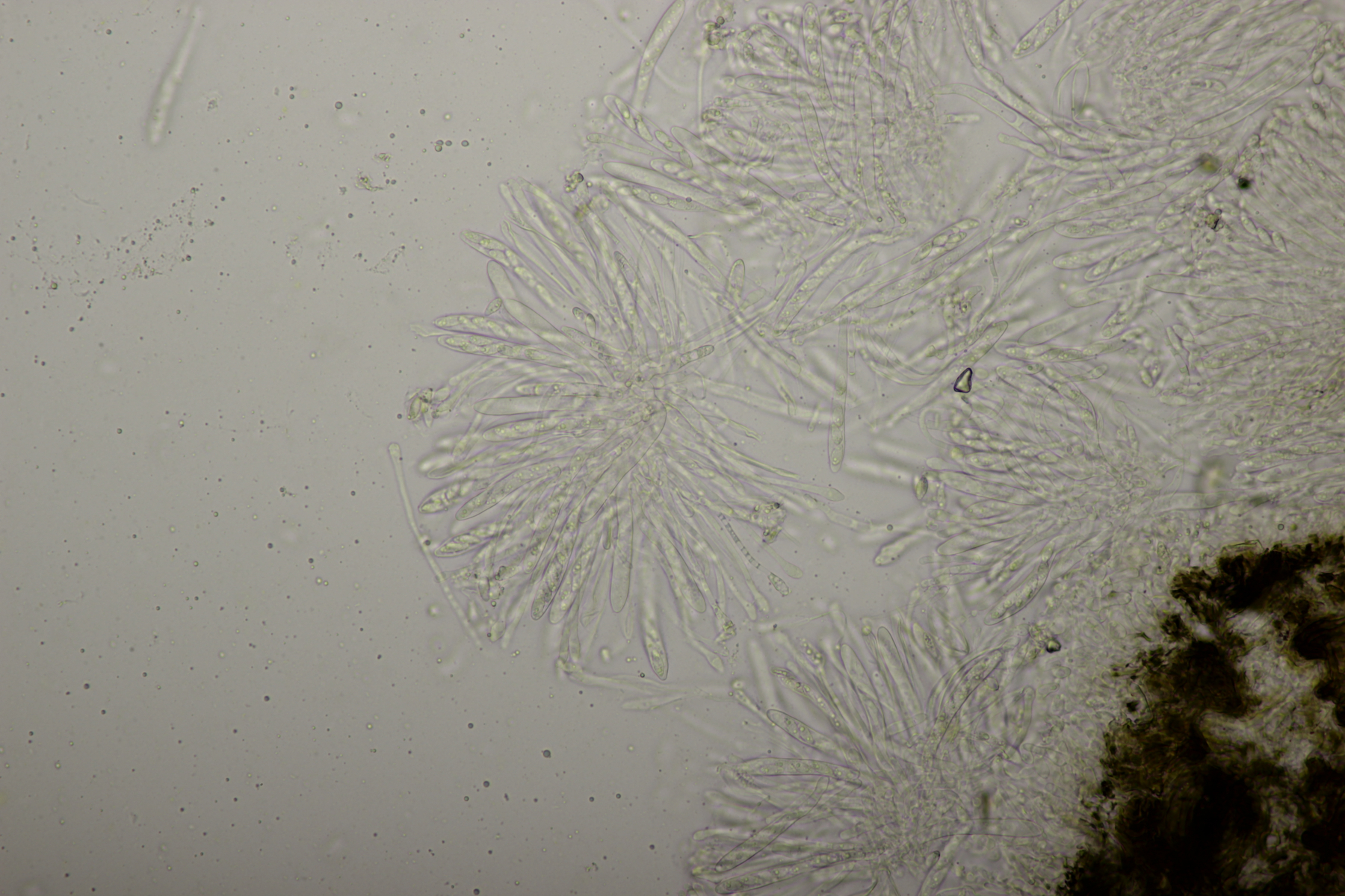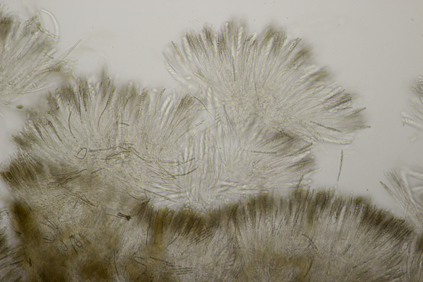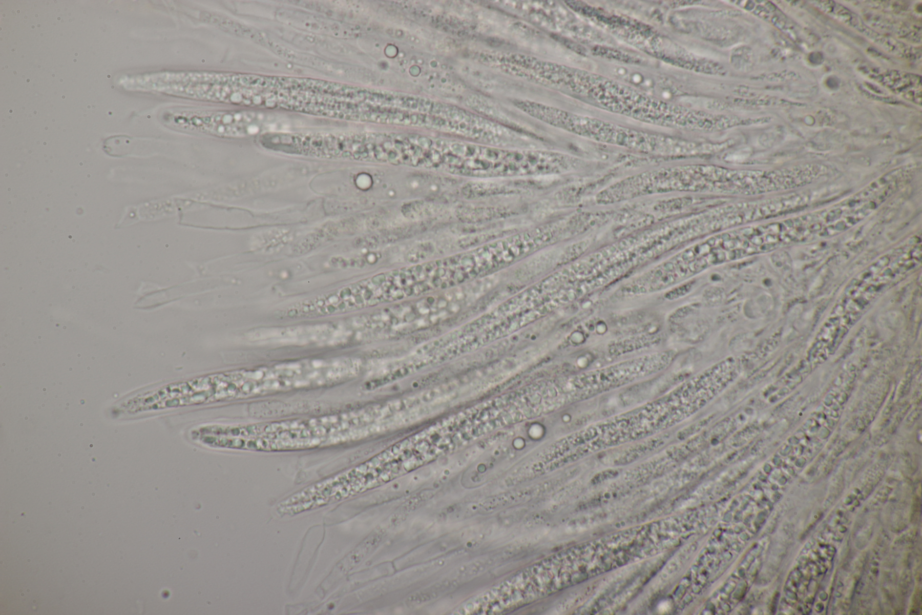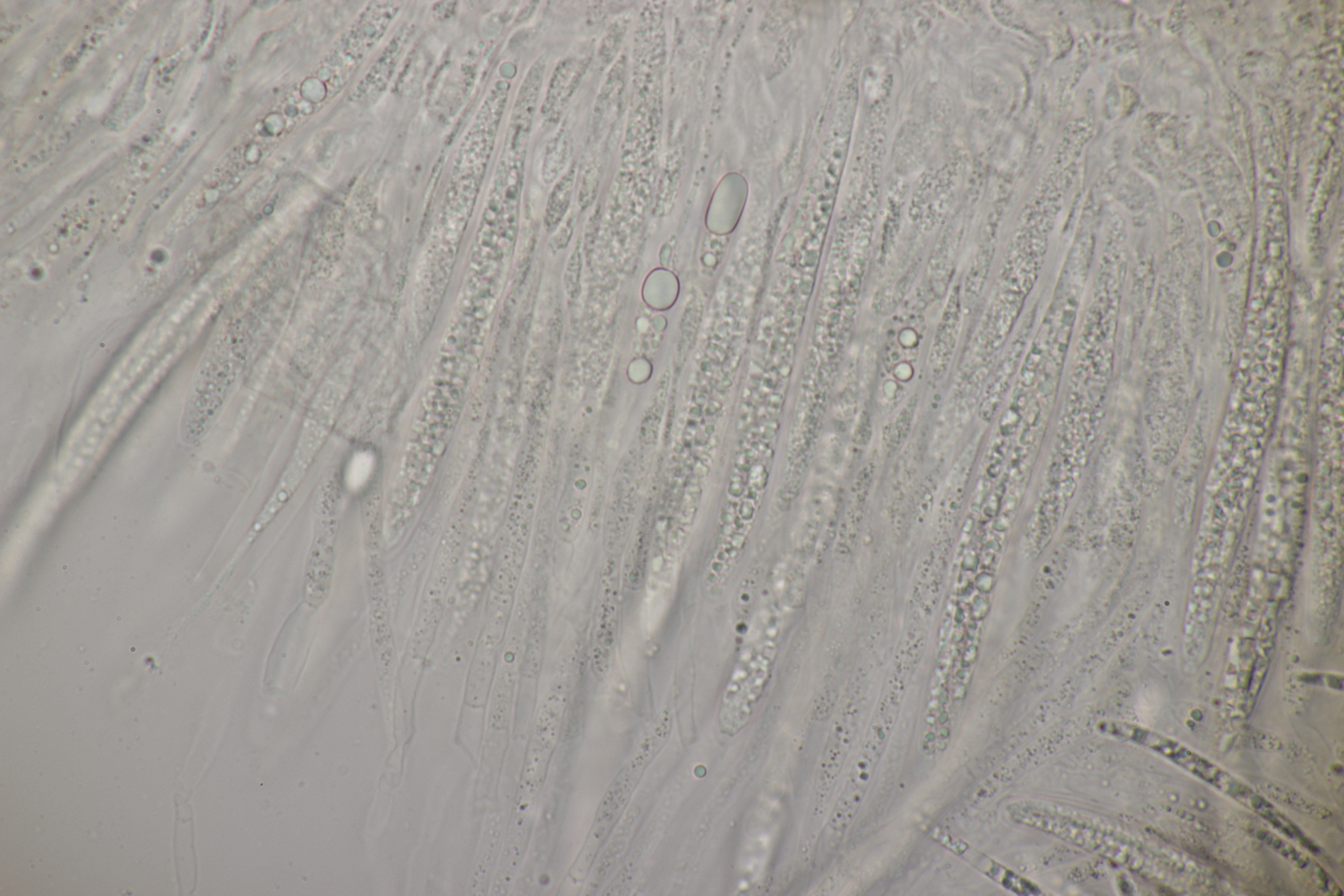 8. Lachnellula sp. an Lärche, Sporen (7.7+-0.5) µm x (2.7+-0.1) µm, Asci 55-65 µm, keine Reaktion mit Lugol. Das paßt irgendwie mikroskopisch gar nicht zu L. occidentalis aber auch nicht zu L. willkommii