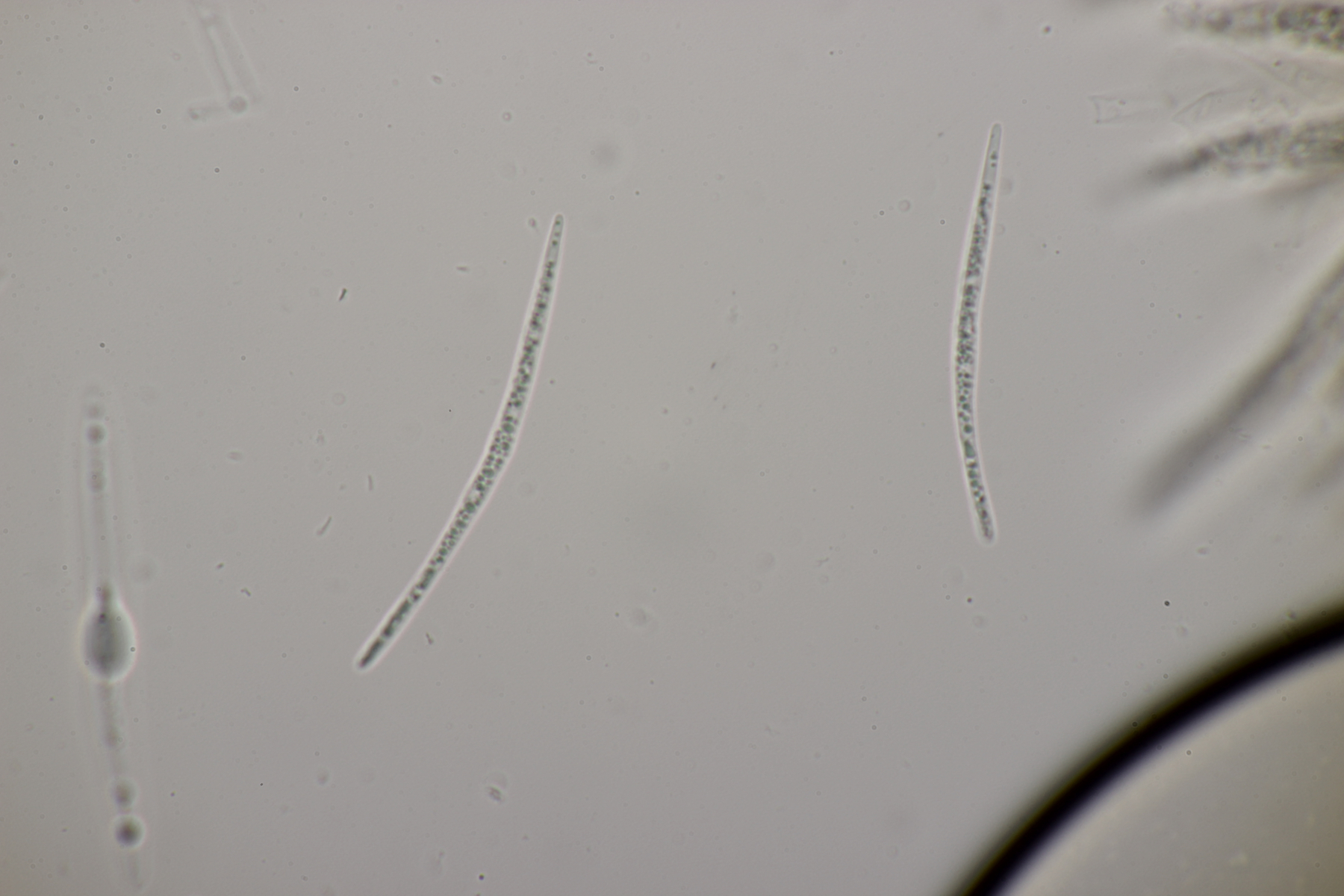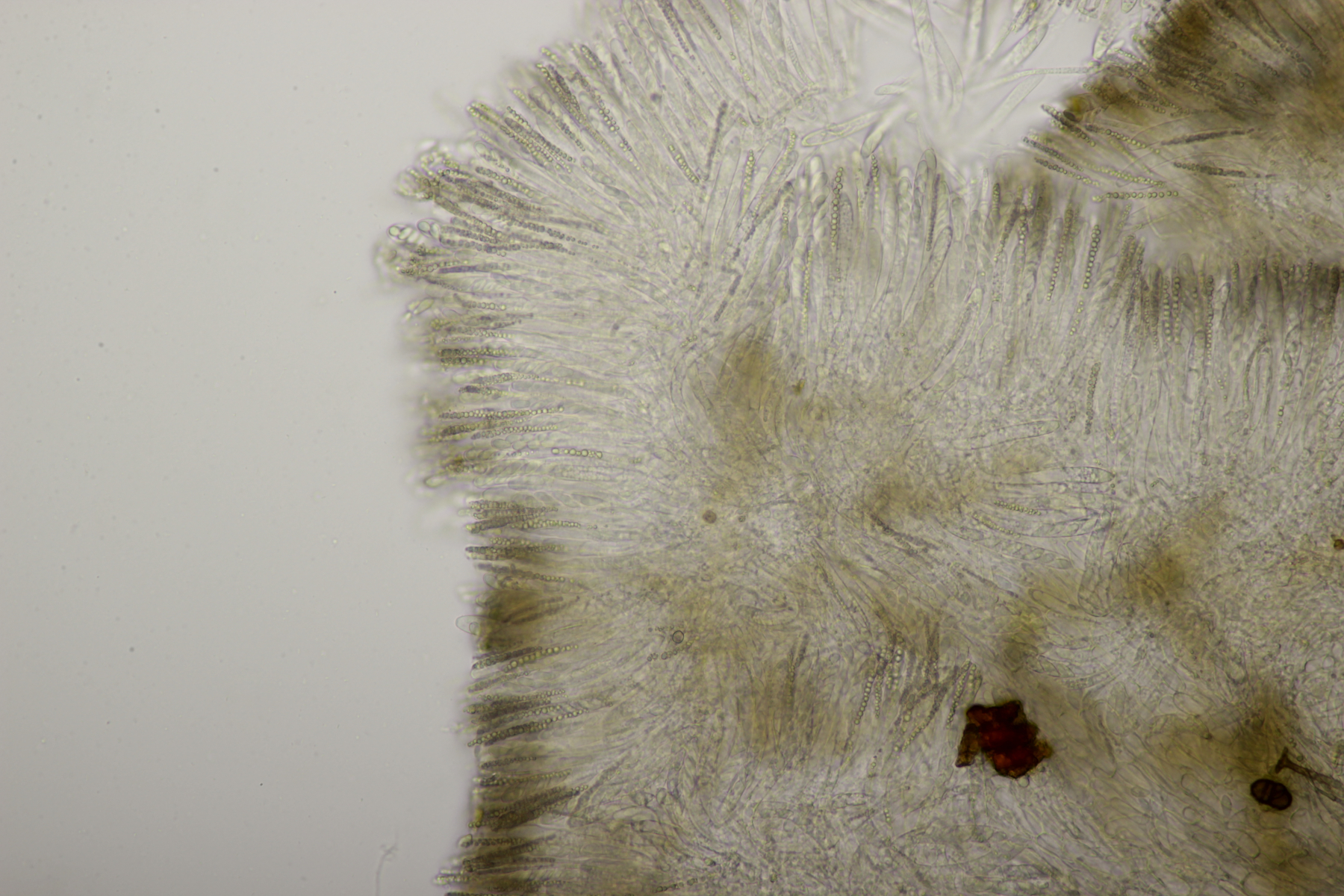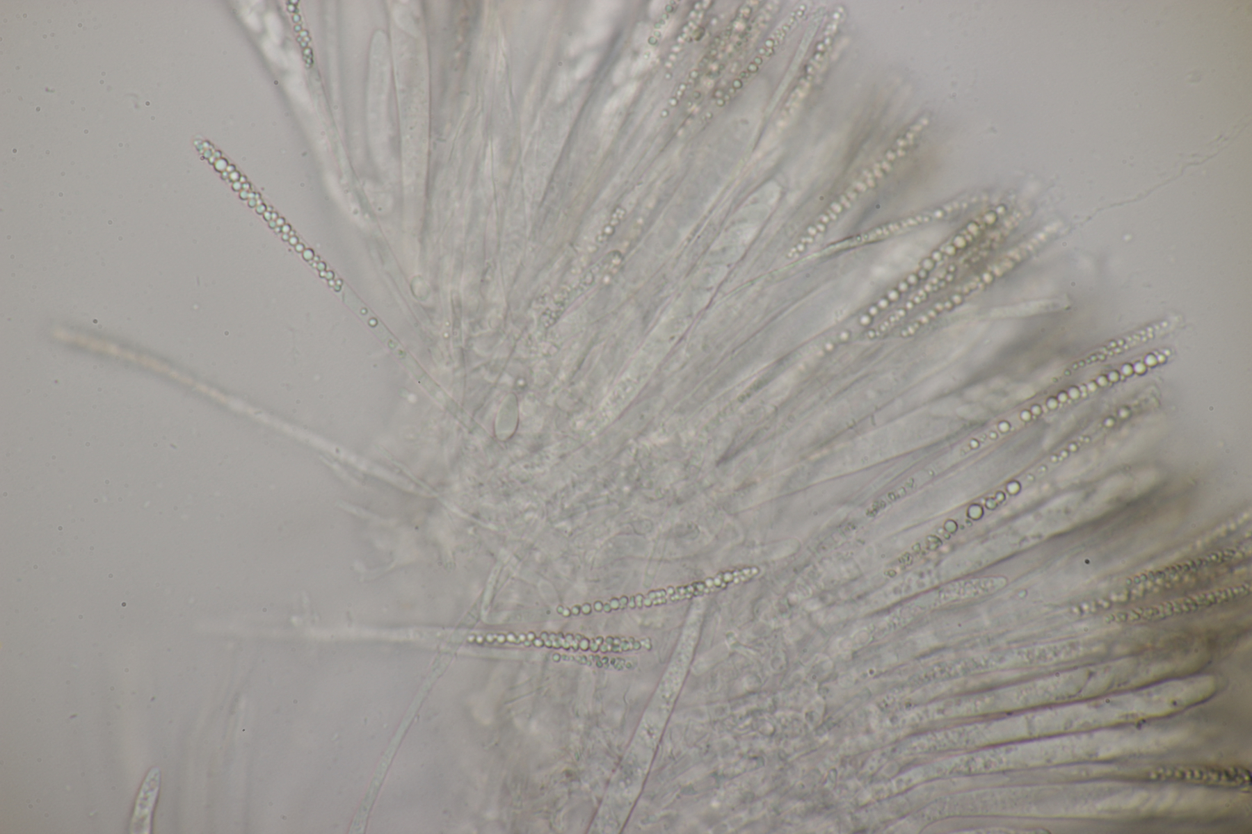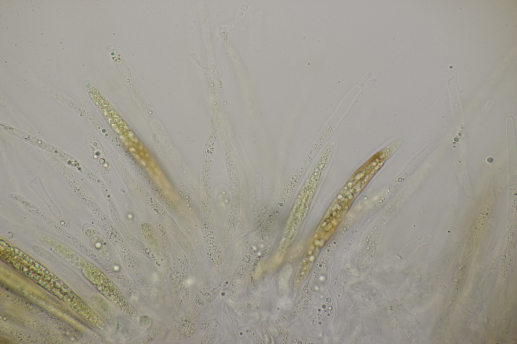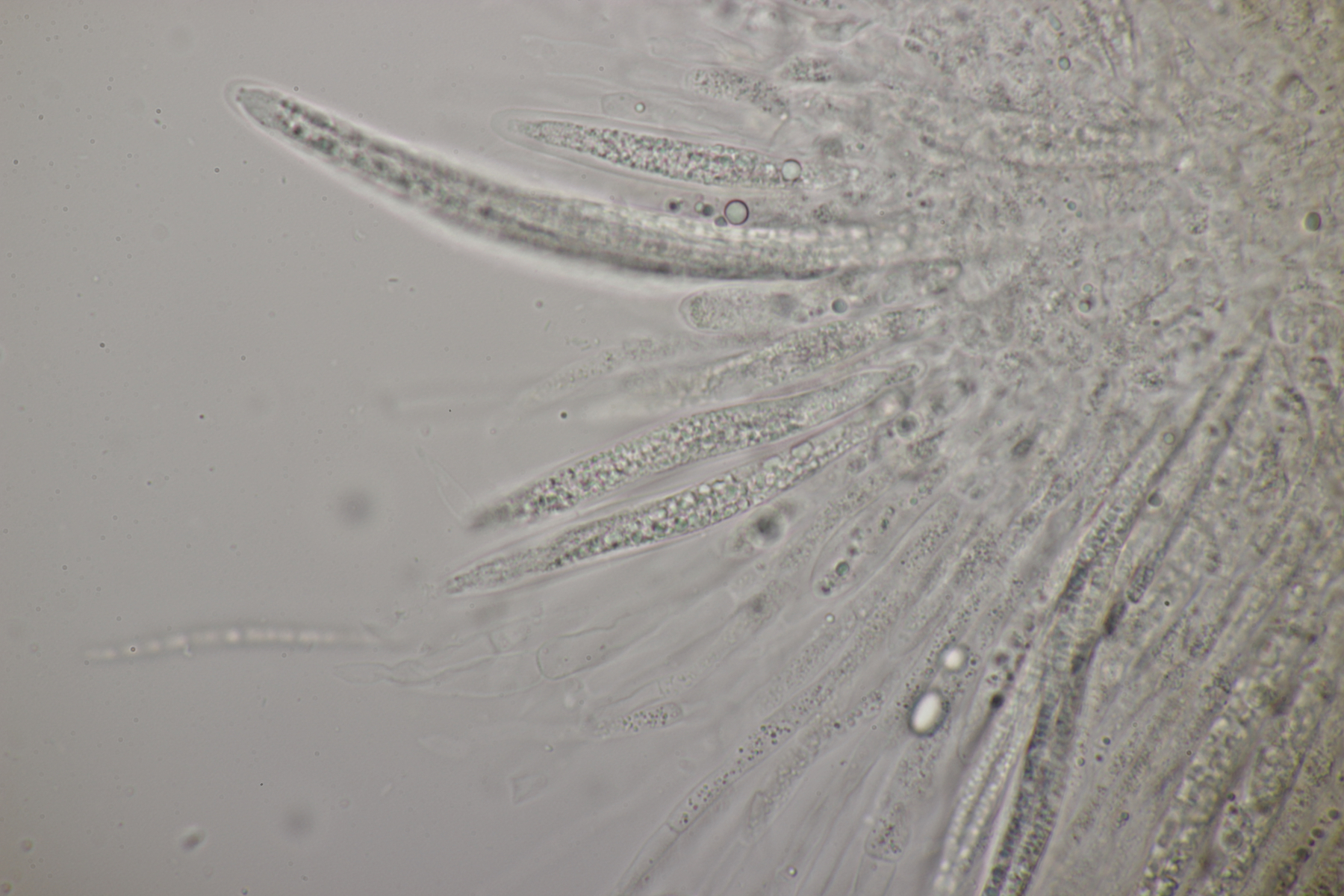 8. Lachnellula sp. an Lärche, Sporen (7.7+-0.5) µm x (2.7+-0.1) µm, Asci 55-65 µm, keine Reaktion mit Lugol. Das paßt irgendwie mikroskopisch gar nicht zu L. occidentalis aber auch nicht zu L. willkommii