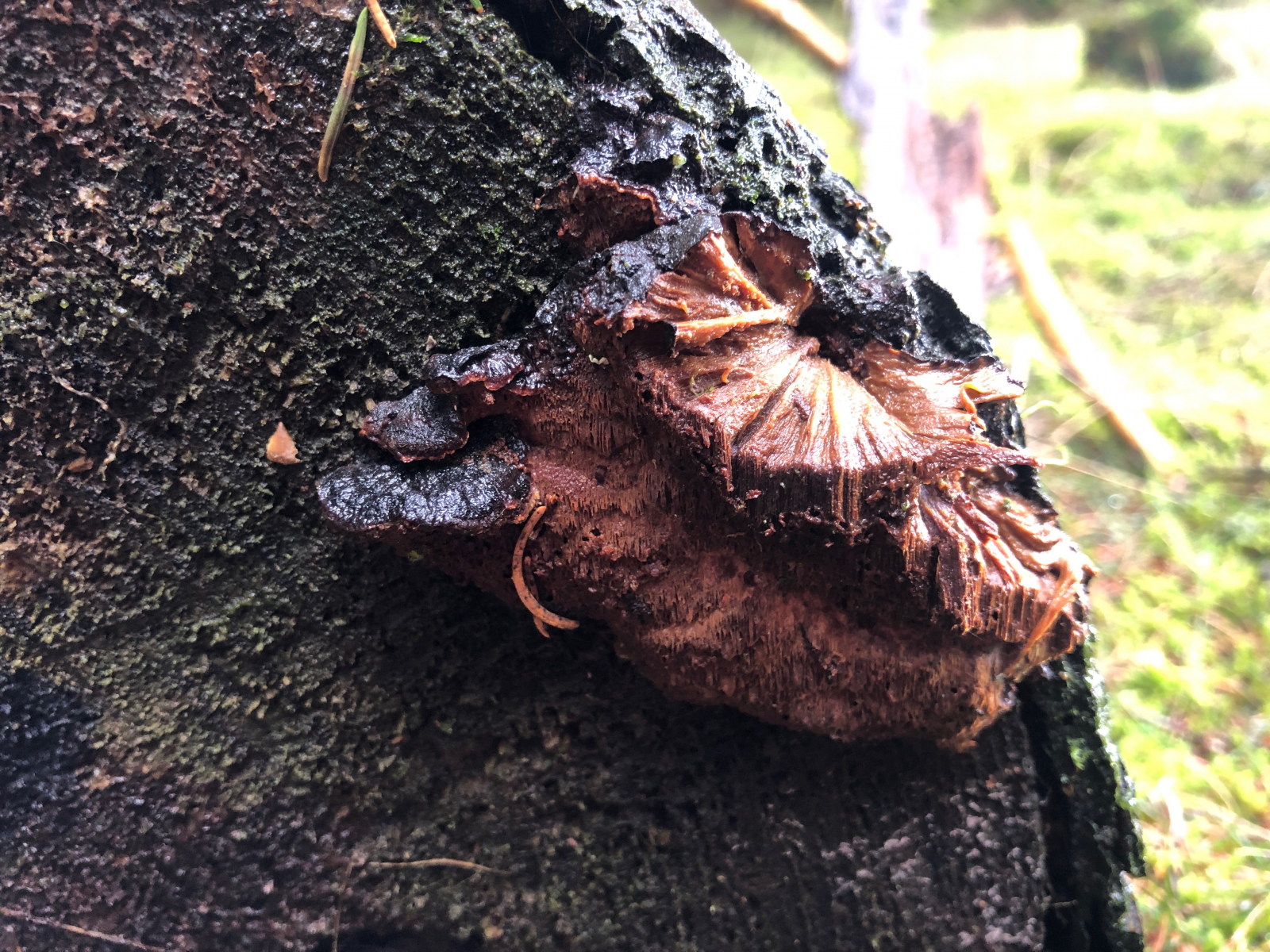 Bei diesem Pilz an morschem Fichtenholz bin ich ratlos. Was kann das sein?