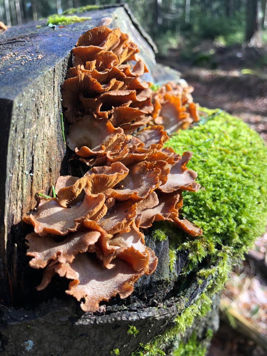 Bei diesem Pilz an morschem Fichtenholz bin ich ratlos. Was kann das sein?