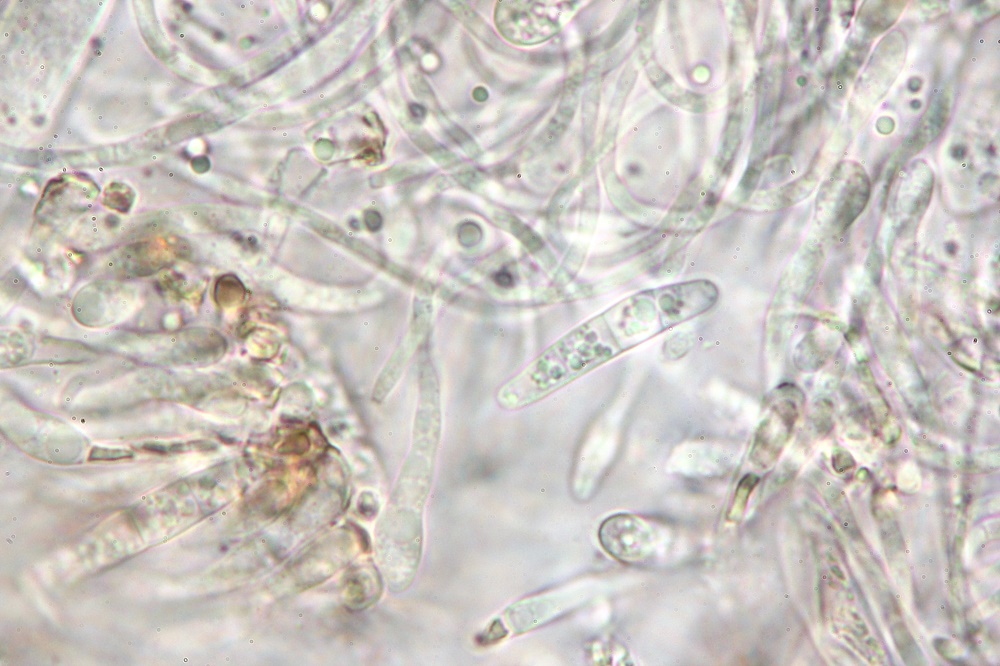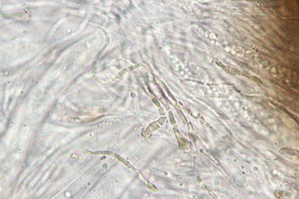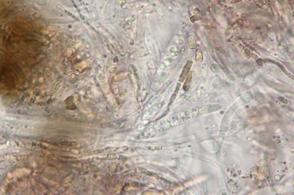 Die Sporen finde ich auch sehr interessant und erinnert mich an die Gattung Claussenomyces.