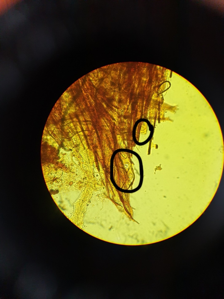 und 2 bescheidene Mikro Bilder, Asci hab ich nur verdeckte gefunden, leider konnte ich die Sporen nicht zählen :(