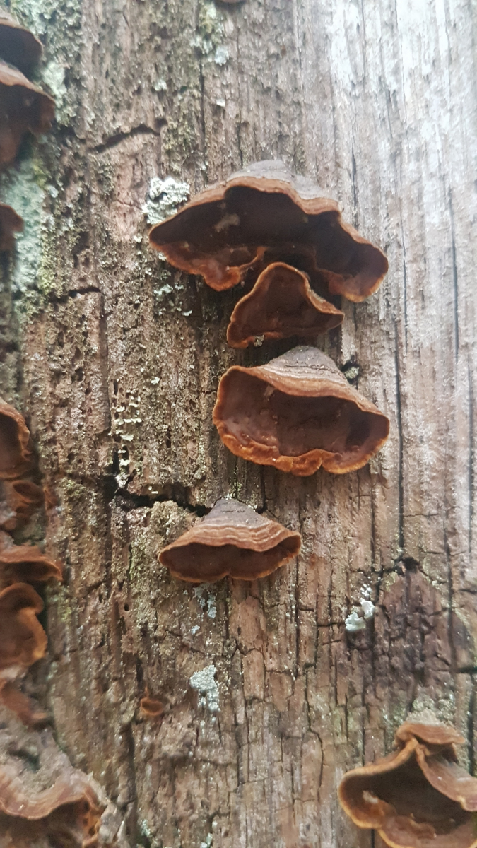 Nr 9: Trameten? Nur welche Art? Bin mir unsicher, ob alle Bilder dieselbe Art zeigen, sie wuchsen auf zwei nebeneinanderliegenden Stümpfen, vermutlich Eiche.