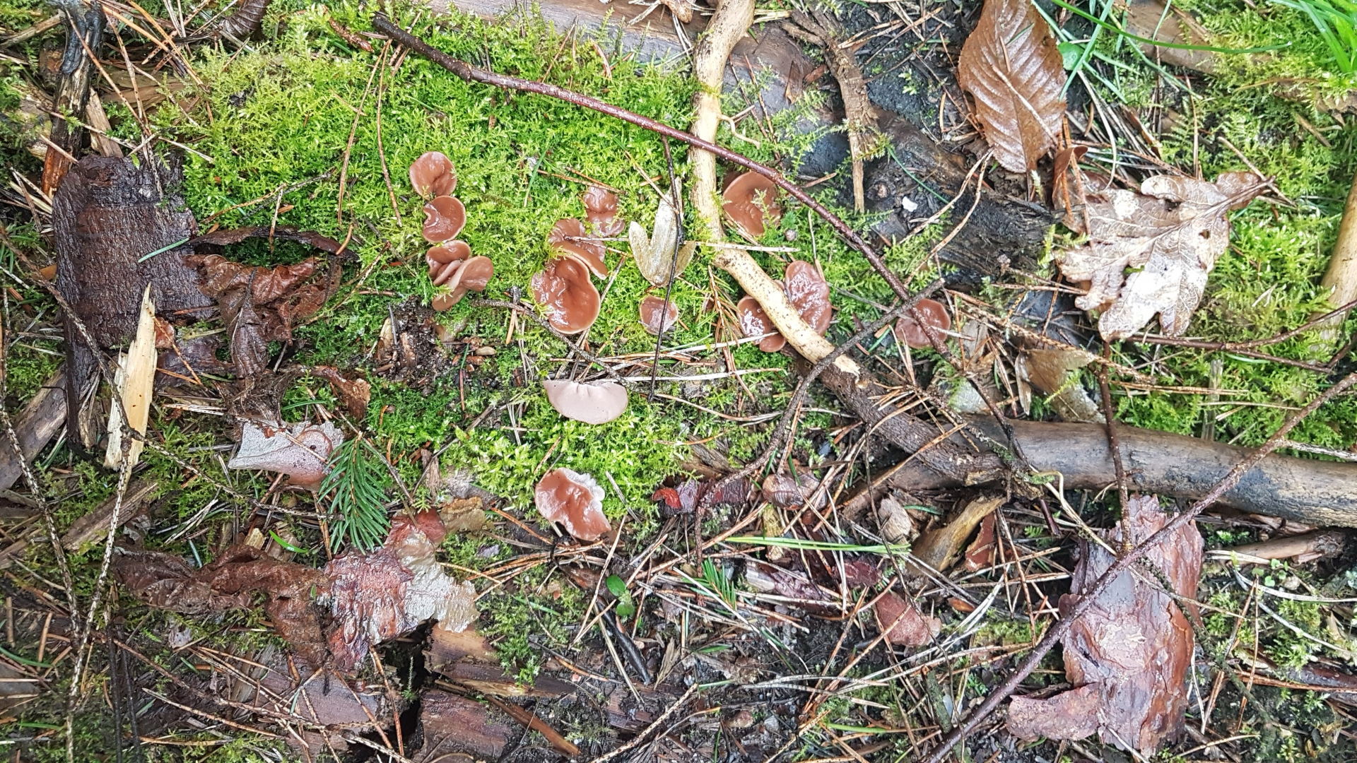 Nr 2: eine Scheiben-Lorchel? Leichter und angenehmer Pilzgeruch, sehr brüchig, auf vergrabenem (wahrscheinlich Nadel-)Holz