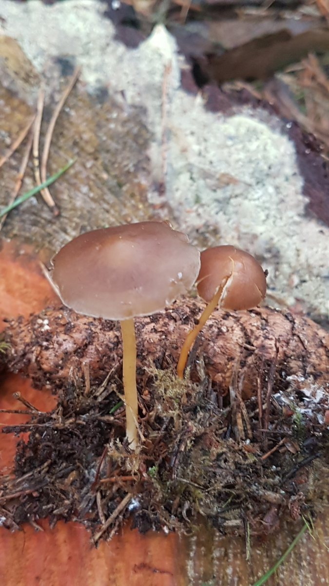 Nr 4: entweder Fichten- oder Kiefernzapfenrübling - in unmittelbarer Nähe waren sowohl ein Kiefern-, als auch ein Fichtenzapfen vergraben. Gibt es da irgendwelche Unterscheidungsmerkmale, abgesehen vom Substrat? Bei einer Geschmacksprobe war jedenfalls nichts Bitteres festzustellen; sie waren eher wässrig und ansonsten geschmacklos.