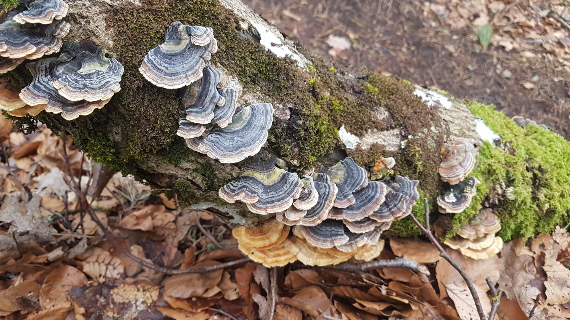 Nr 7: Ist dies die Schmetterlings-Tramete? Oder gibt es hier Verwechslungsmöglichkeiten mit einer großen blauschwarzen und samtigen Zone plus einer weißen bis gelblichen Unterseite?