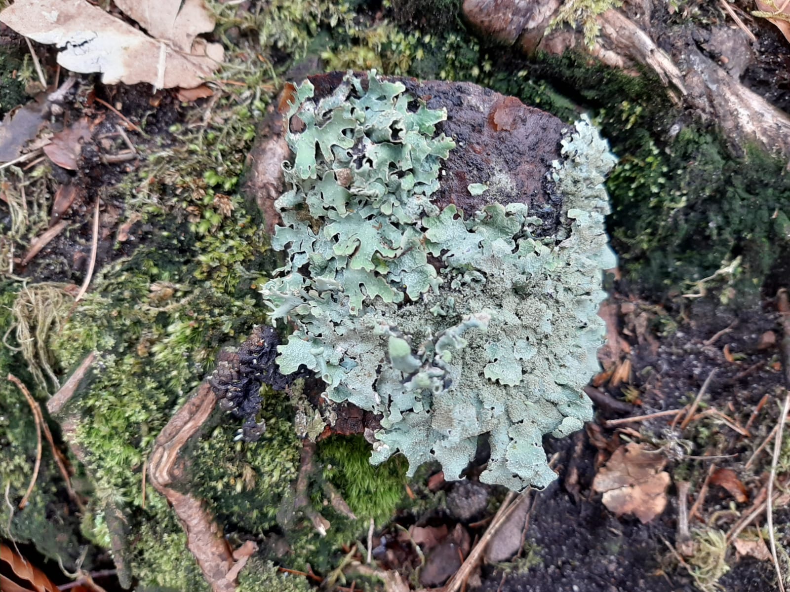 2. Die obere (obere Bildhälfte) ist auch Parmelia sulcata, die darunter hat wohl Isidien (kleine, stiftförmige vegetative Verbreitungsorgane) und fällt dann in den Formenkreis um Parmelia saxatilis. Wegen der recht großen Randlappen könnte dies Parmelia serrana sein. Die Arten in dieser Gruppe sind schwer zu trennen.