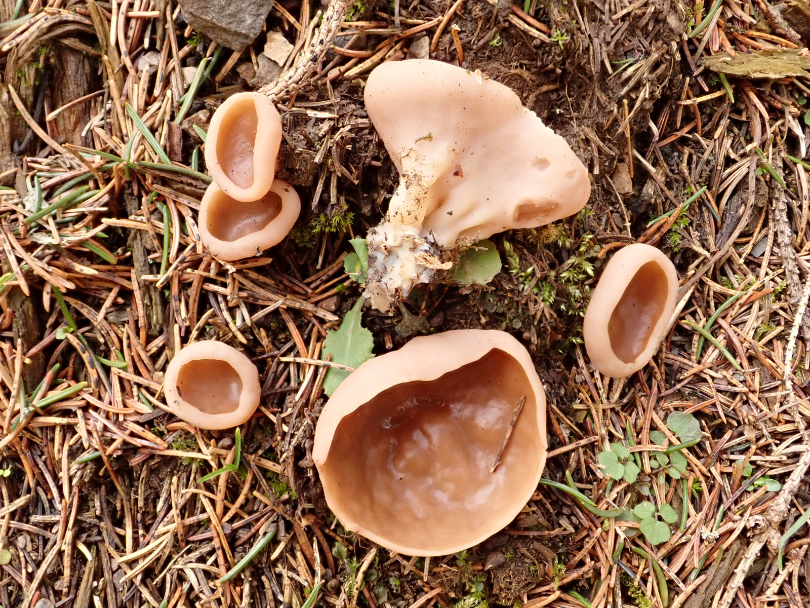 An sonnigen Stellen fanden sich aber schon die ersten Größten Scheiblinge oder Scheibenlorcheln - Discina oder Gyromitra perlata auf morschen Stümpfen Natürlich sind sie noch nicht reif. Die Lorcheln brauchen immer sehr lange ehe sie reife Sporen entwickeln.