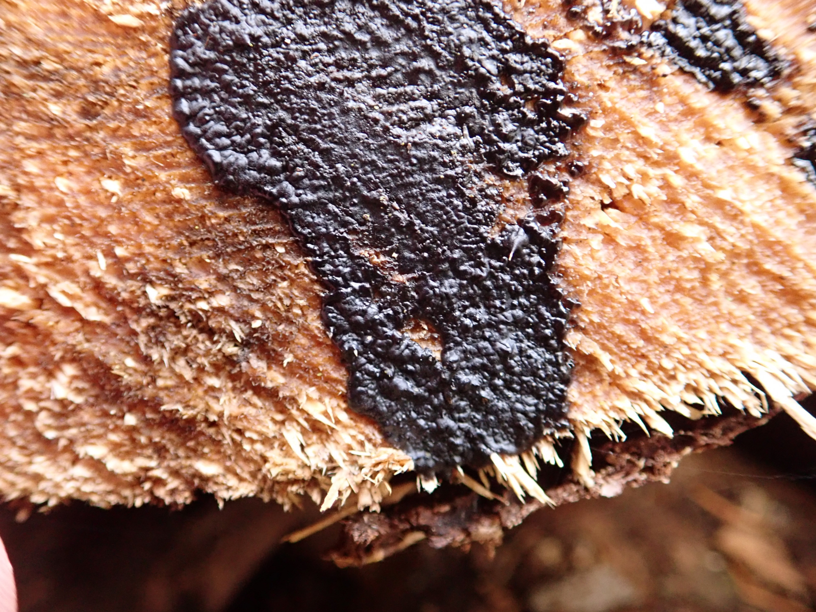 An den Schnittflächen geschlagener Fichten wuchs der Teerfleckendrüsling Exidia pithya.