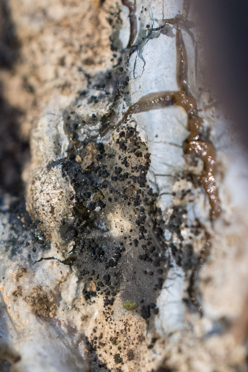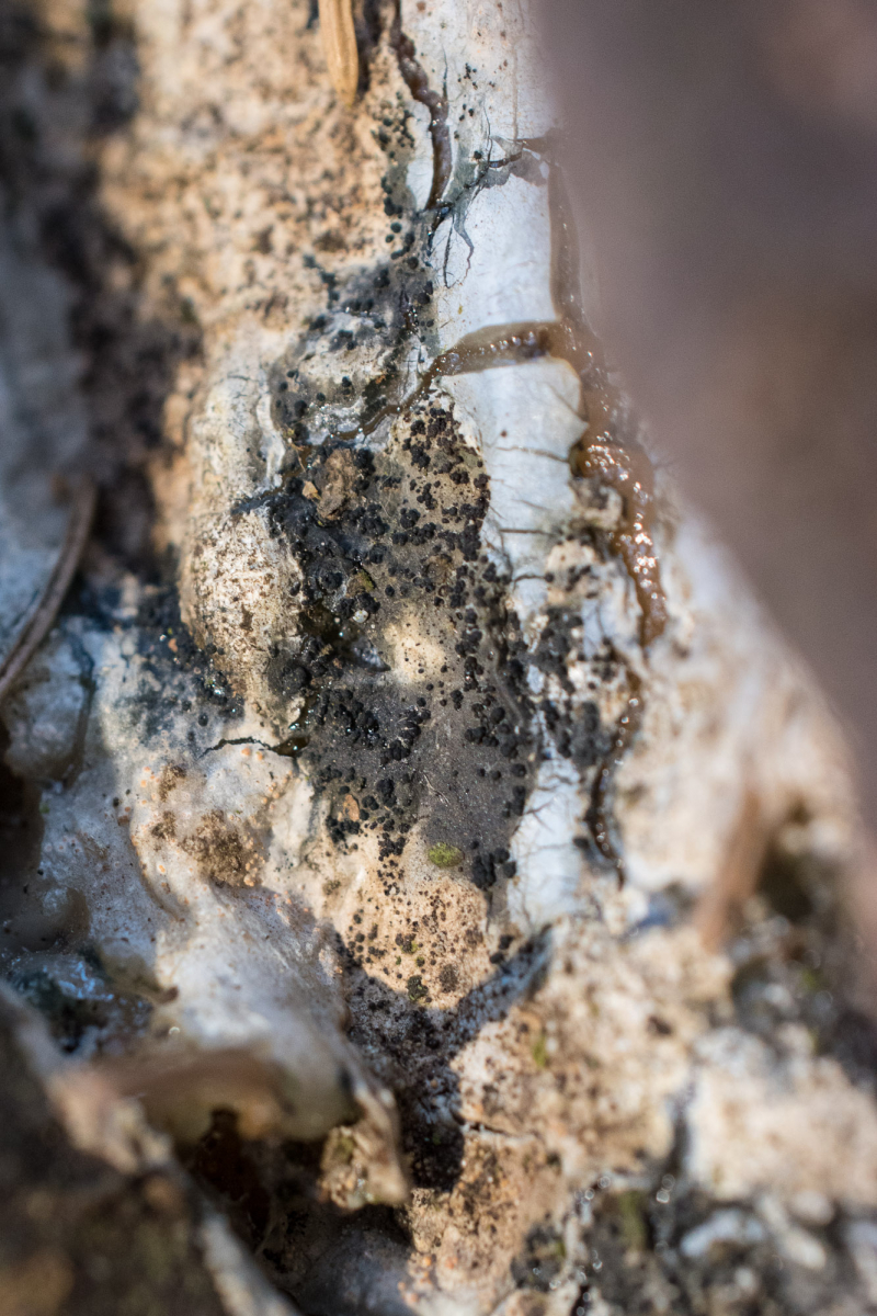 Durch eine französische Schleimpilzfreundin waren wir aufmerksam gemacht worden, dass es an den Harzausflüssen von Fichten auch einen seltenen Schleimpilz gibt.