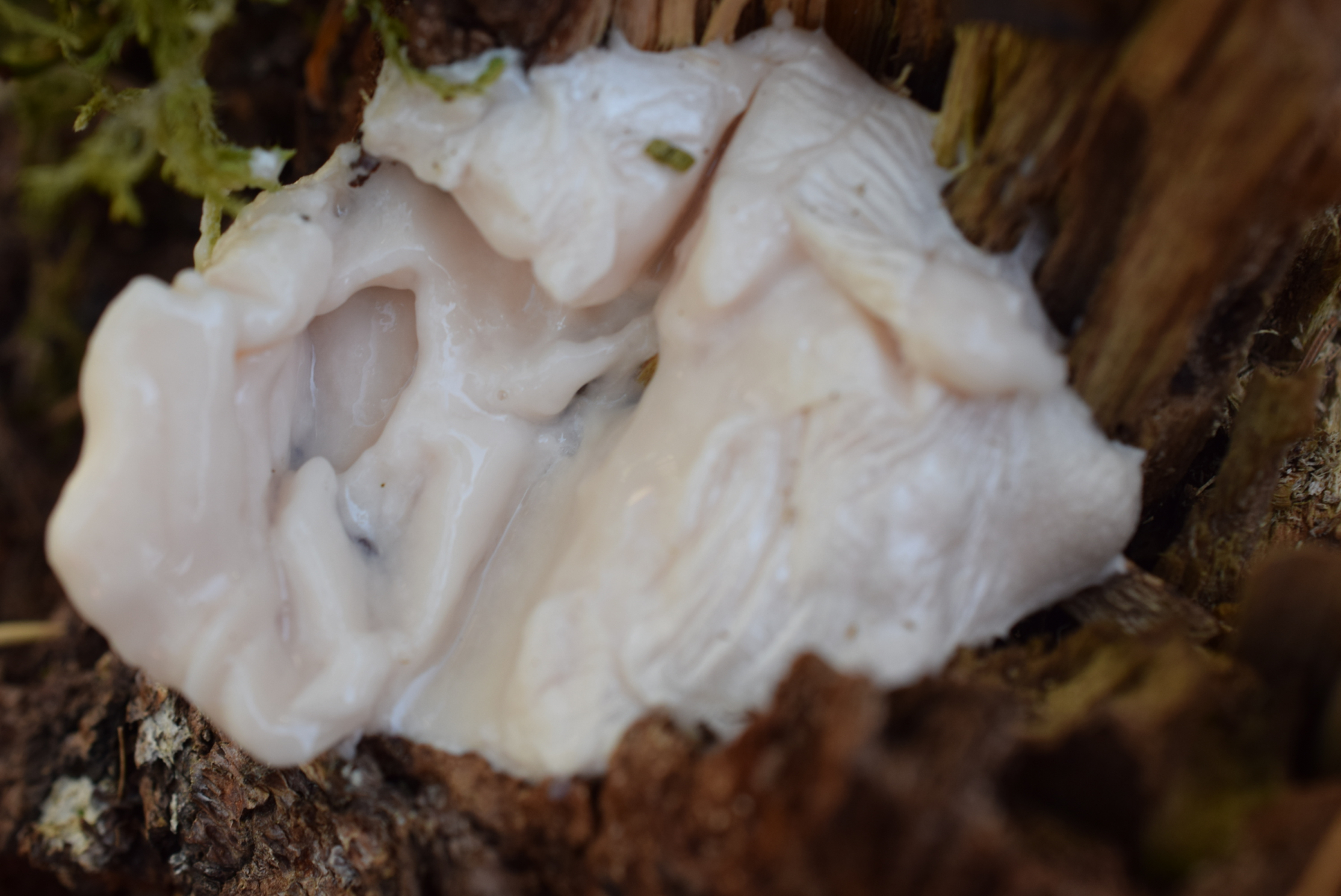 an dem verwitterten Holz an meinem Gartenteichufer aufgefallen.Leider liegt das Hiolz direkt