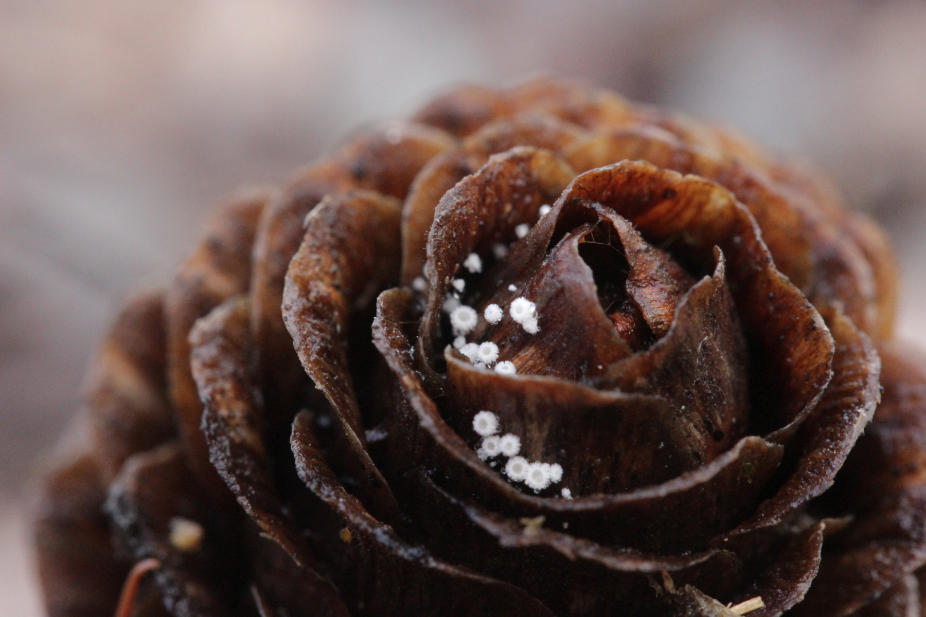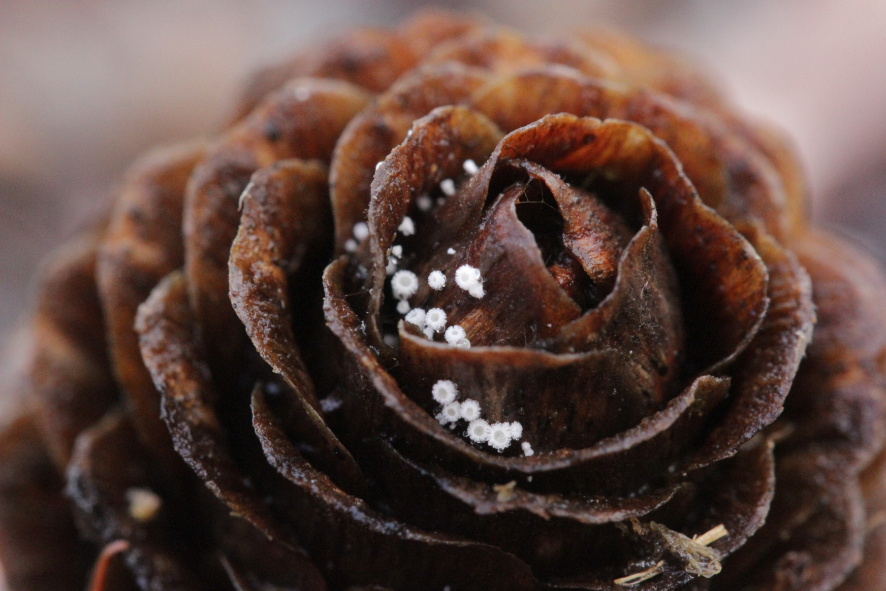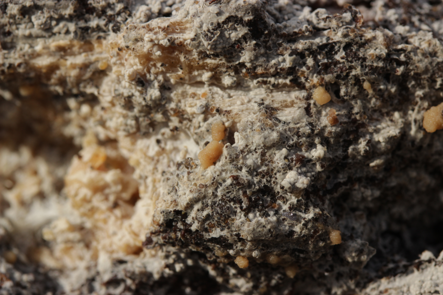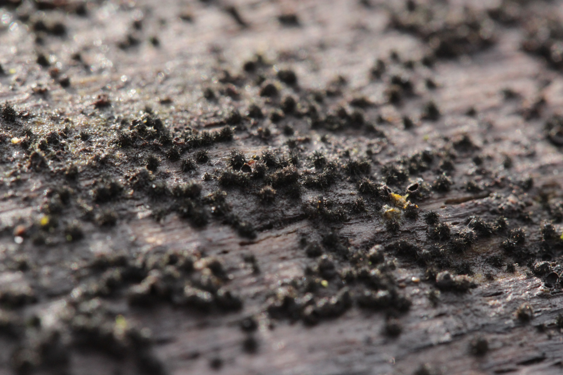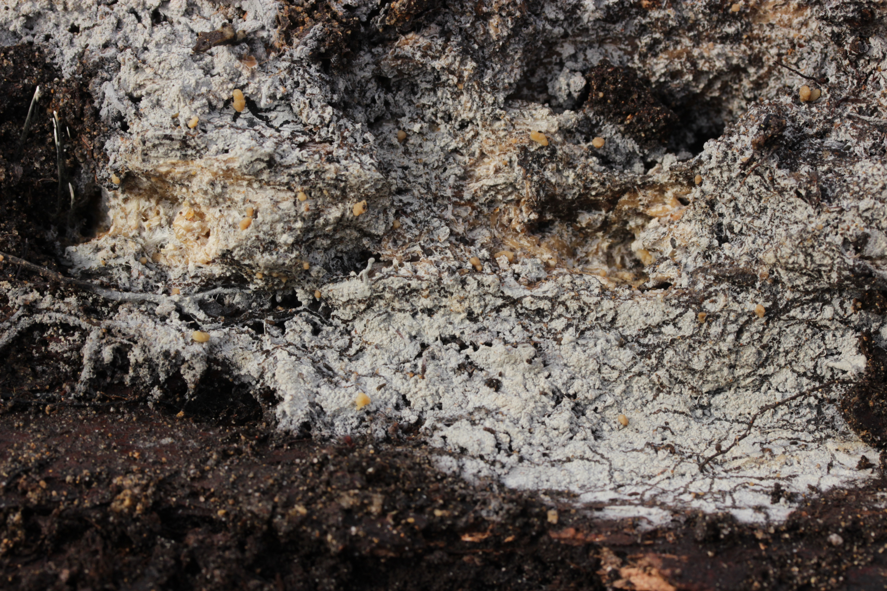 10. Hier soll mal nicht der Pilz im Vordergrund stehen sondern die geblichen Flecken. Erst dachte ich an irgendwas anamorphes. Aber als sich die kleinen Dinger dann bewegten, war klar: Das ist tierisches Leben. Hat da jemand eine Idee zu?