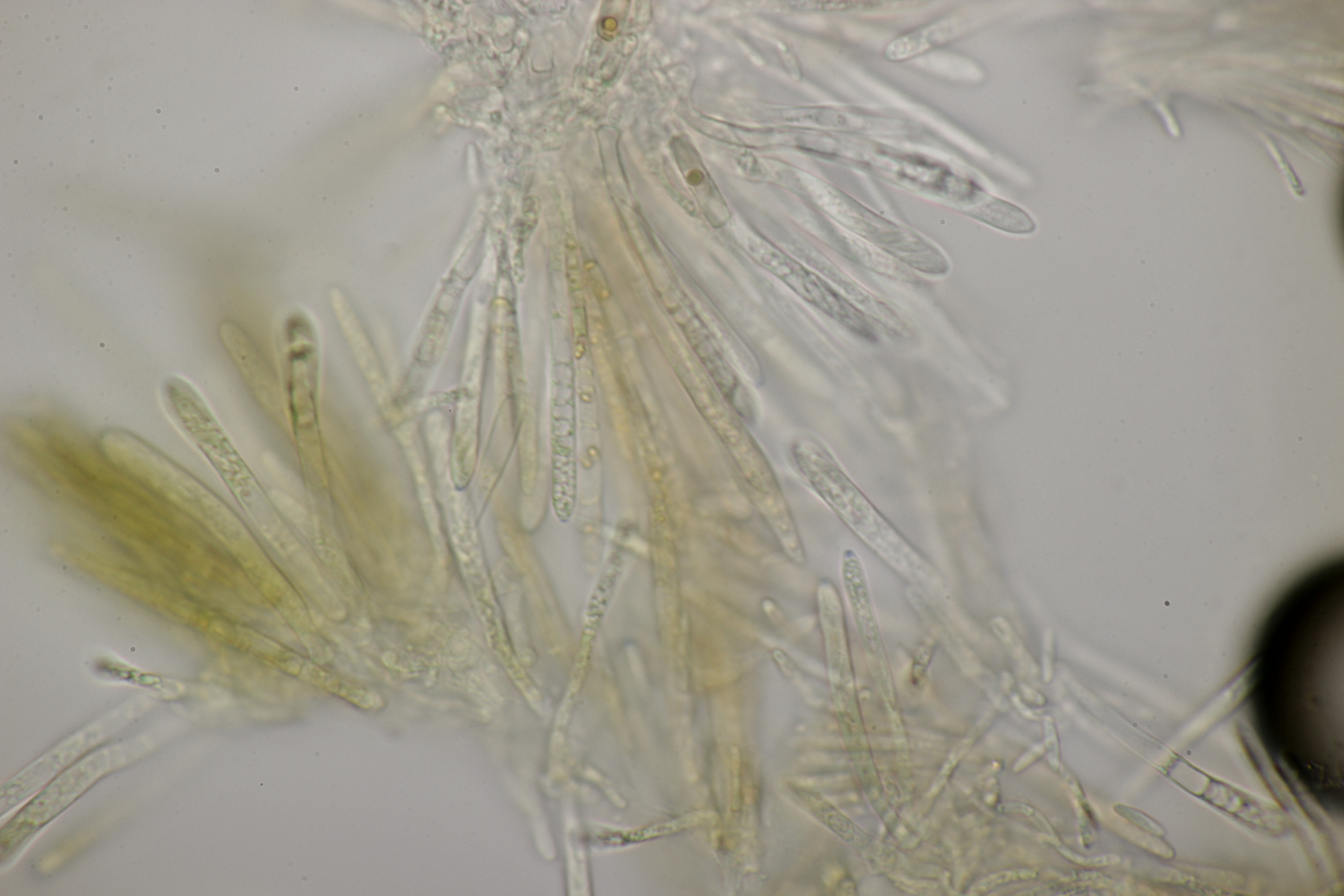 Du hast eine dieser "Scopuloides - Zystiden" (gibt es bei ähnlichen Gattungen nicht in der Form) sogar auf deinem Bild, und dazu noch ein paar Fragmente dieser Zystiden.