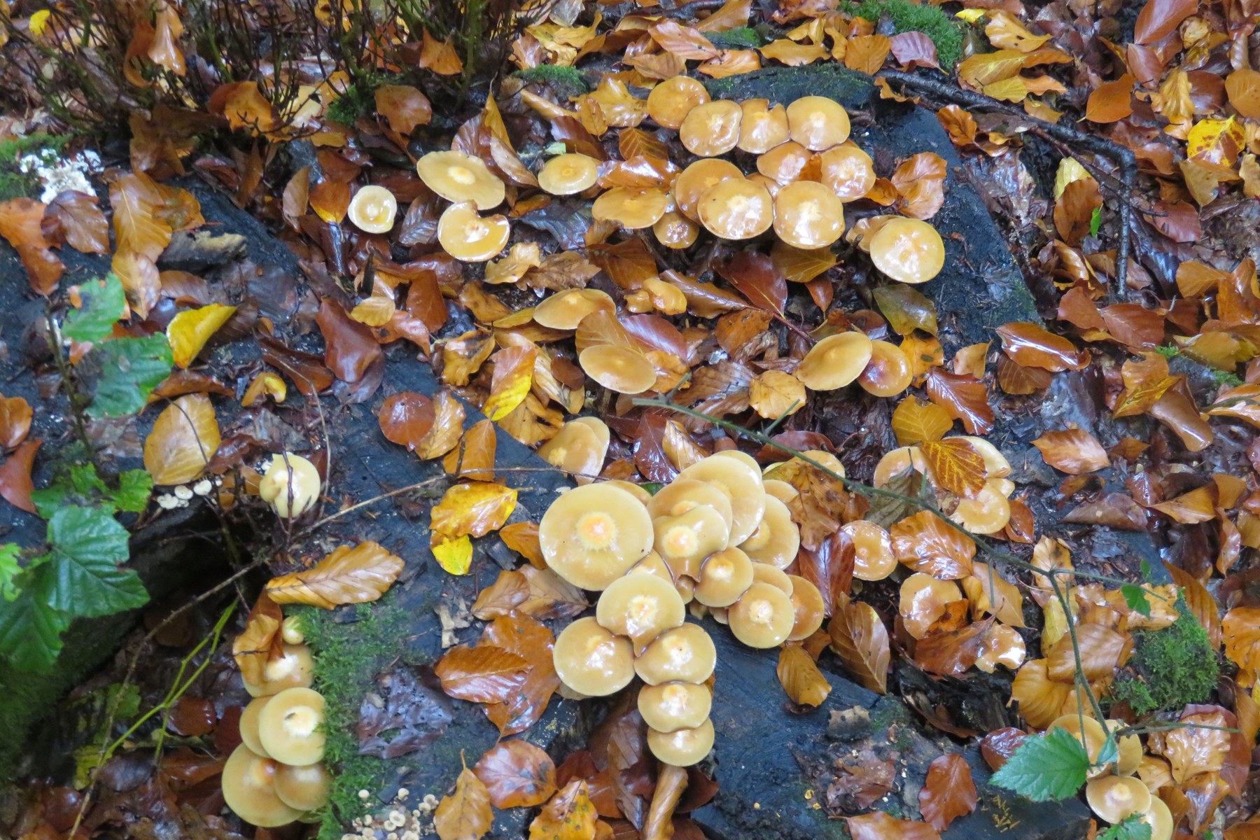Hallimasche waren immer wieder zu sehen, aber nicht sehr oft. Hier ein Bild vom ergiebsten Baumstumpf: