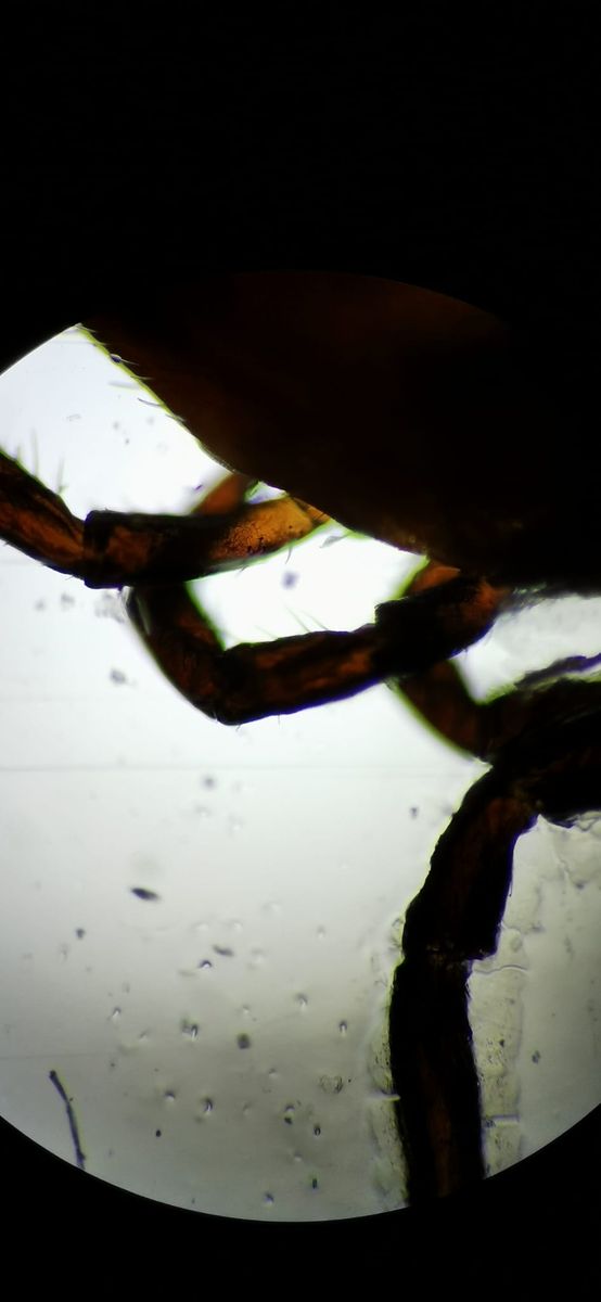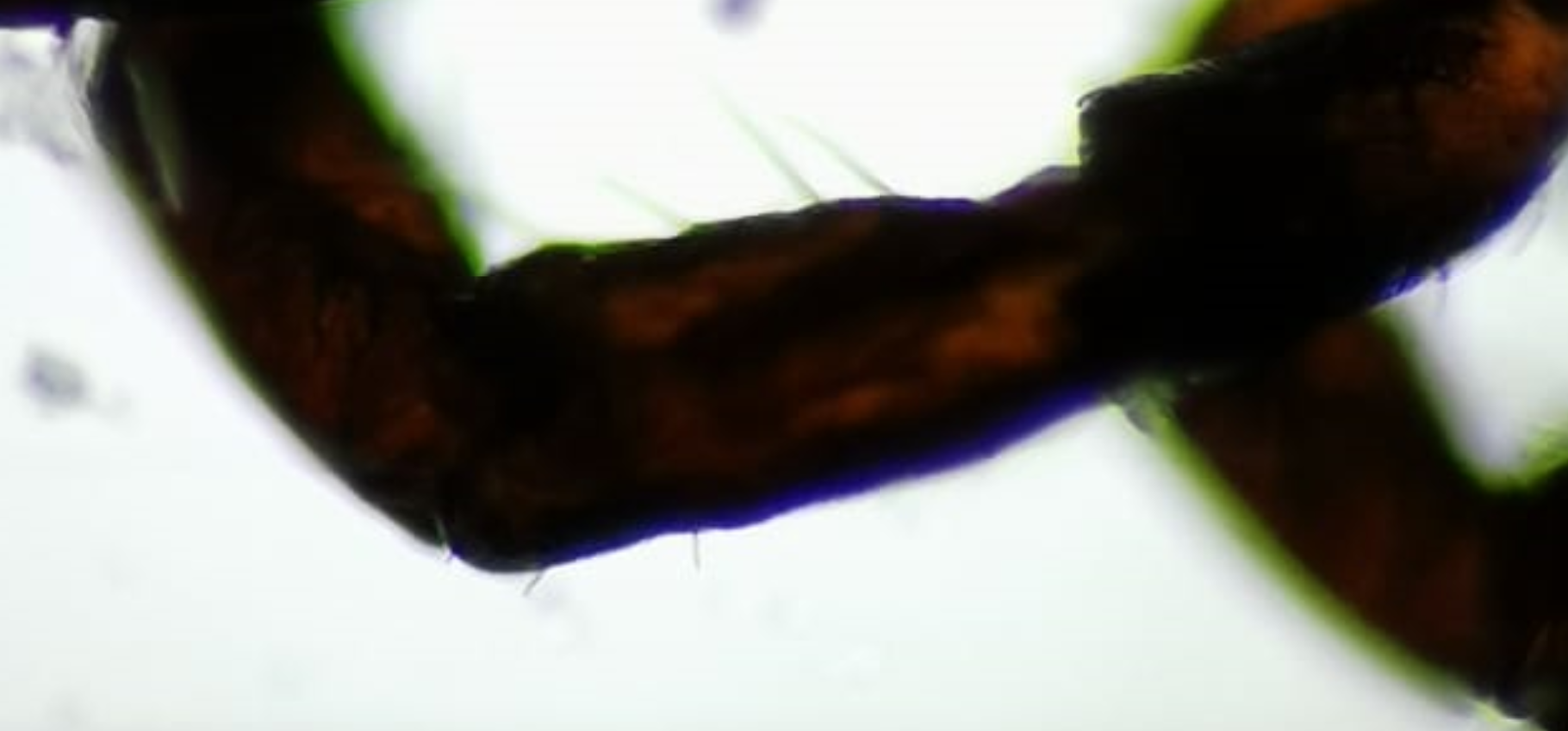 Als Beispielfoto liegt ein 1:1 - Ausschnitt von einem Bein einer Stubenfliege vor, aufgenommen mit dem 10er-Objektiv.