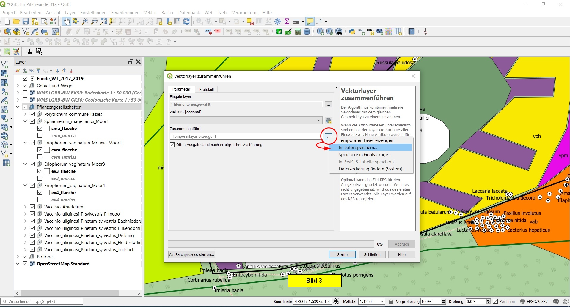 Nun noch das Projekt abspeichern als QGIS für Pilzfreunde 31.qgs.