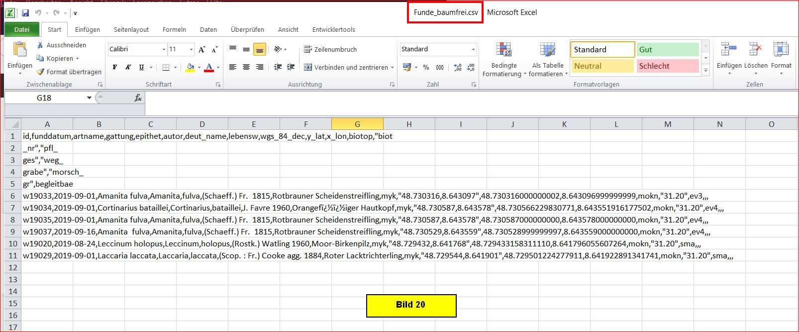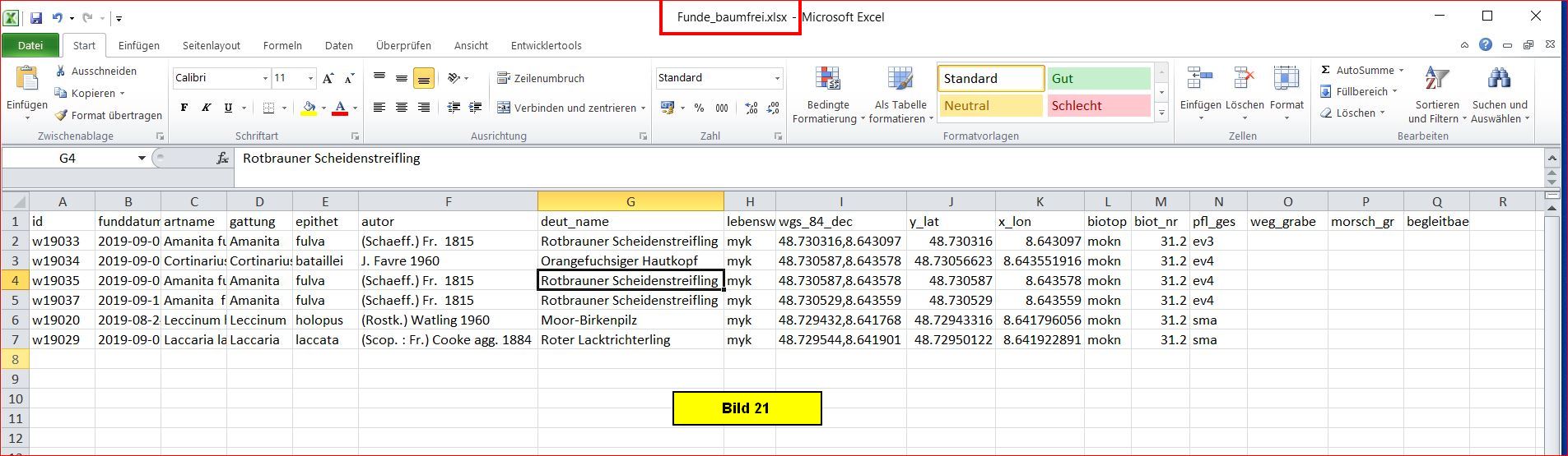 Diese Datei lässt sich mit einem geeigneten Programm in eine Excel-Datei überführen. Hier das Ergebnis für Funde_baumfrei.xlsx: