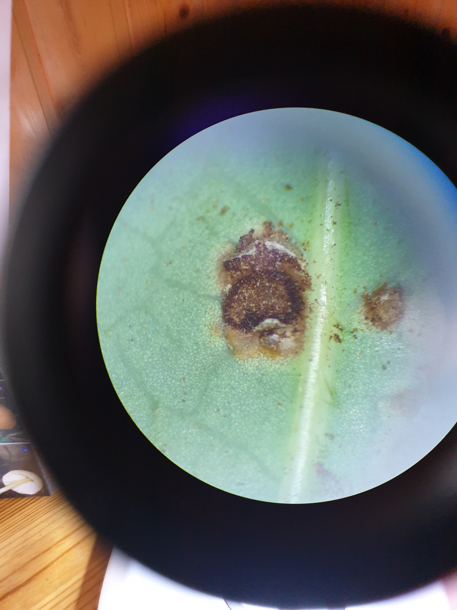 angeregt von Charlottes Bericht über ihre 3 Pilze auf Mahonie, hab ich auch mal so gefragt wer diese Pflanze im Garten hat und hab mir 3 Blättchen abschneiden lassen.