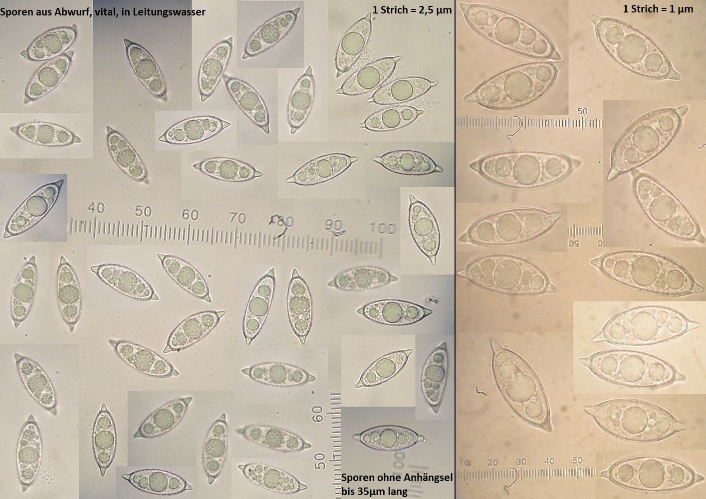 Die Sporen (mit drei Öltröpfchen) dürften leider noch nicht ausgereift sein.