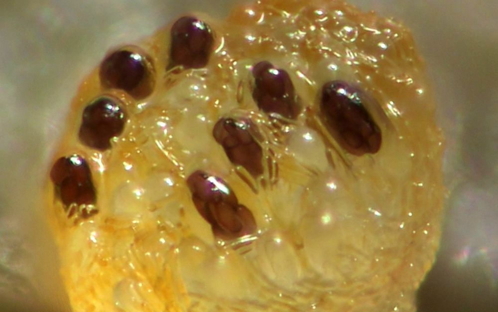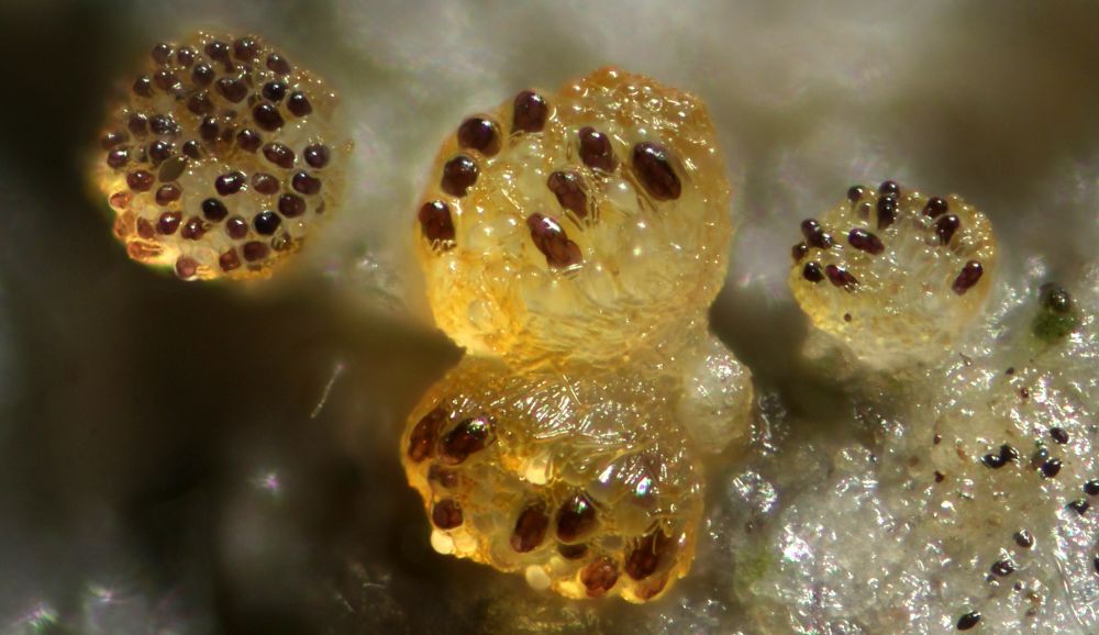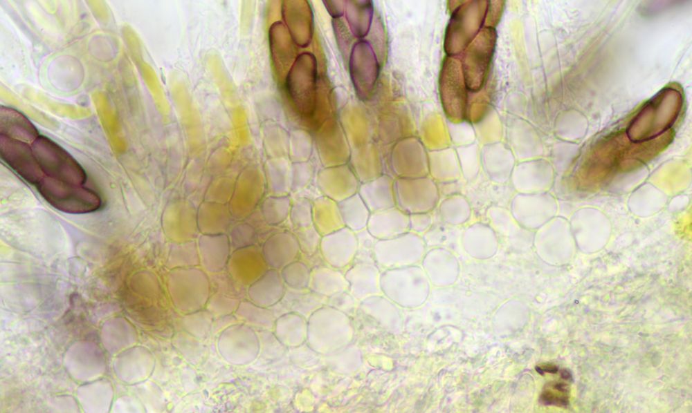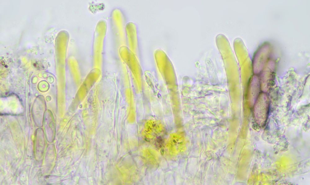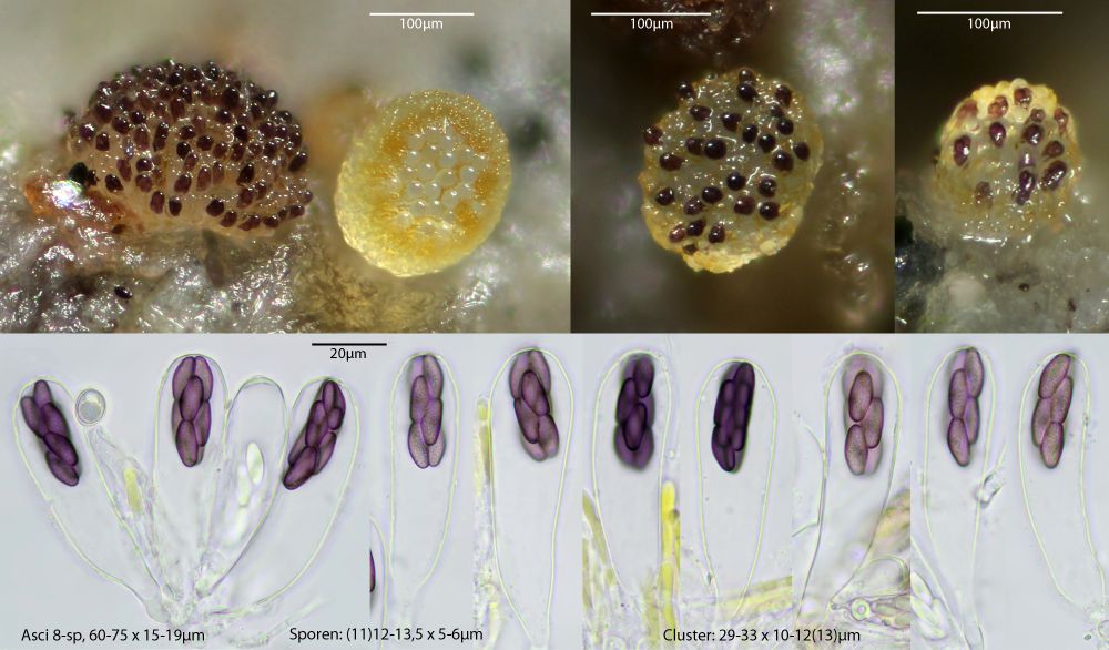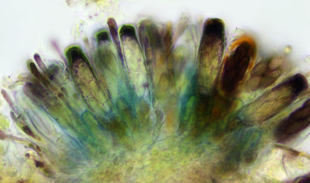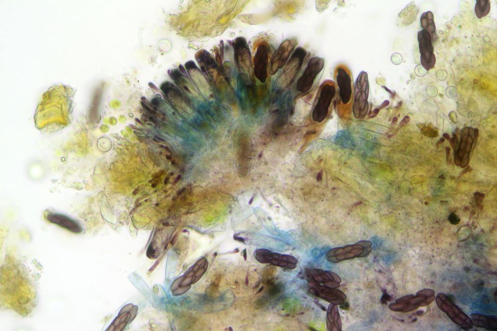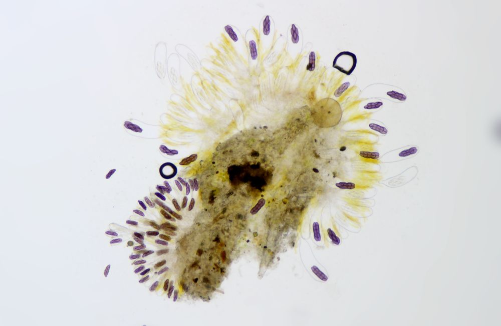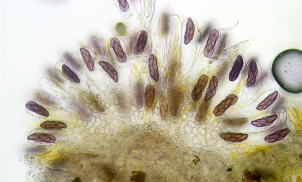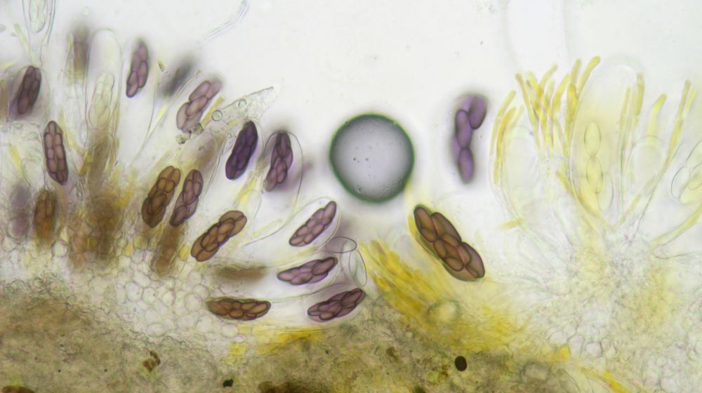 Gelbe Paraphysen machen die Zuordnung zur Sektion Saccobolus eindeutig. Sieht man aber auch makroskopisch schon durch die gelbe Farbe, die genau von diesen Paraphysen kommt.