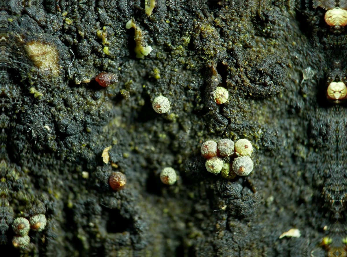 hier auf der Rinde von Esche, Frk. ca. 0,4 mm groß, zuerst ein schön nectriarot, dann wie hier blasser