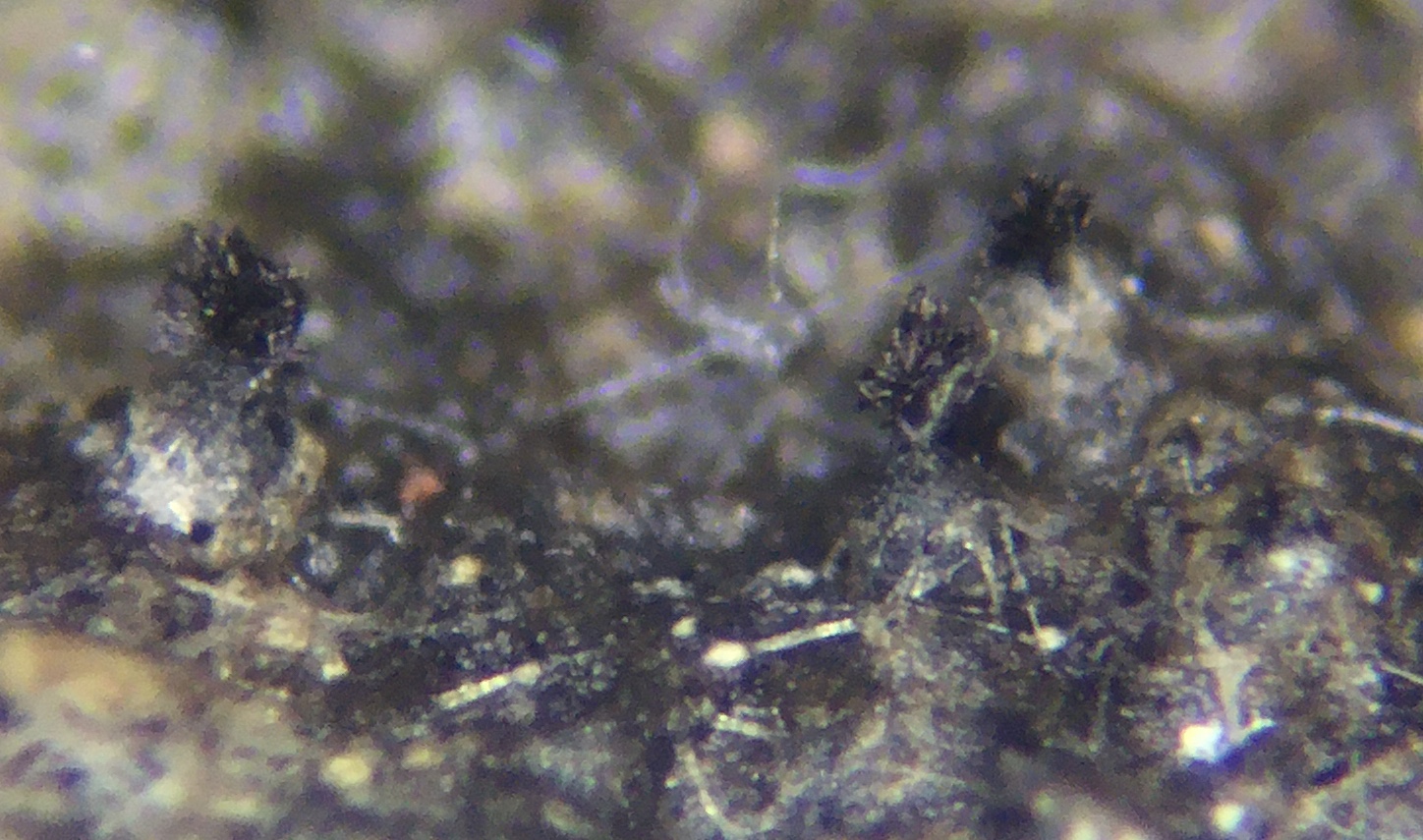 Hier noch ein Bild. Besser geht es leider nich. Die Perithecien sind sehr klein (0.1mm) und sehen aus wie winzige Ananas.