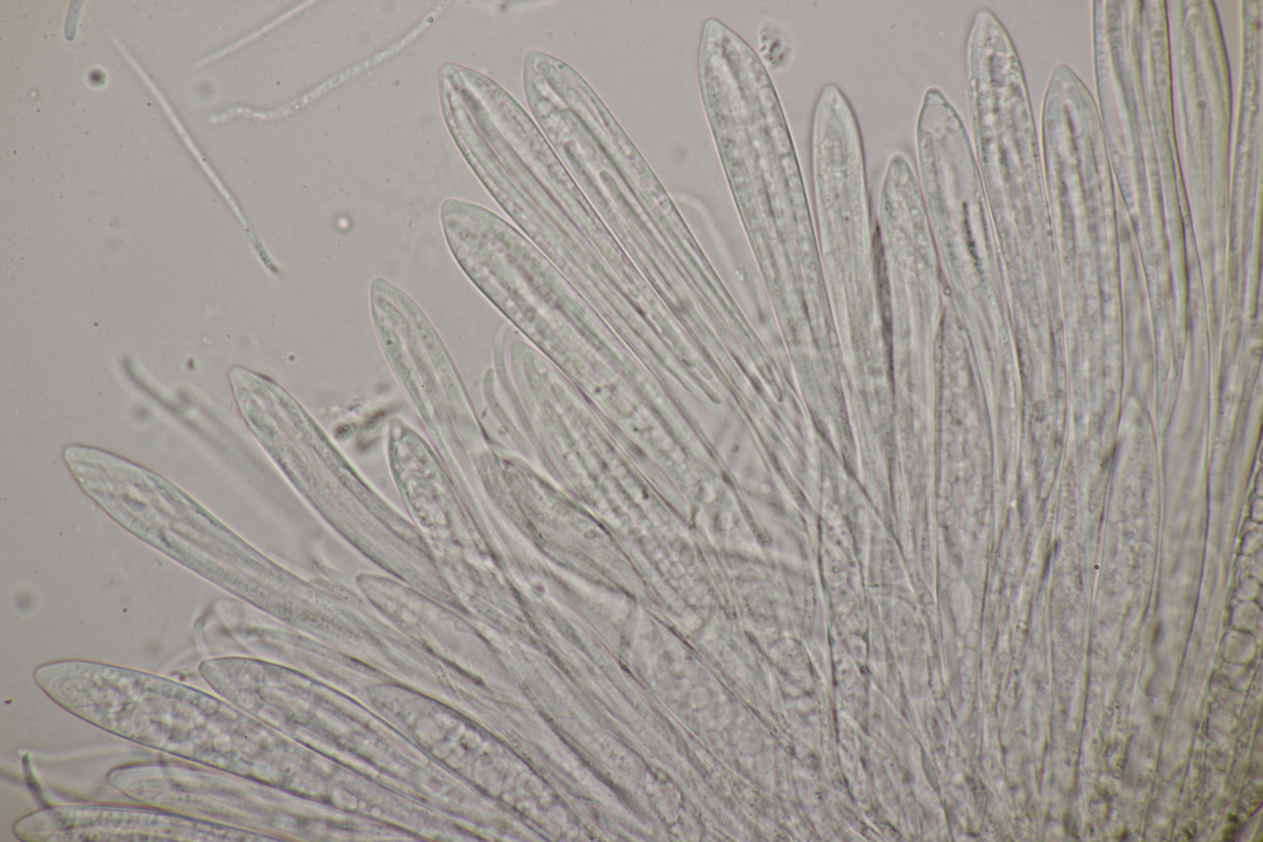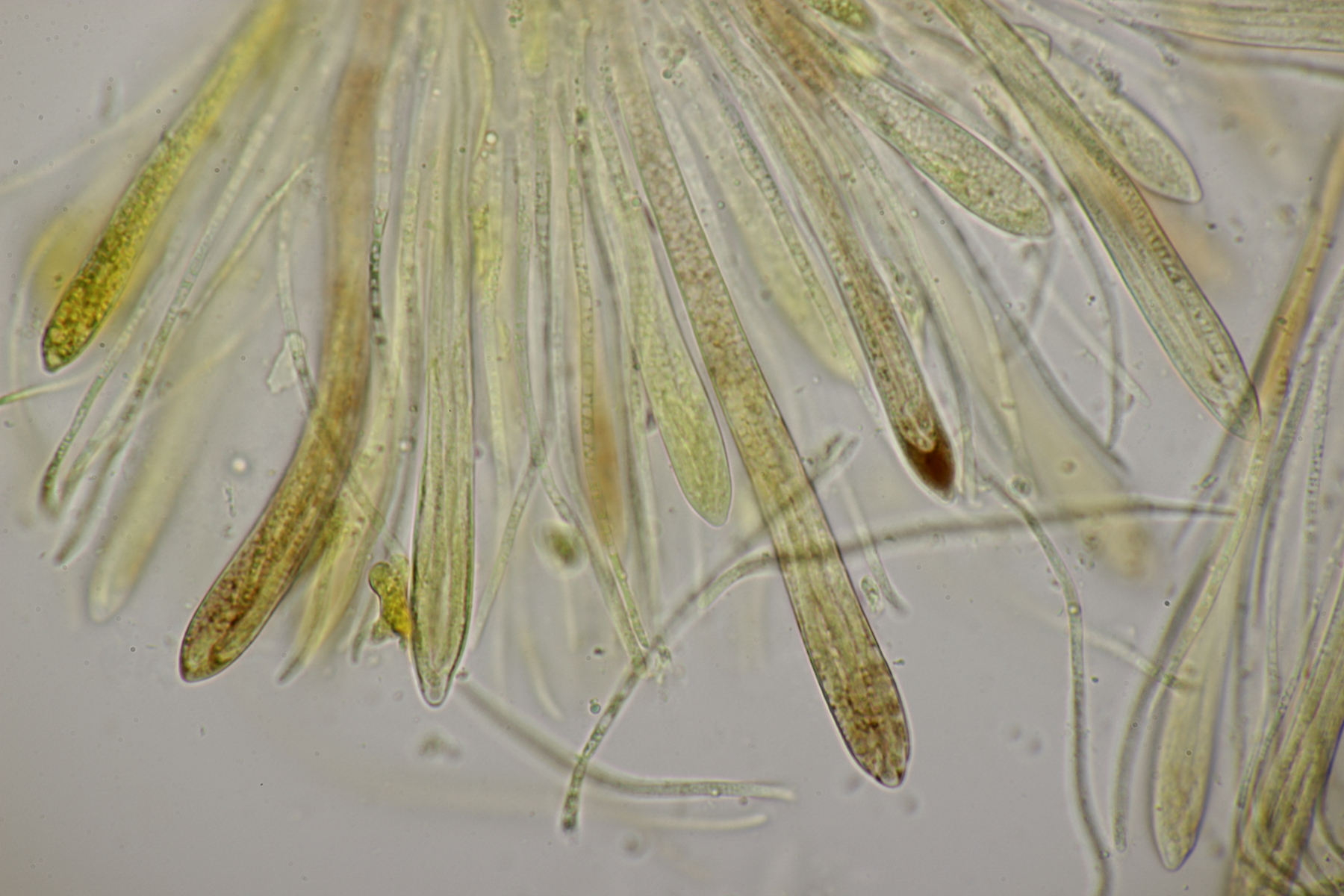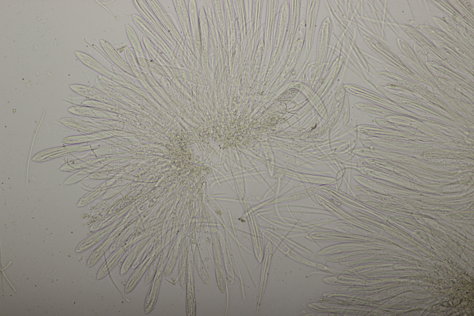 wenn man nicht mehr so viel nach draußen kommt, kann man sich auch mal etwas genauer mit den altbekannten Arten beschäftigen und ein Blatt von Acer pseudoplatanus mit Rhytisma acerinum in die feuchte Kammer legen, bis sich die Spalte öffnen. Dann kommt man auch gut ans saftige Innere und erhält hübsche mikroskopische Einsichten: