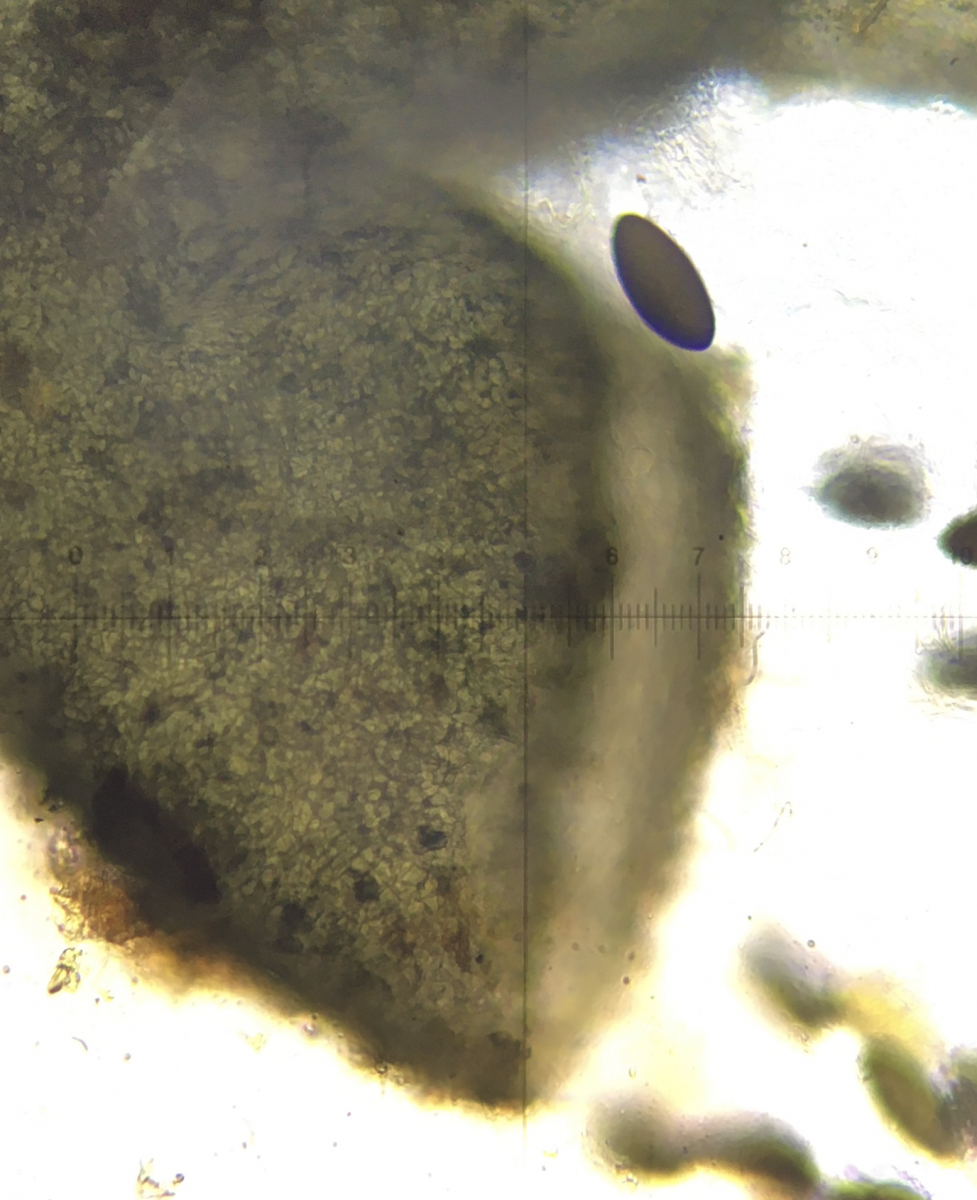Könnte das Arnium cirriferum sein? Keulenförmiges Perithecium 1mm lang, Ascos 200µm lang, Sporen 42-53µm x 16-20µm, Cauda bis zu 15µm breit an der Baisis. Kein Apikalring. Ich sehe allerdings keine Keimpore. Auf Weißwedelhirschdung von Kalifornien.