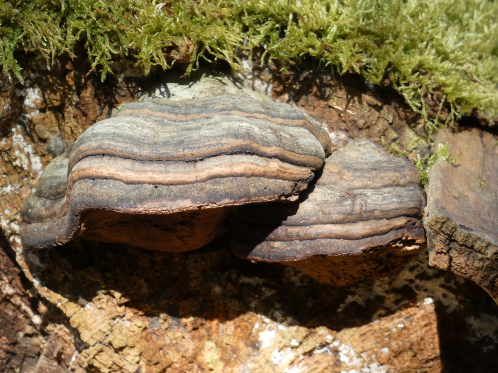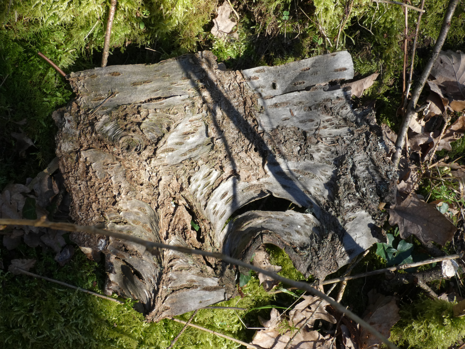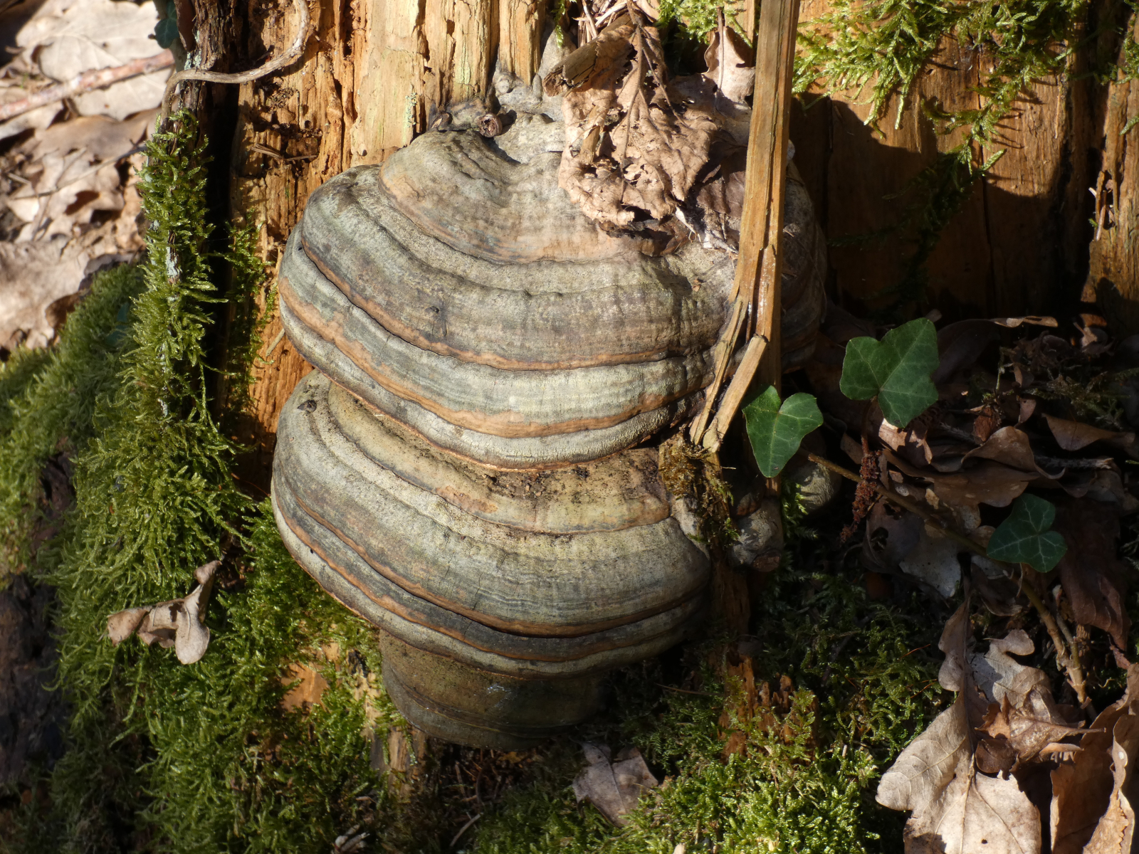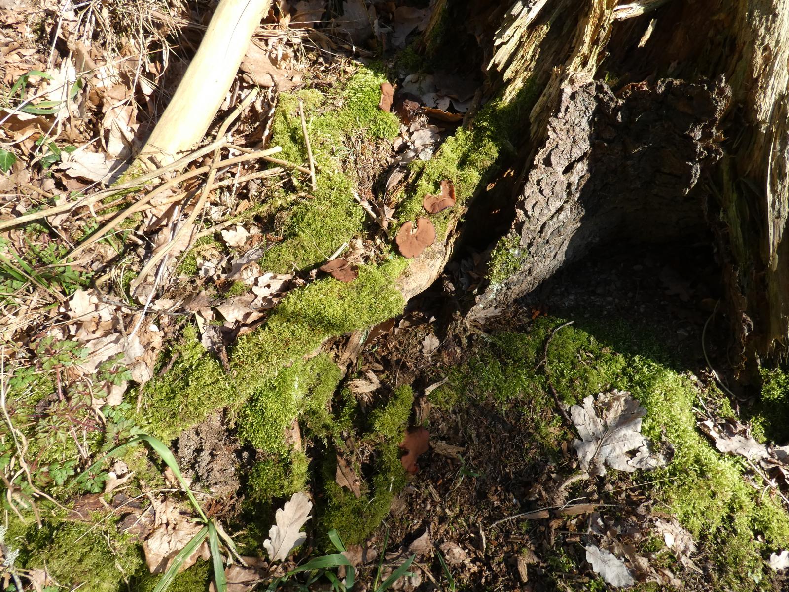 Gestern, im schönsten Sonnenschein in einem Wald in unserer NĂ€he, machte ich zwei schöne Funde: zuerst einen gefallenen Baumstamm und dessen Stumpf, wundervoll besetzt mit - ich glaube - ZunderschwĂ€mmen. Korrigiert mich bitte, wenn ich falsch liege! Diese Fotos machte Mr. Kagi fĂŒr mich.