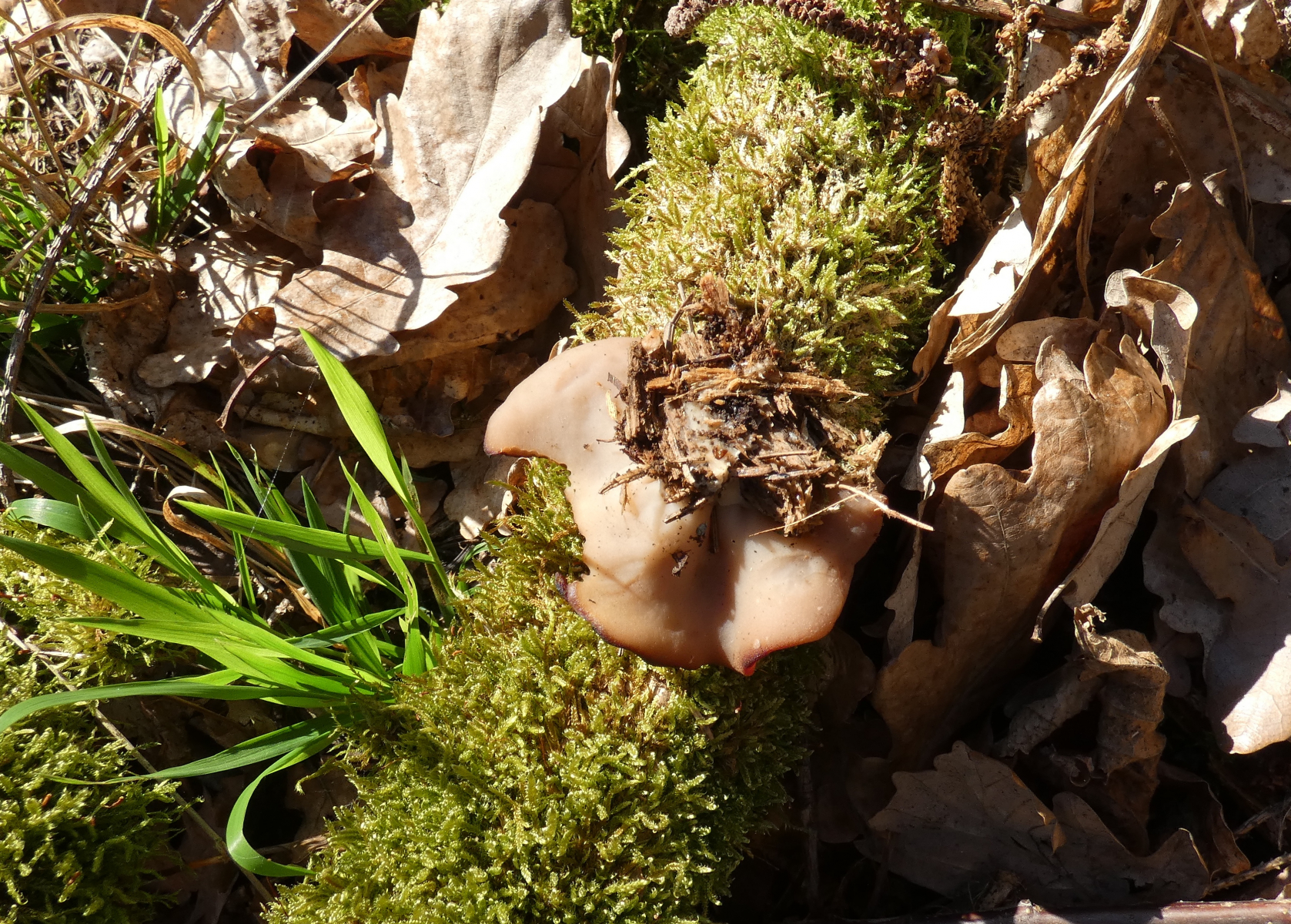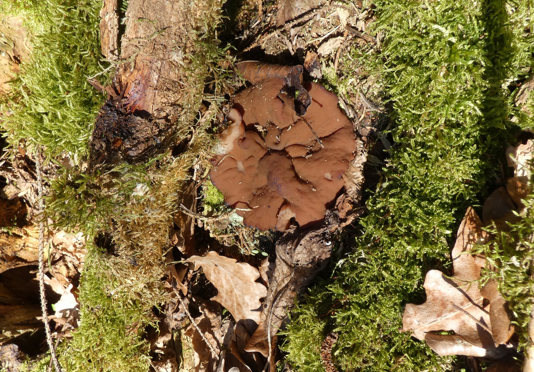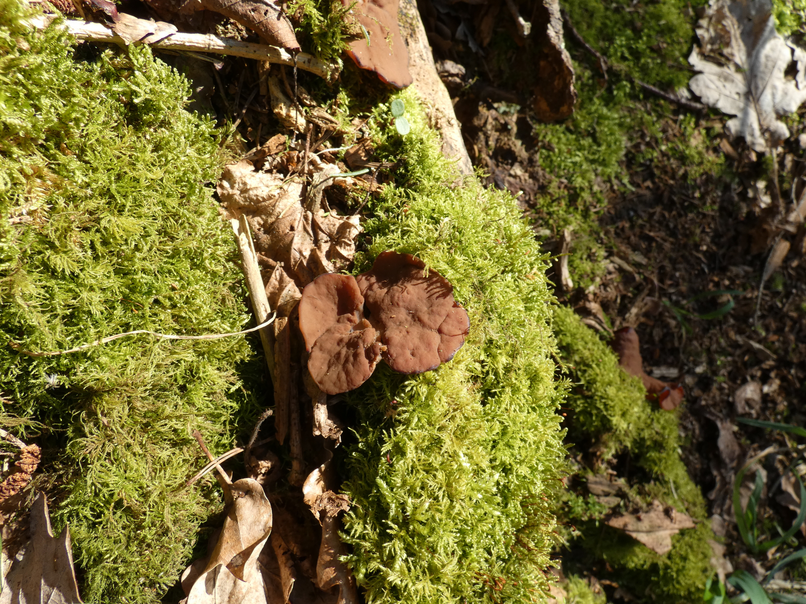Vom Weg aus erspĂ€hte ich ein paar Meter den Berg hoch "verdĂ€chtige" rotbraune, verkrumpelte Scheibchen...könnten das Scheibenlorcheln sein? Gleich bin ich mit der Kamera den Berg raufgekraxelt und habe Fotos gemacht; die Pilzchen hielten vorbildlich still, und es war schön hell, also gelangen mir ausnahmsweise mal einigermaĂen scharfe Fotos!