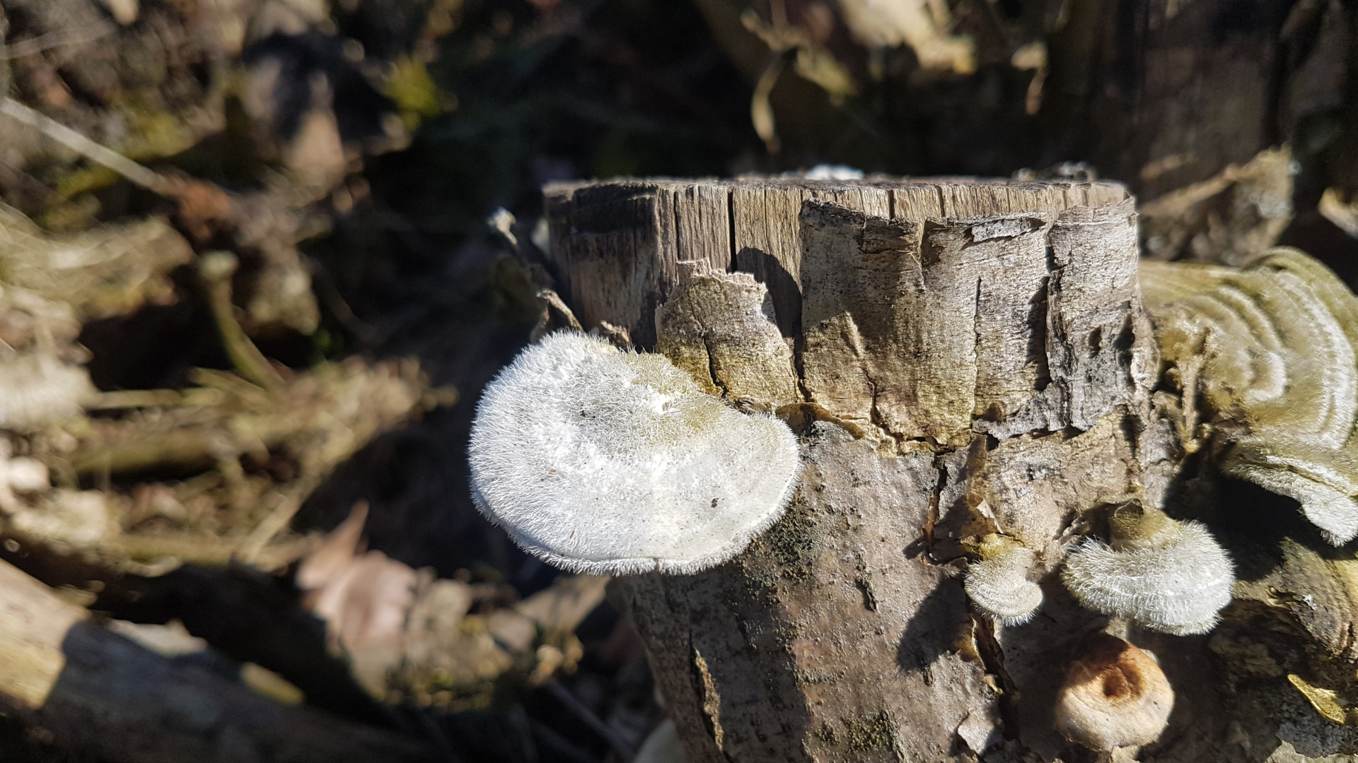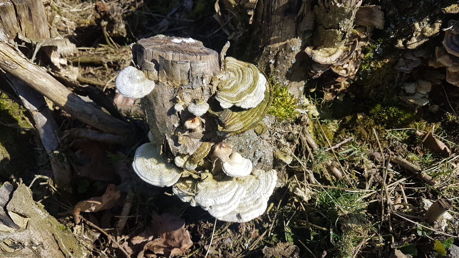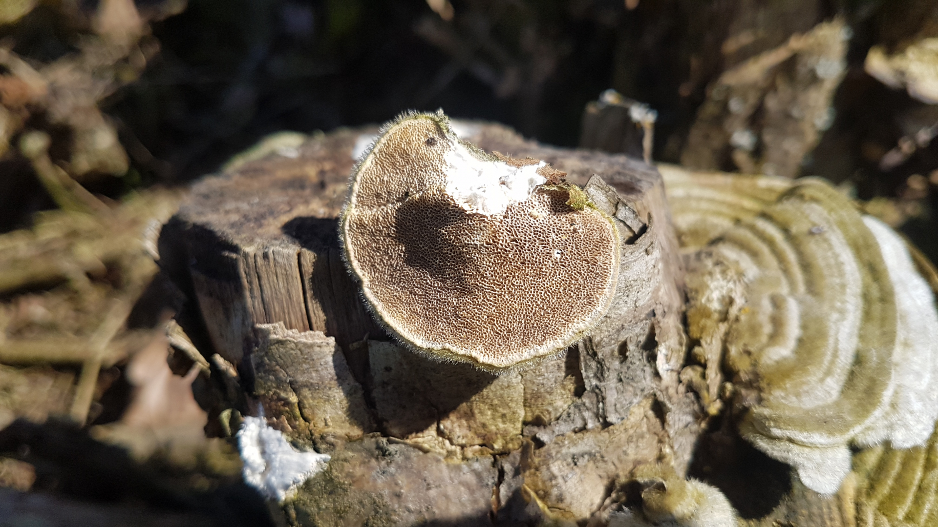 habe heute an einem Weidenstumpf (höchstwahrscheinlich) neben diversen Schmetterlings-Trameten diese hier gefunden. Auffällig war der süßliche Geruch, irgendwas zwischen Marzipan und Lakritz, darum dachte ich an die Anis-Tramete?