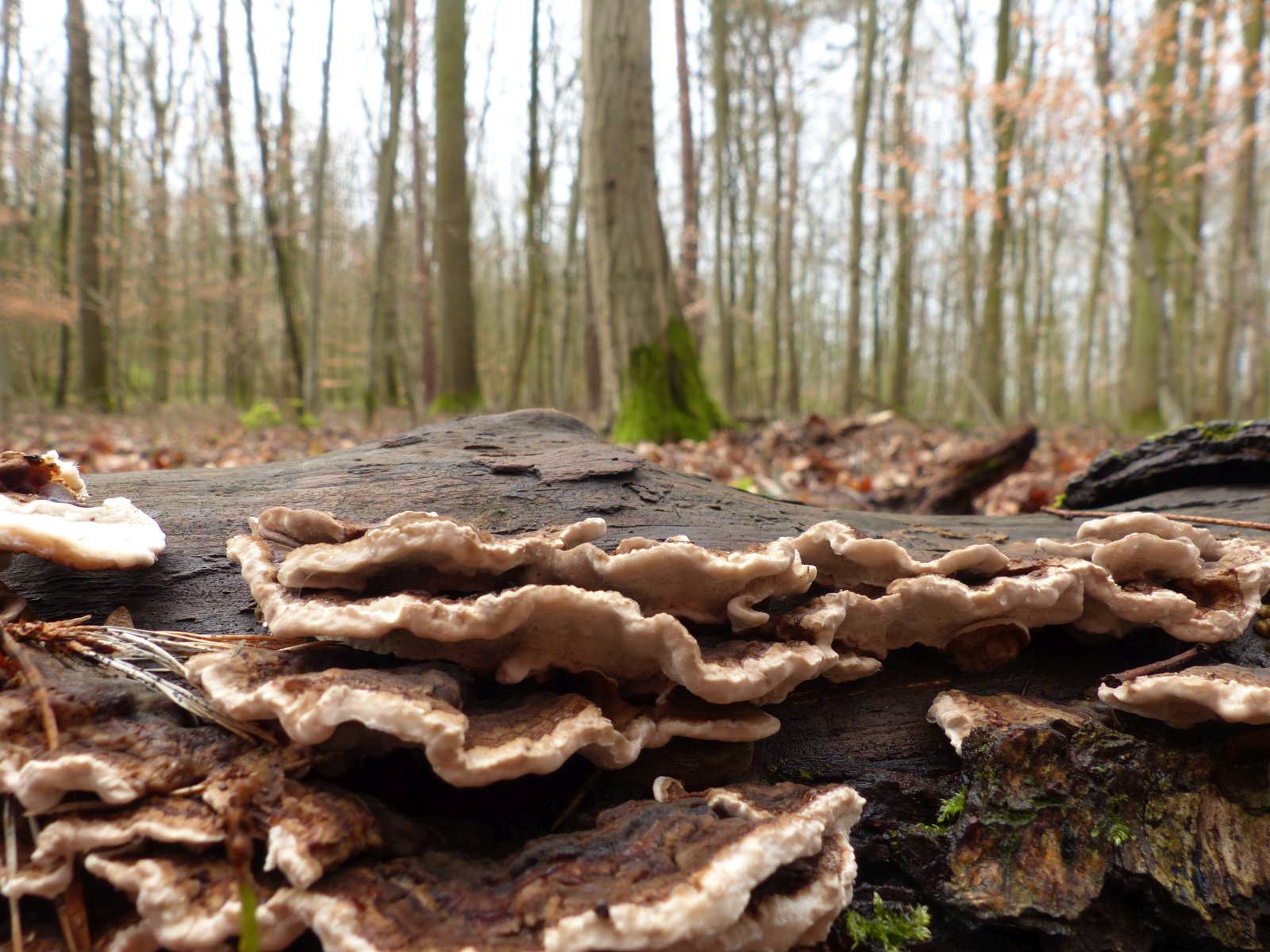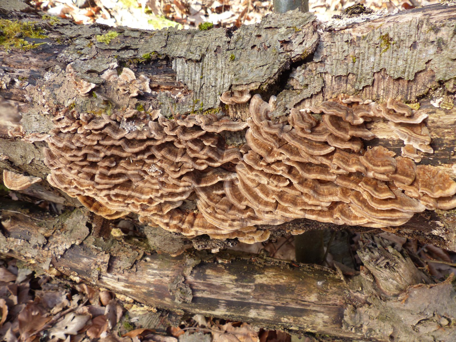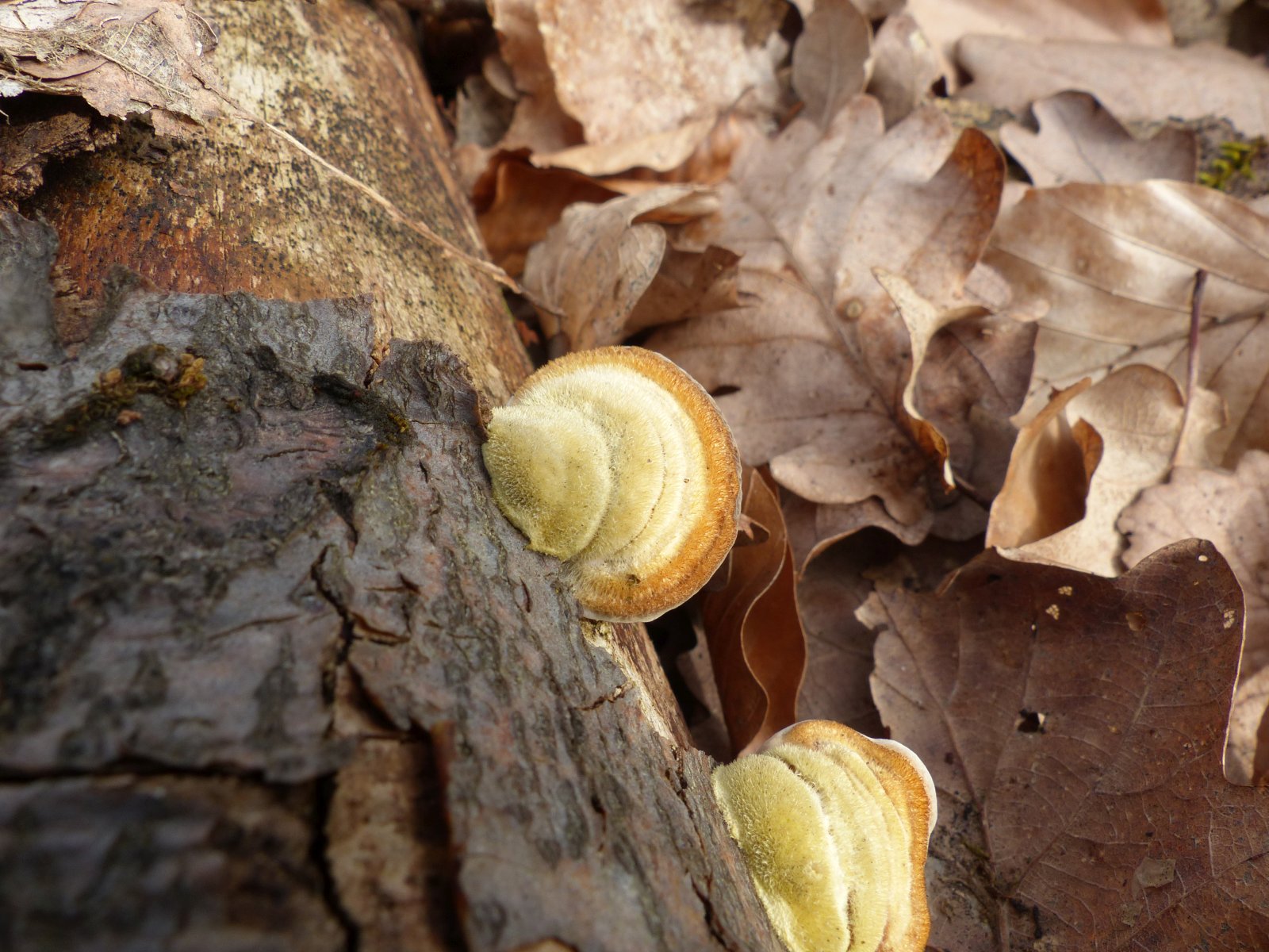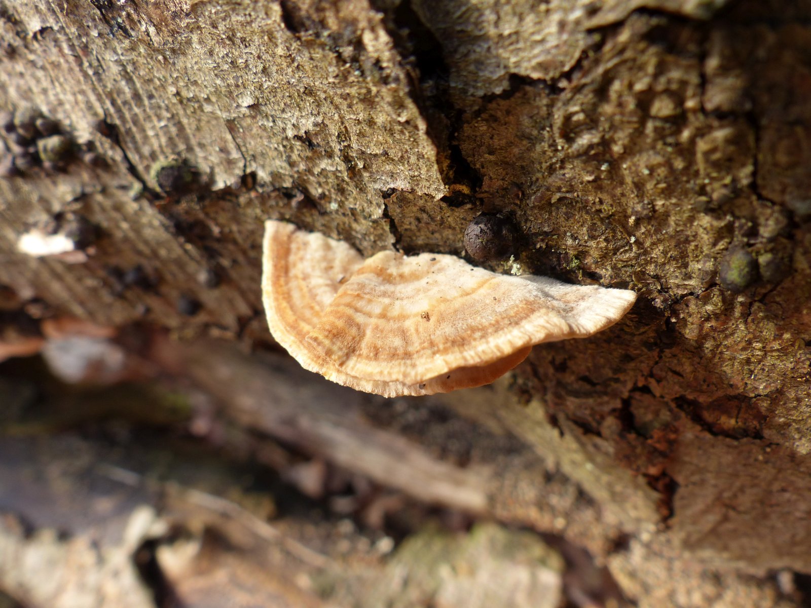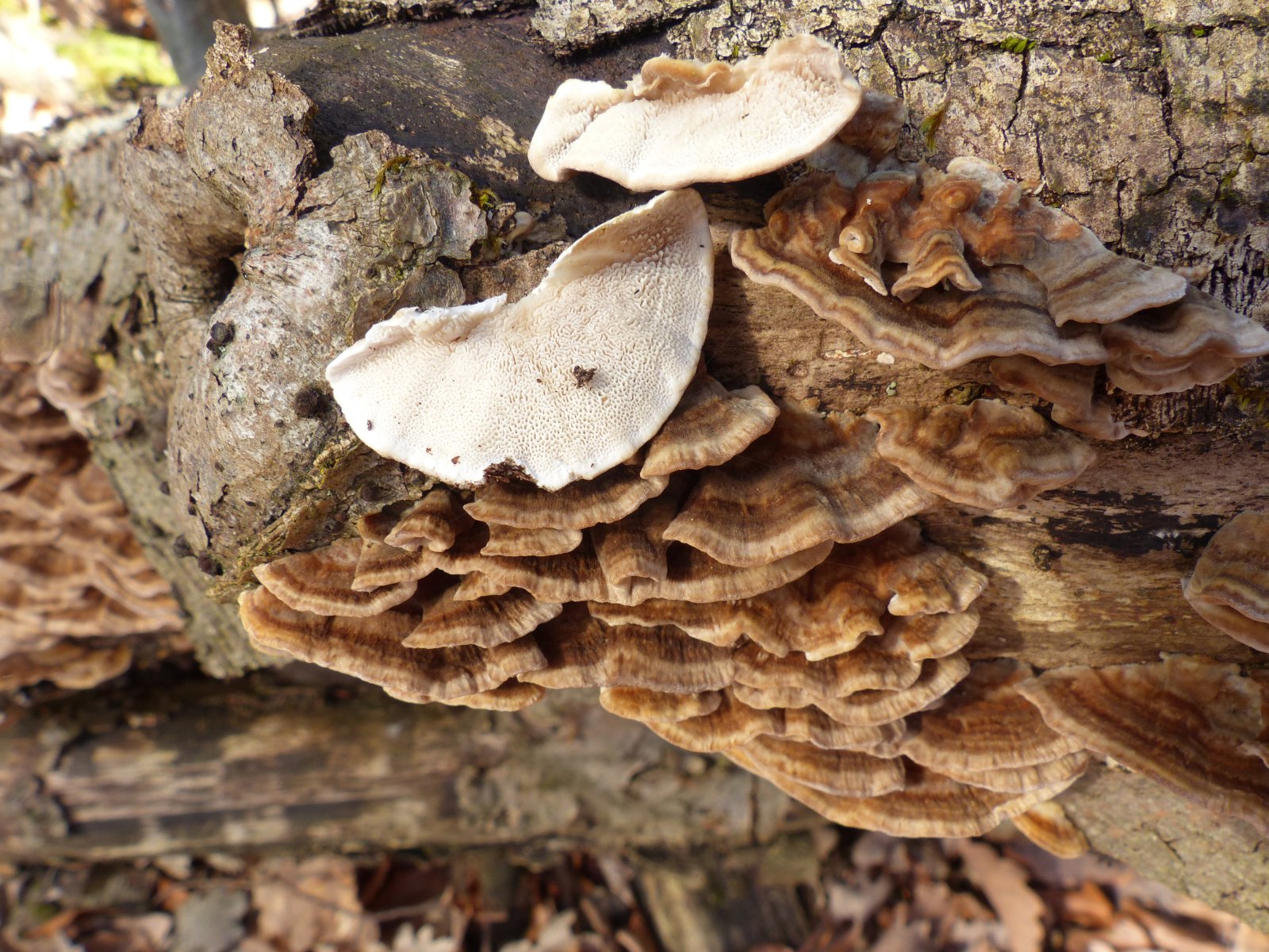 Hier denke ich an Zonentramete (Trametes occhracea).