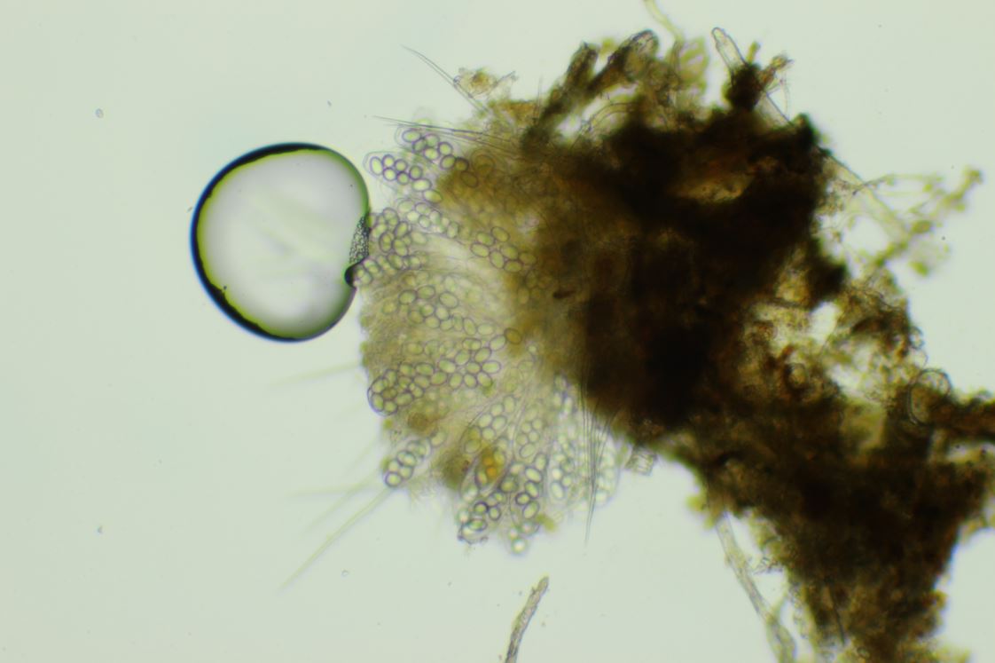 Einzelexemplar von gerade mal 0.2mm im Durchmesser. Keine weiteren Fruchtkörper entdeckt.