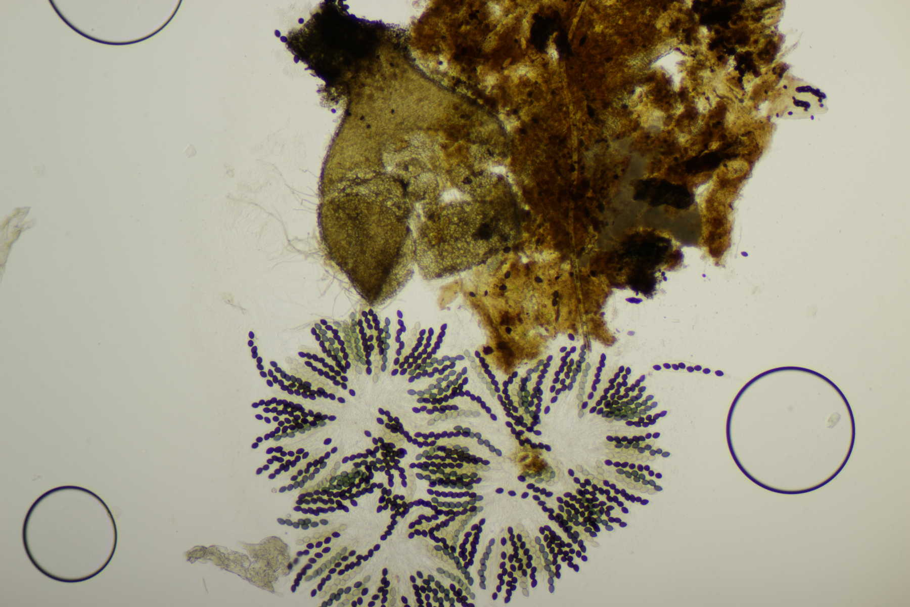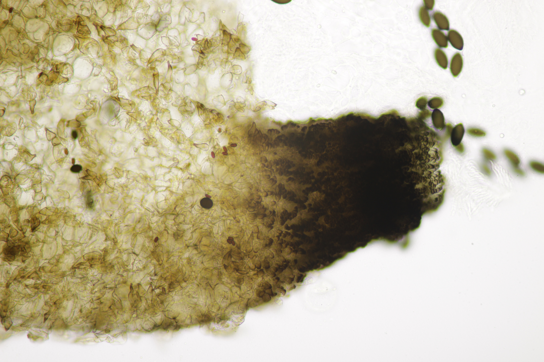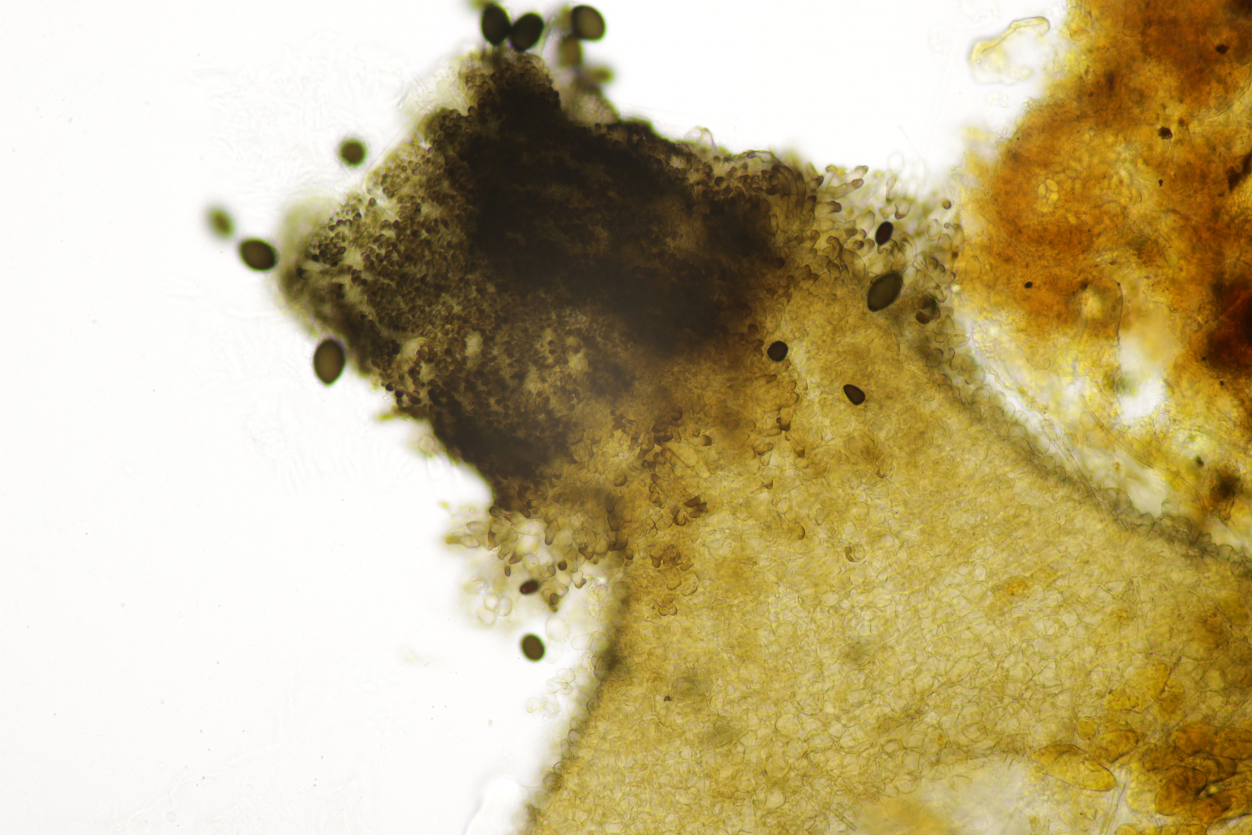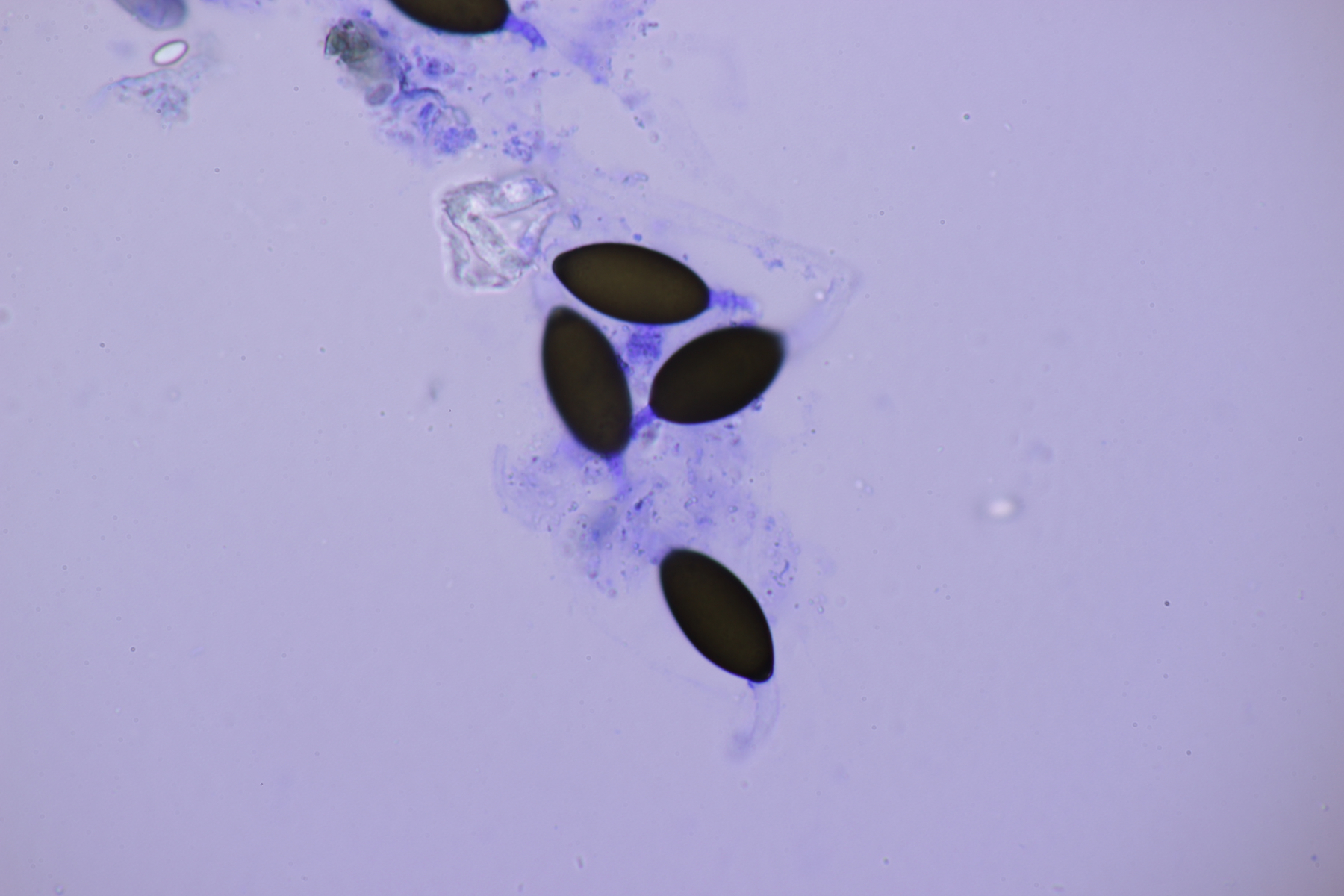 Fund Nummer 1 habe ich schon vor zwei Tage gemacht. Leider habe ich die Sporen da nicht mit Tinte angefärbt, entsprechend ist da zum Gezumpel an den Sporen wenig zu sagen. Sporengröße (20-22) µm x (13-14) µm.