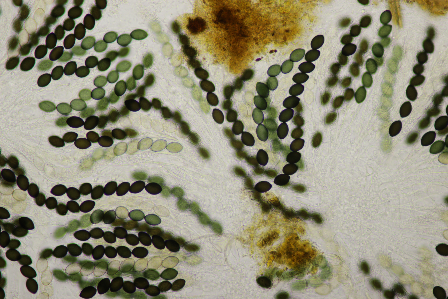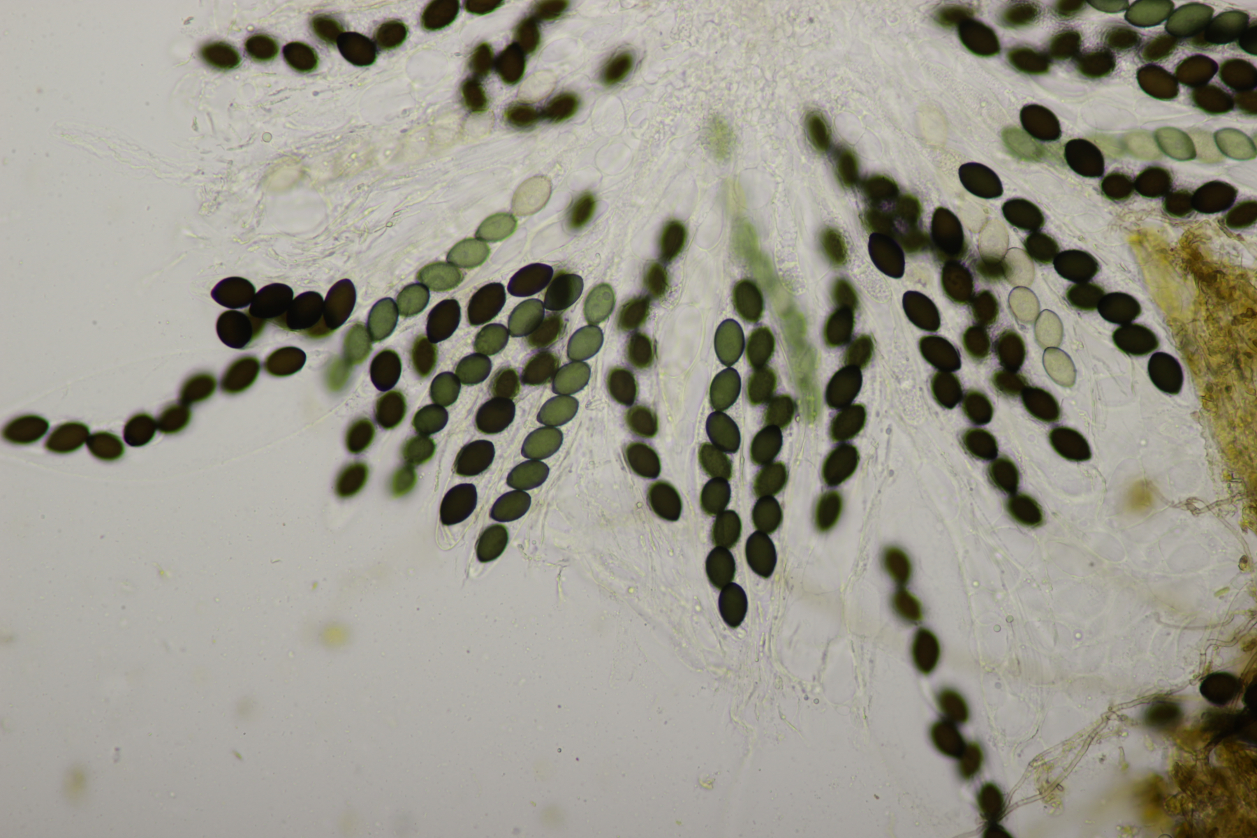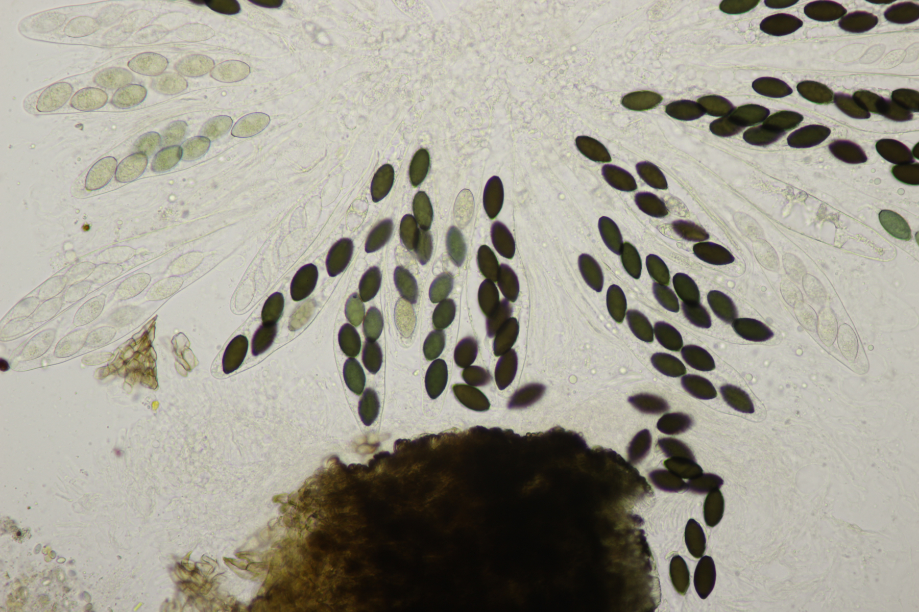 Und Nummer 3, ebenfalls von heute. (23-26) µm x (12-14) µm, also schon größer als bei den beiden anderen Funden. Außerdem waren die Asci teilweise auch biseriat. Eventuell S. conicum?