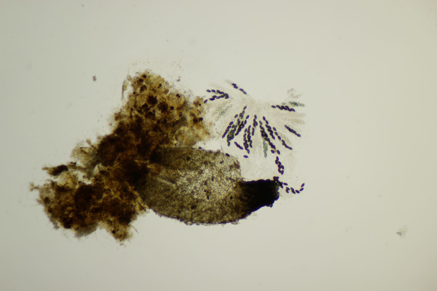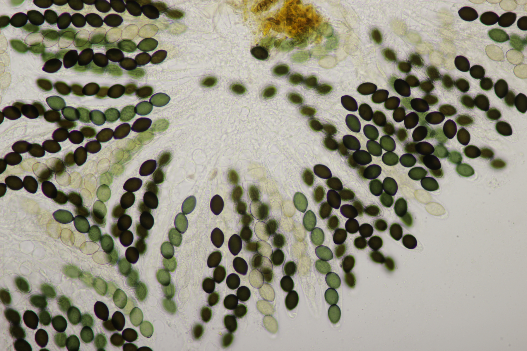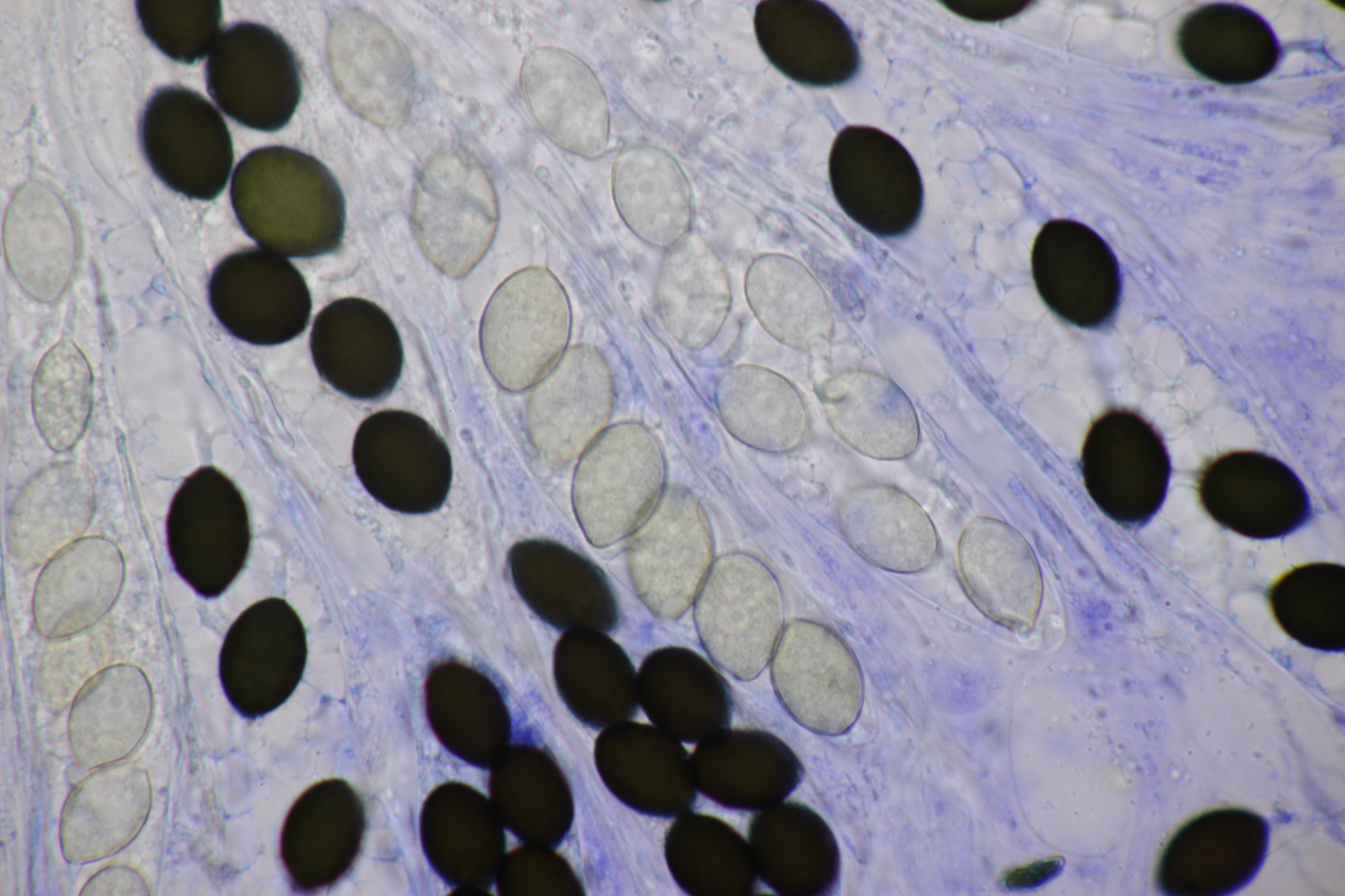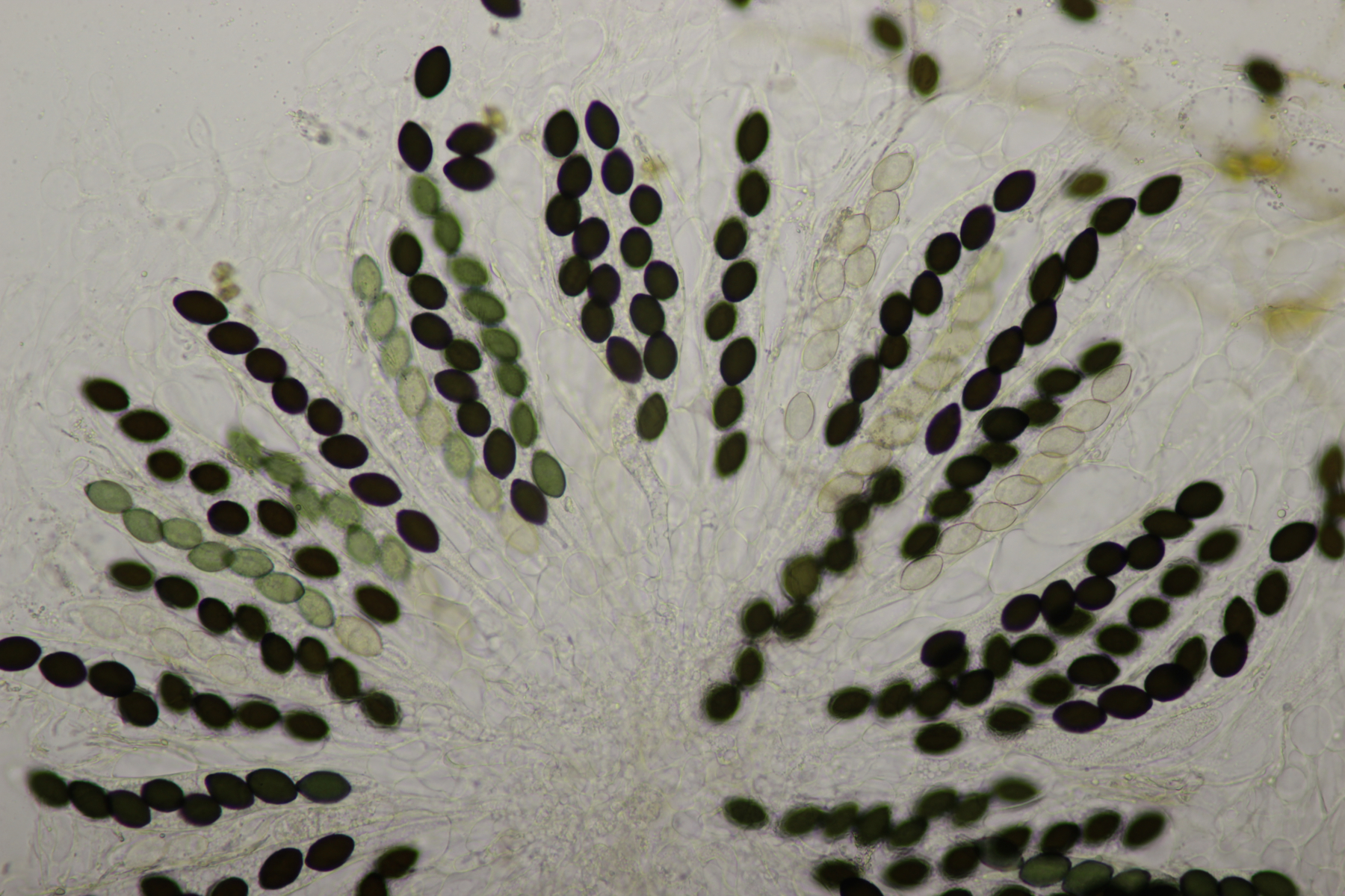 Und Nummer 3, ebenfalls von heute. (23-26) µm x (12-14) µm, also schon größer als bei den beiden anderen Funden. Außerdem waren die Asci teilweise auch biseriat. Eventuell S. conicum?