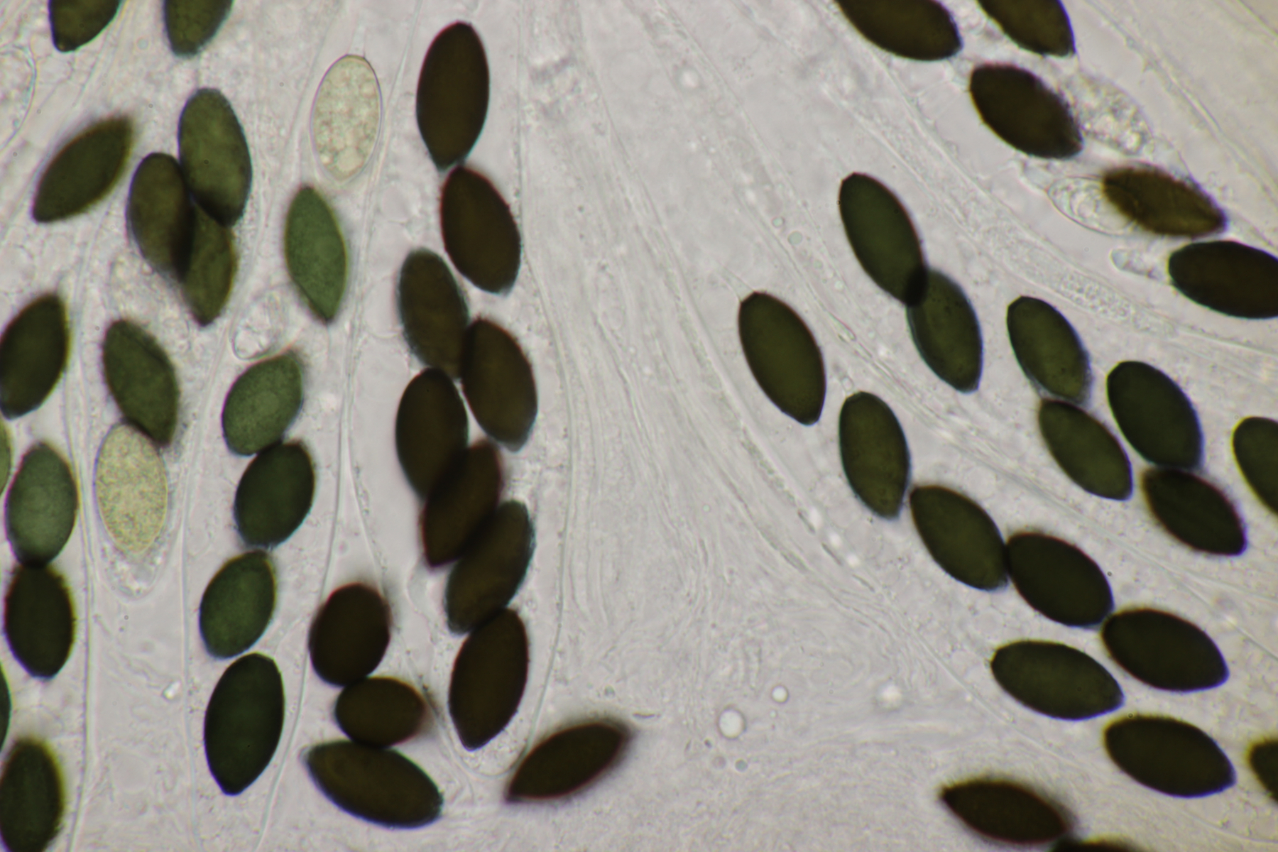 Und Nummer 3, ebenfalls von heute. (23-26) µm x (12-14) µm, also schon größer als bei den beiden anderen Funden. Außerdem waren die Asci teilweise auch biseriat. Eventuell S. conicum?