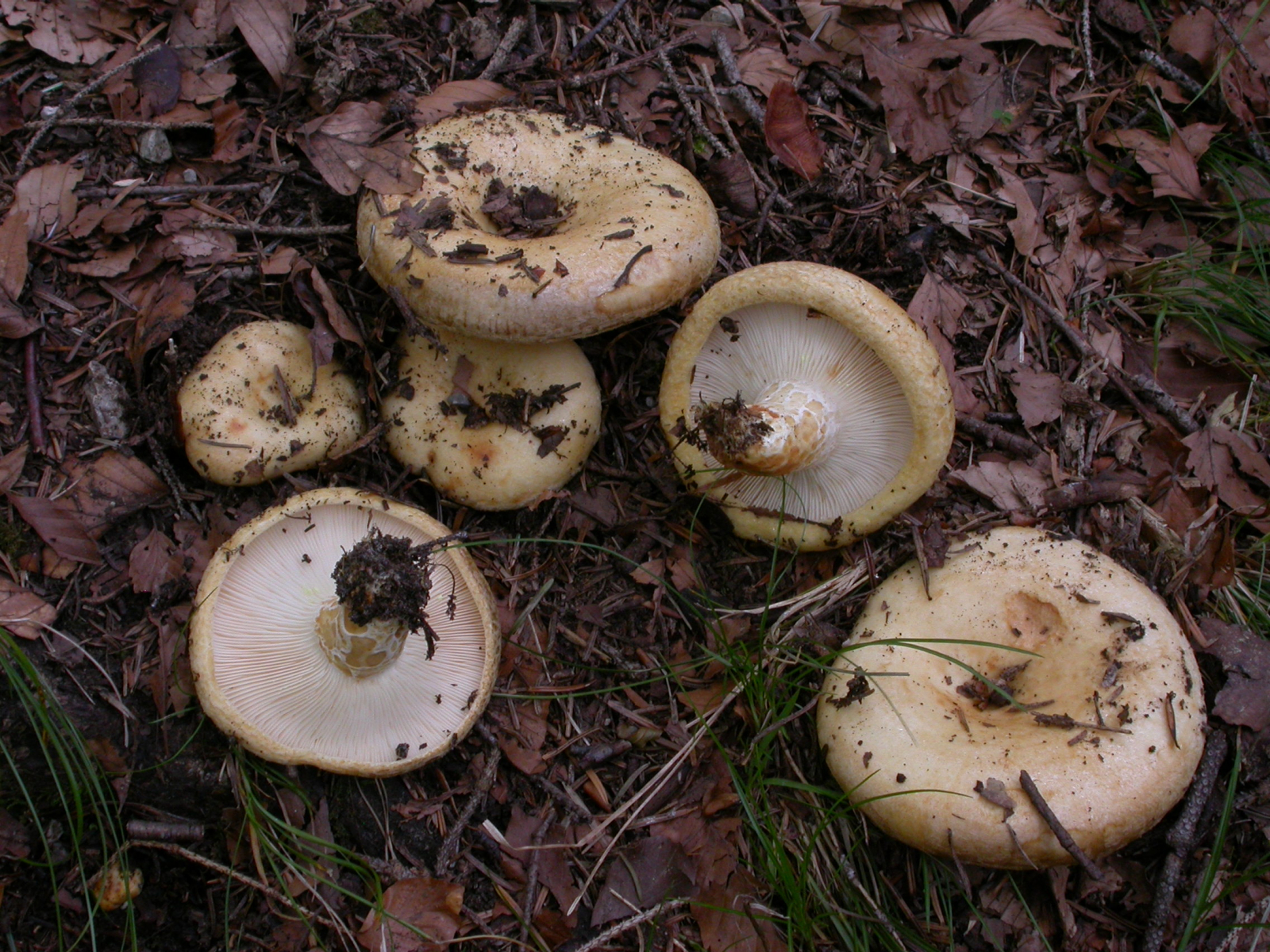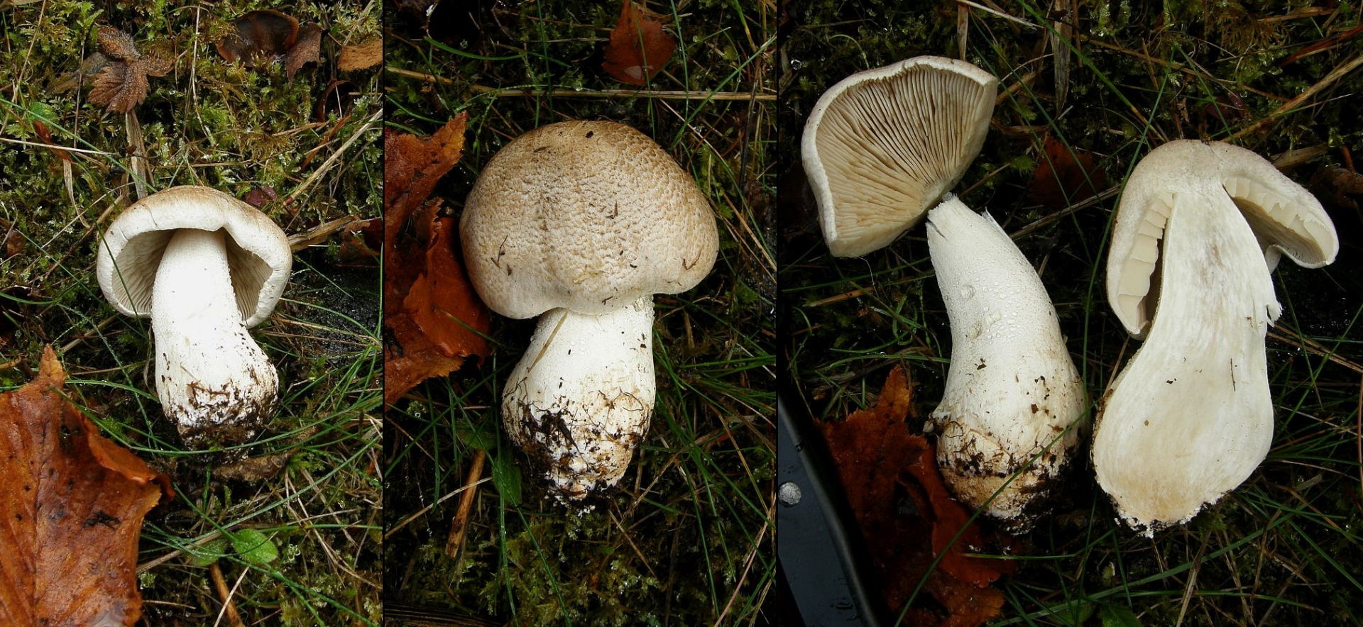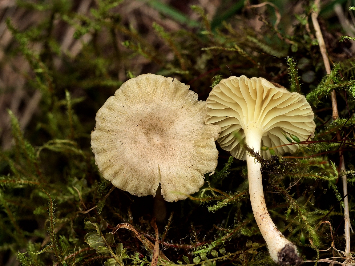 Lactarius glutinopallens / albocarneus, der Graublasse Milchling, ist neben dem Wirt und den unauffälligen Farben durch seine extreme Schleimbildung gekennzeichnet.