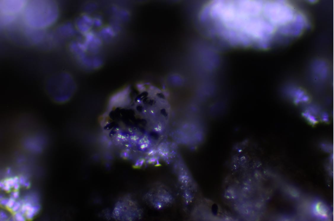 - Cluster; 40-47 x 15-17 mü. von auffällig, gelatinöser Membran umhüllt.