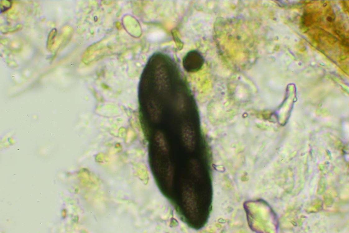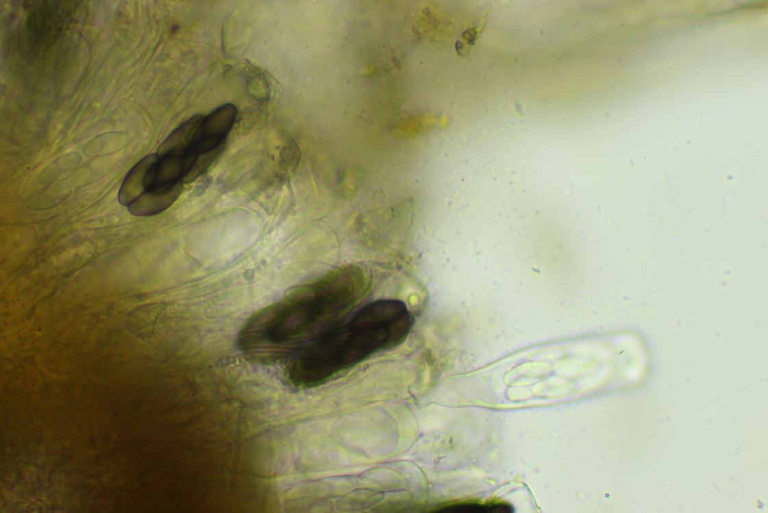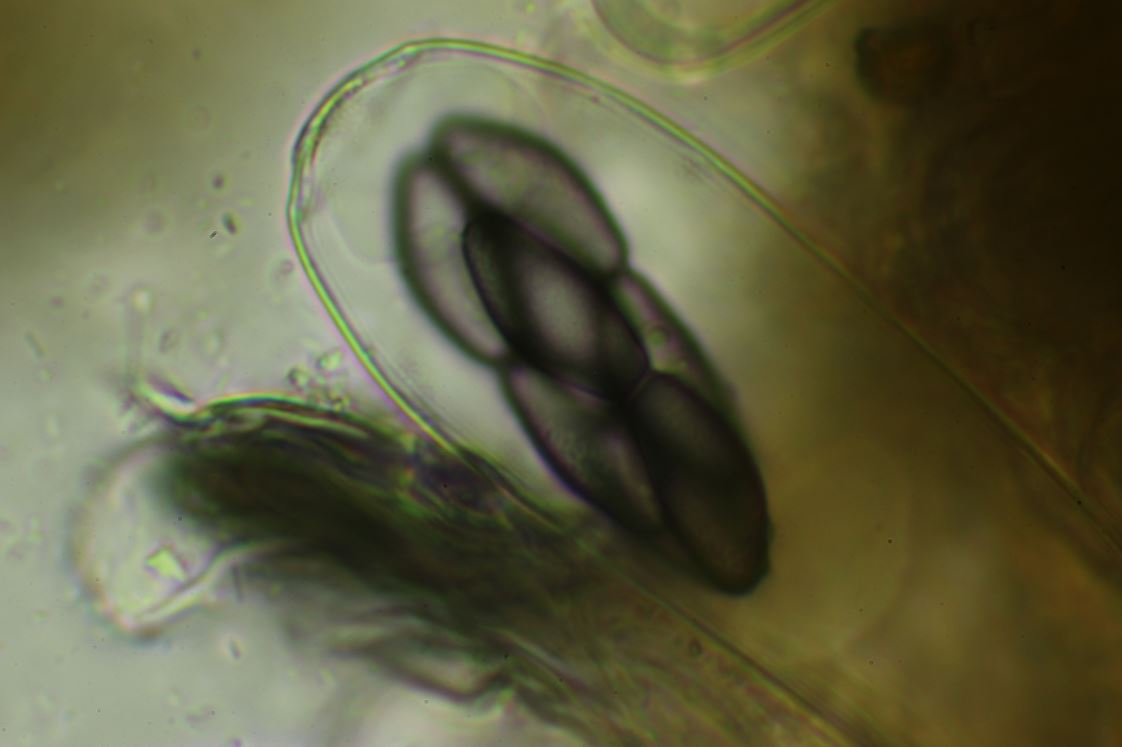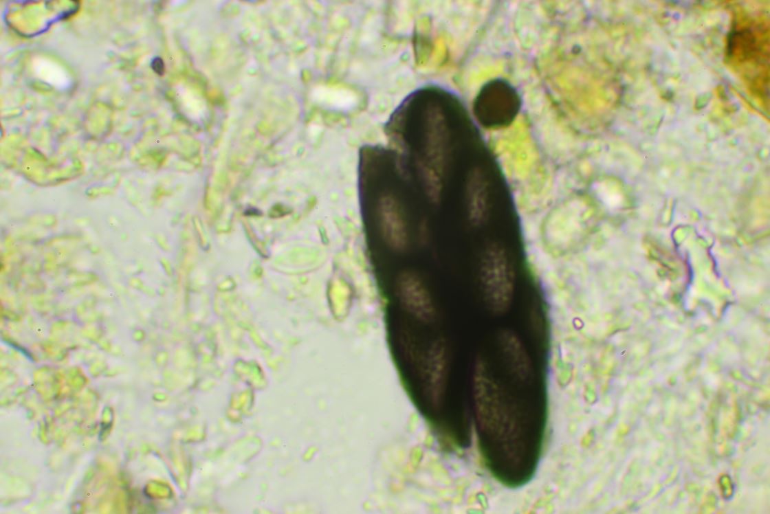 -Sporen; elliptisch, trapezförmig, etwas truncat, lösen sich nicht aus dem Cluster, 17.5-19 x 7.5-8.5(9) mü.