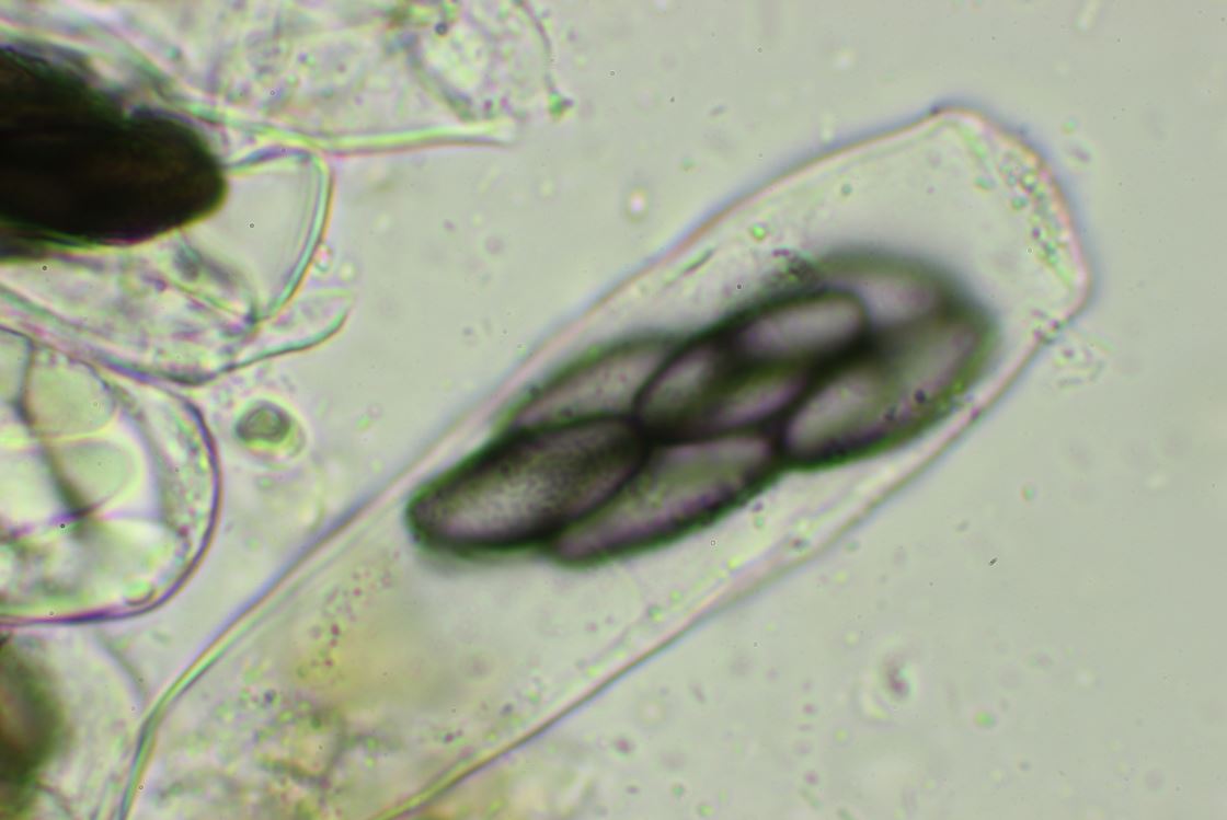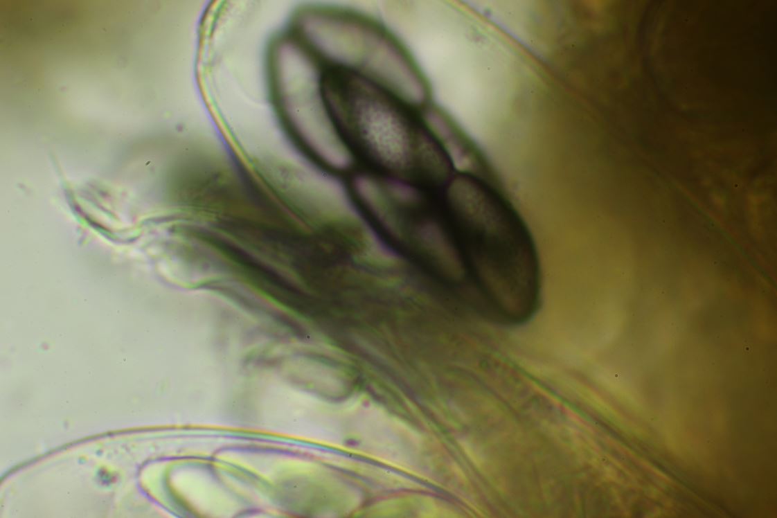 S. versicolor und S. truncatus kämen in Frage. Was mich aber nicht befriedigt sind die Anordnung der Sporen in den Cluster. Ganz klar 4 auf einer Ebene, 2 unten, 2 oben.