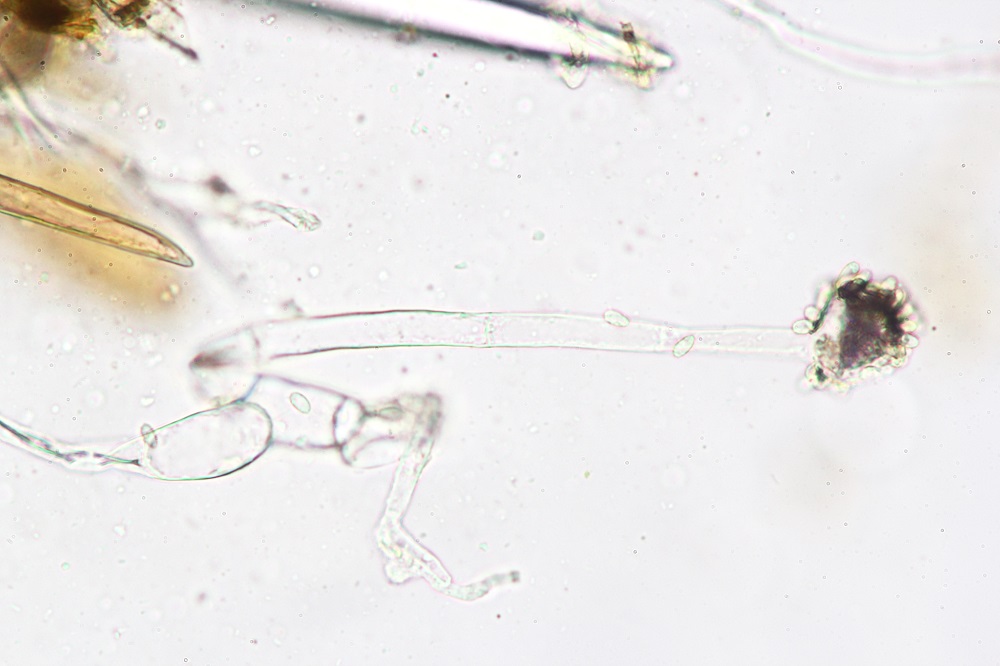 Die Konidien von O. pallidum sind warzig.