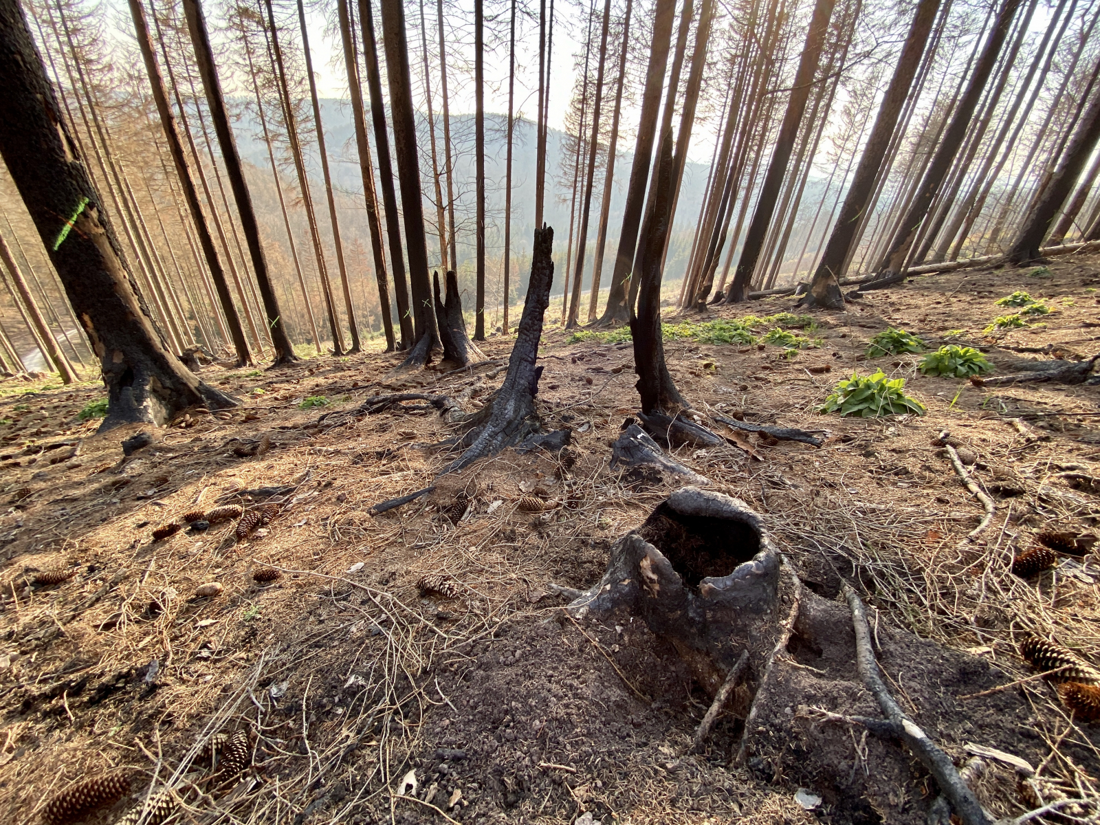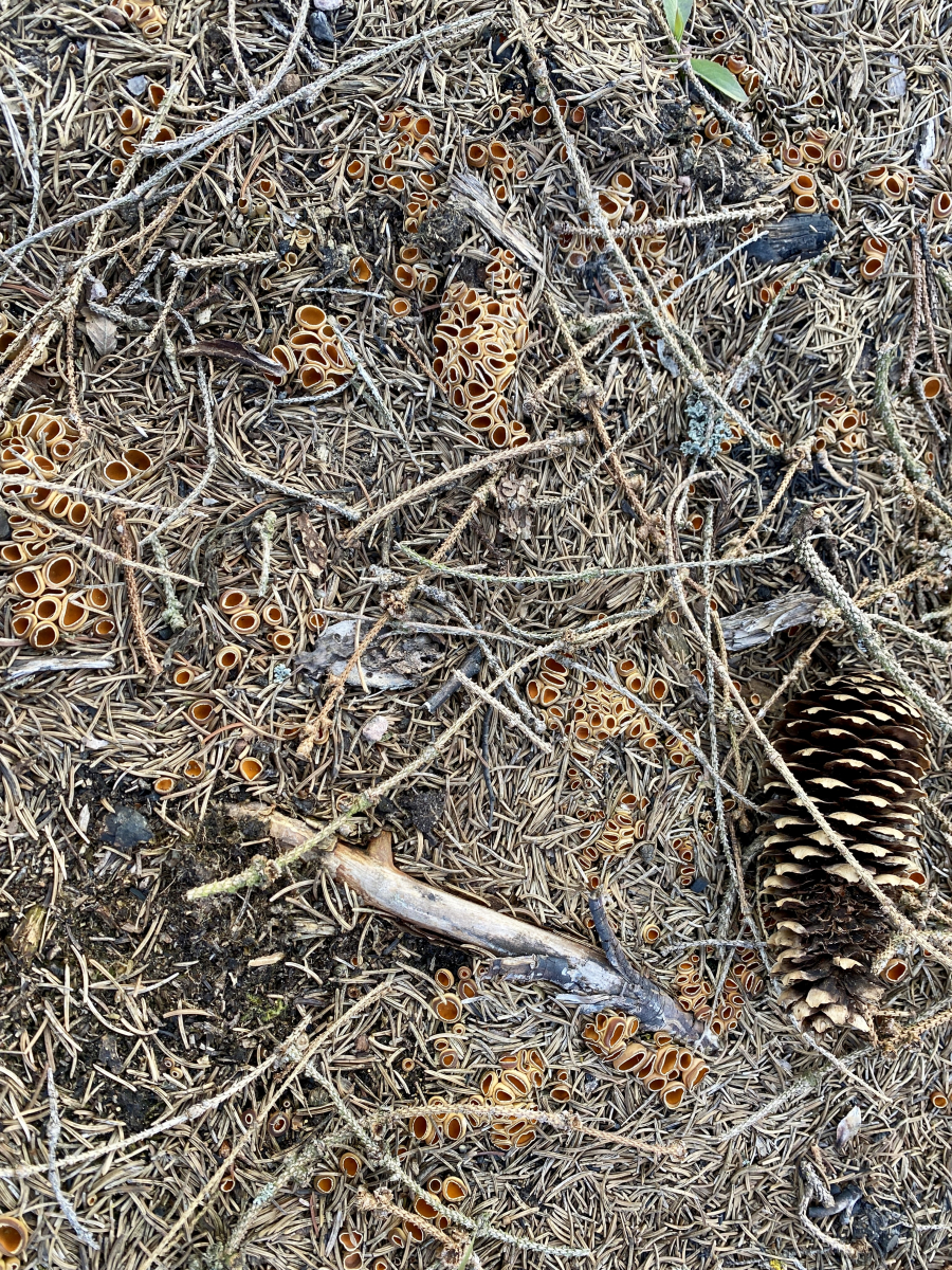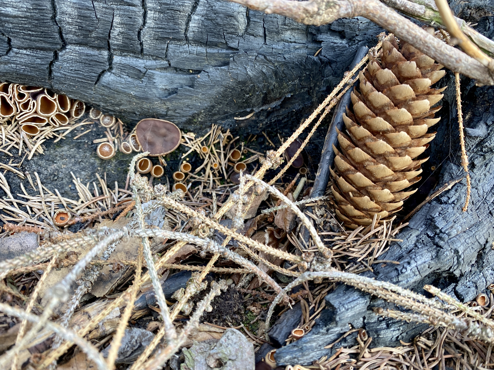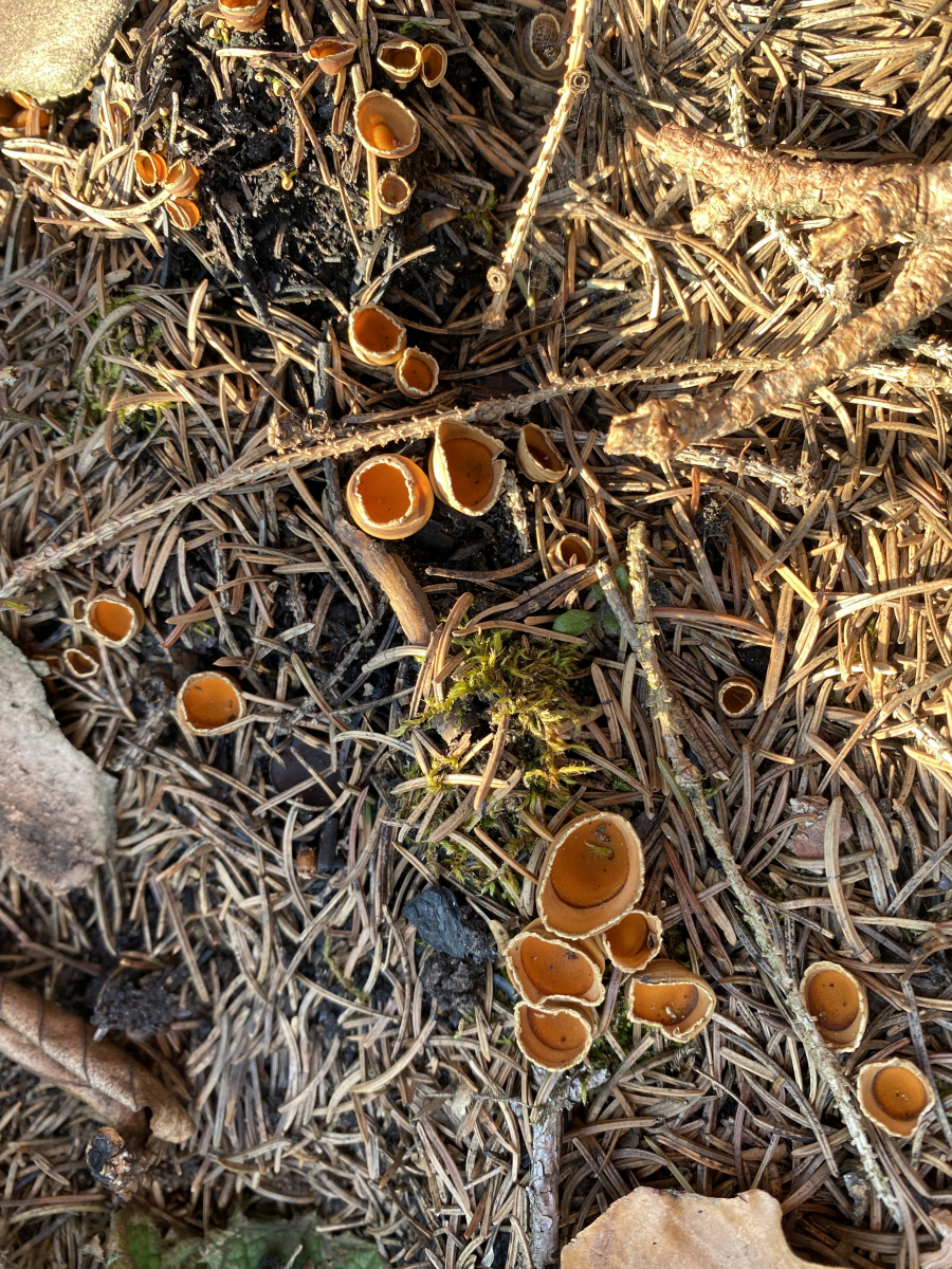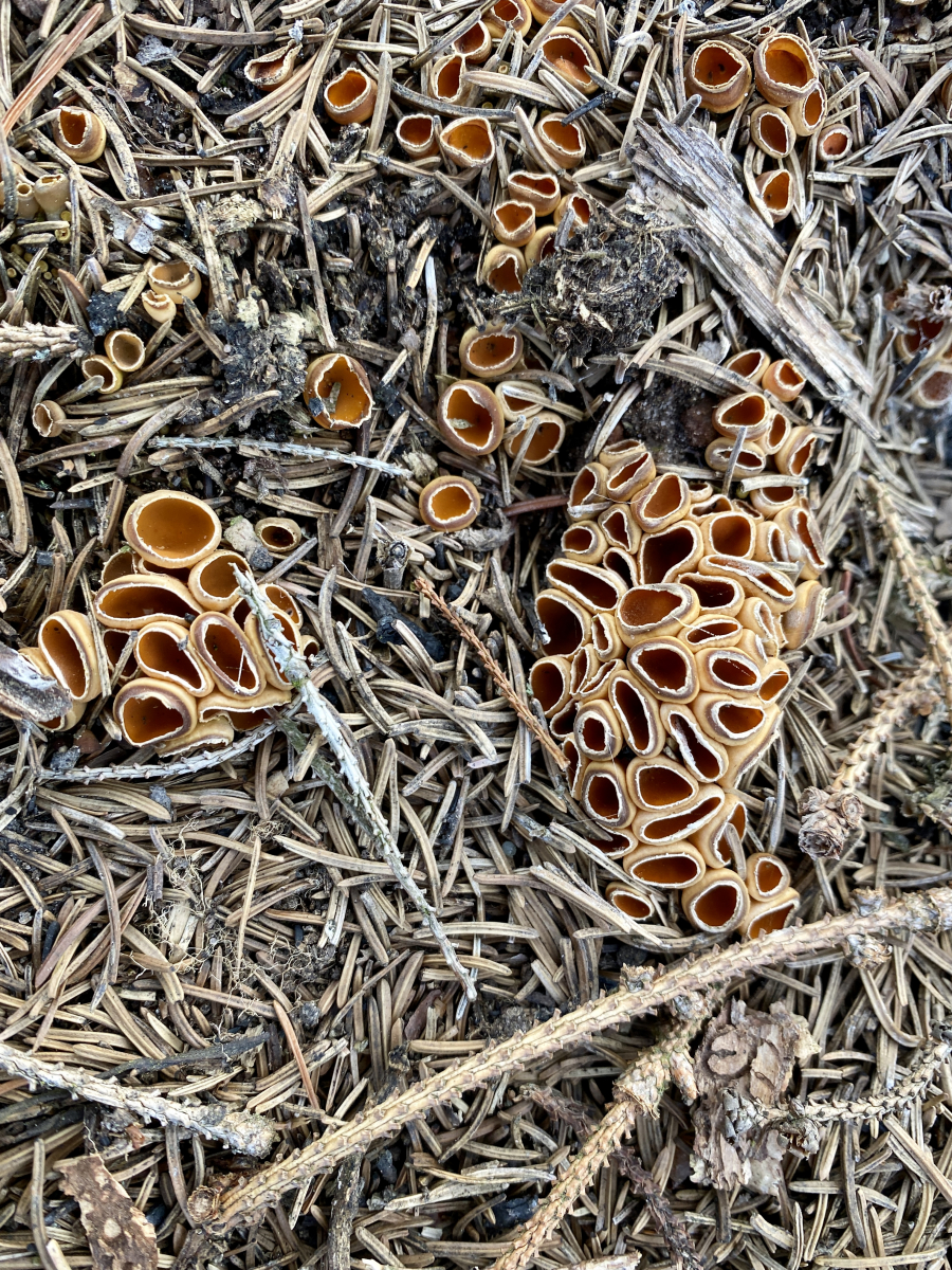 Diese becherförmigen Fungi finde ich derzeit zu Millionen auf Waldbrandboden (Brand April 2019). Tatsächlich unzählige Exemplare.